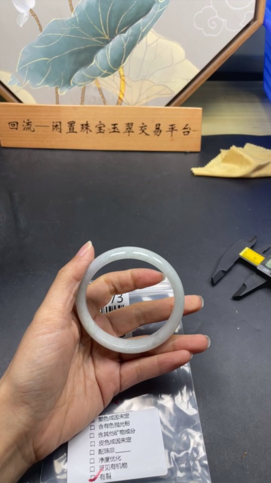 Jadeite Round Bracelet Size 58.3 with Crack Total Weight 49.617g