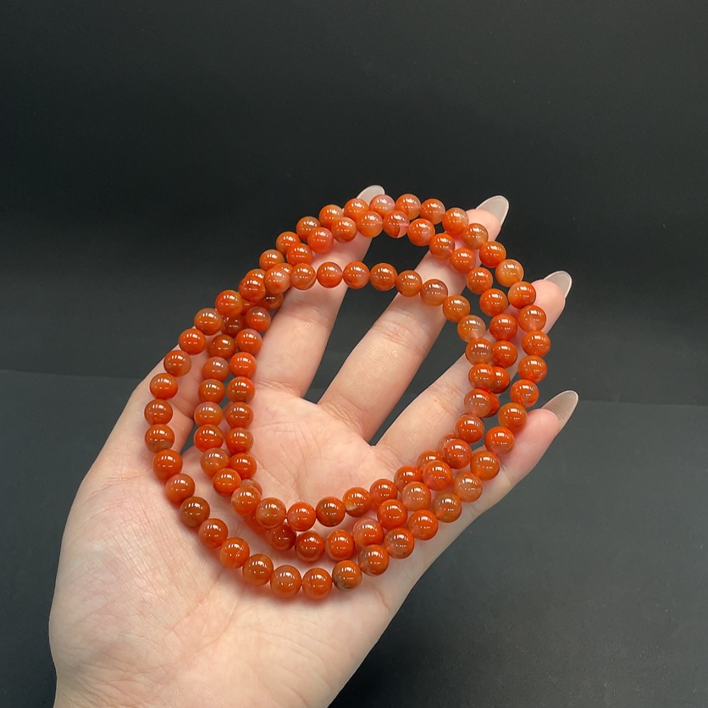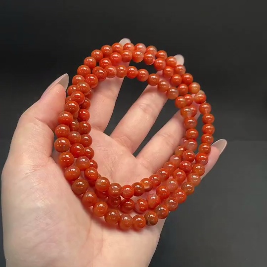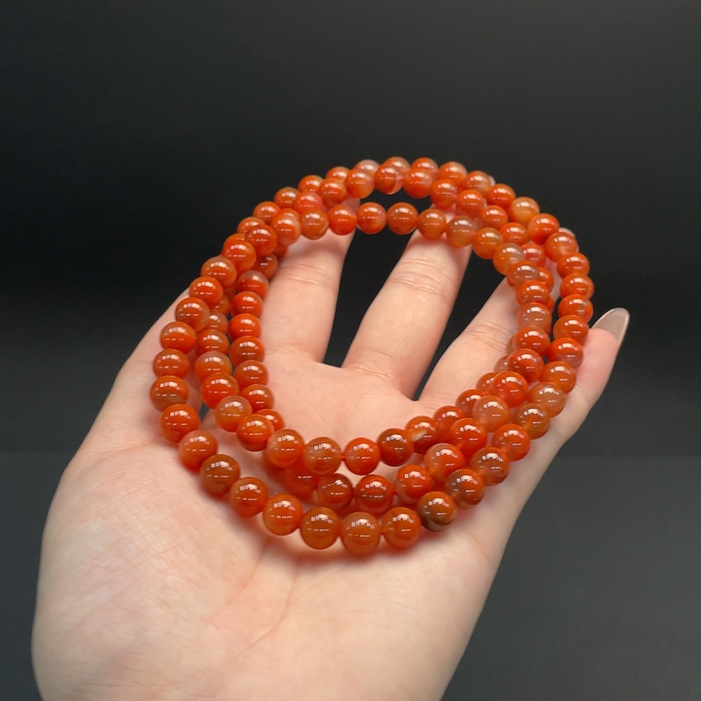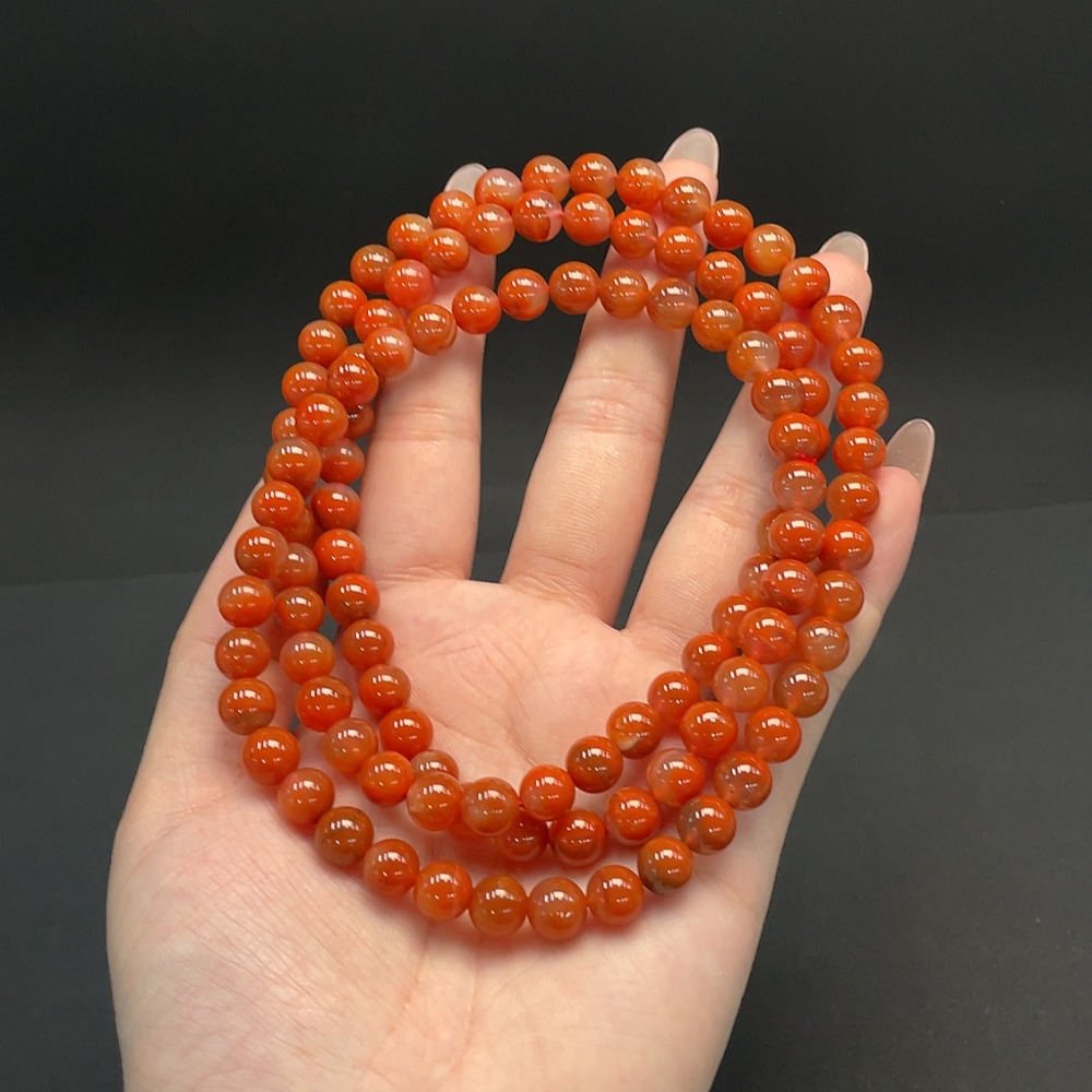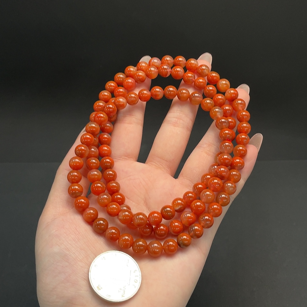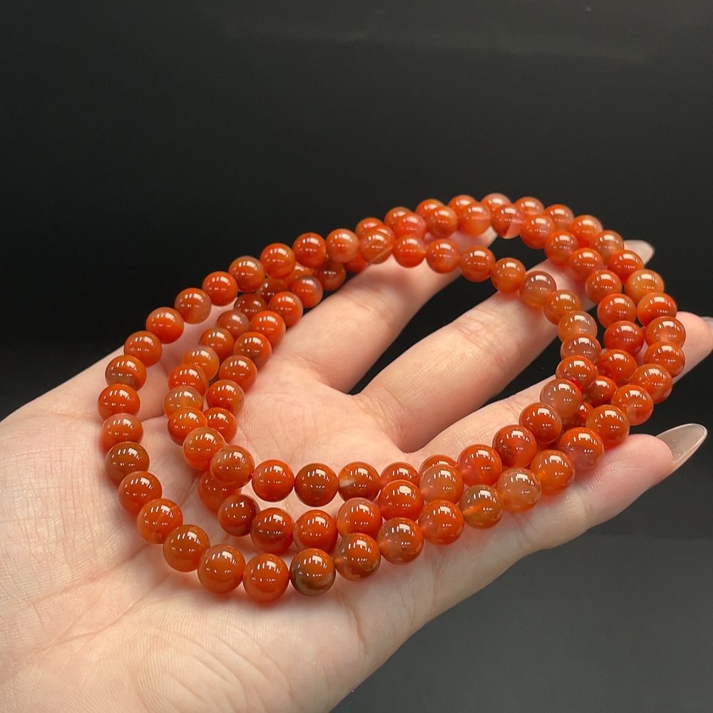 Red Agate Bead Necklace, Total Weight Approx. 67.32g, Bead Size 7.6mm