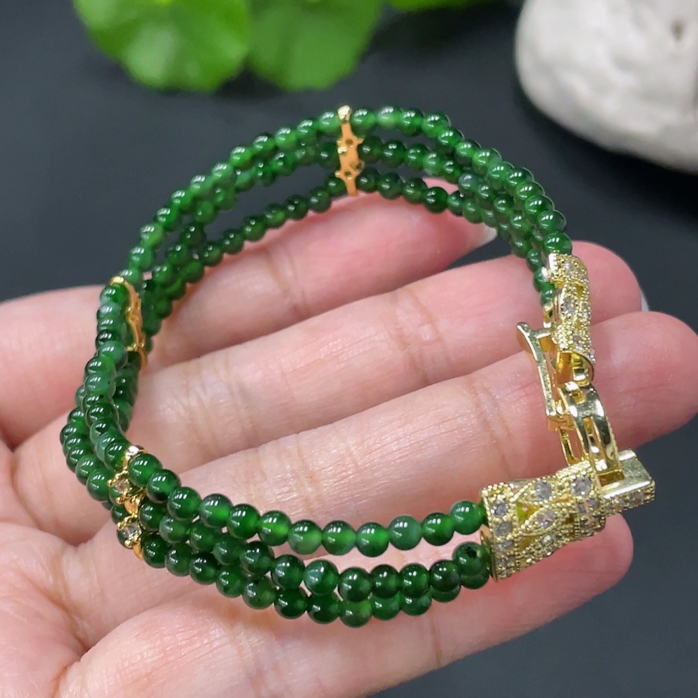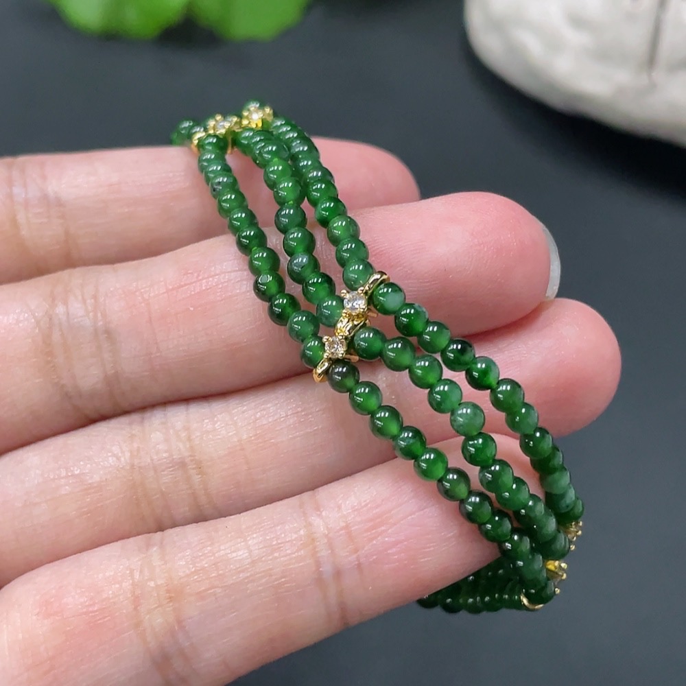 Jadeite Beaded Necklace Approx. 3mm Non-Gold Clasp Total Weight 12.279g