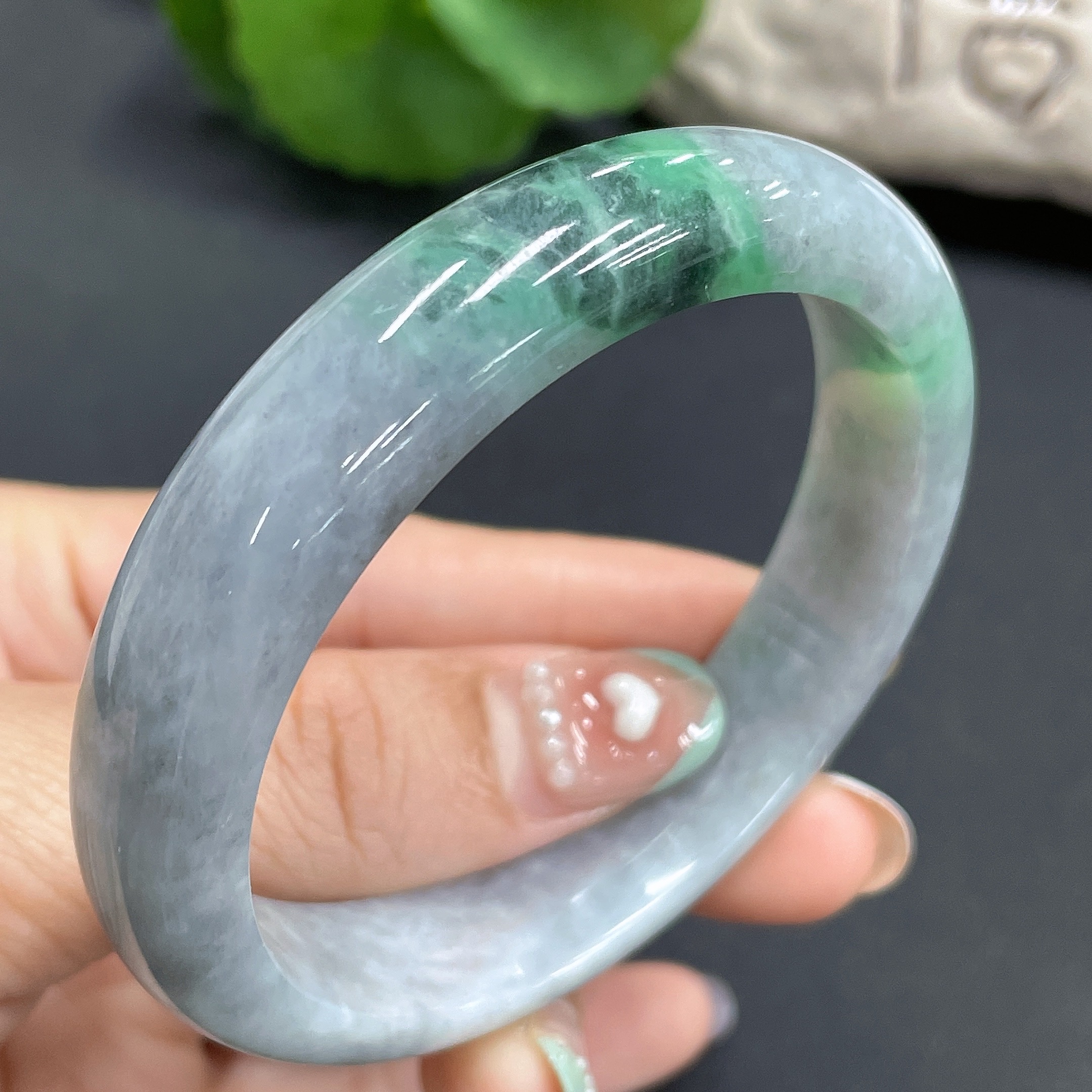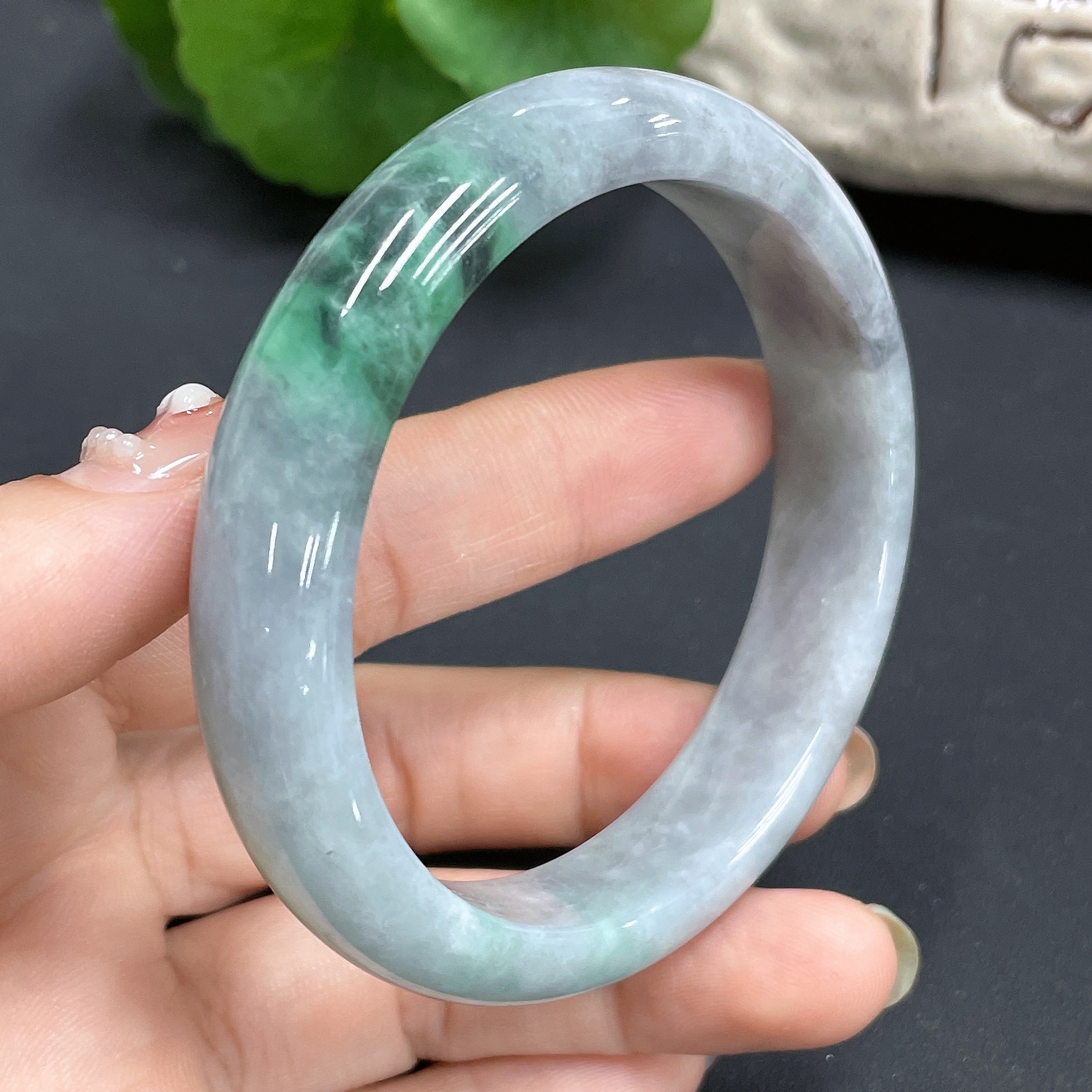 Jadeite Bangle Size 54.7mm Containing Other Mineral Components Total Weight 48.994g