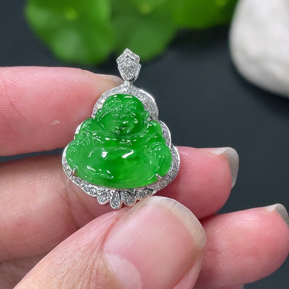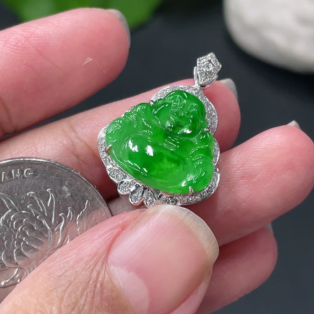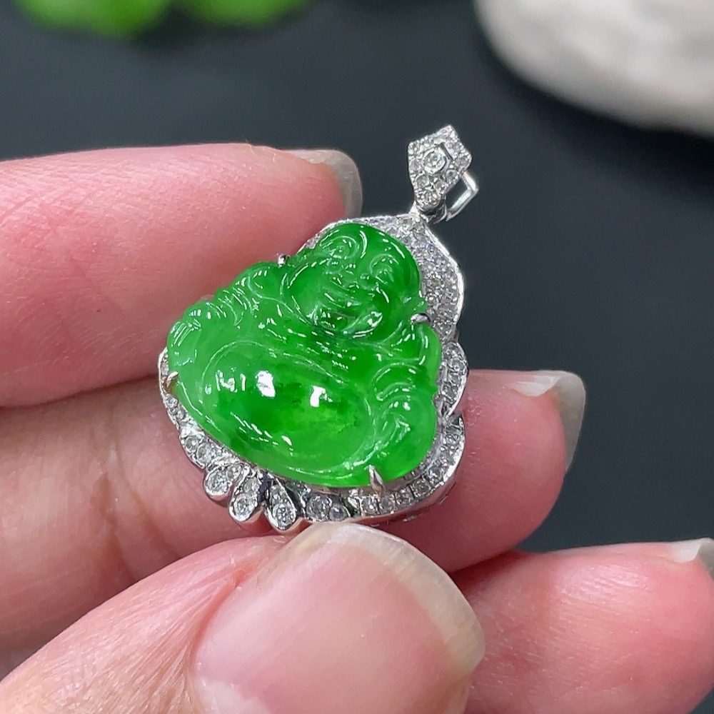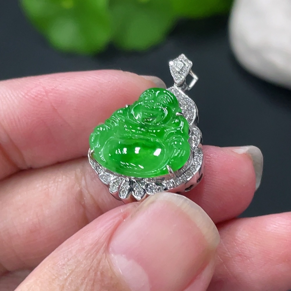 Jadeite Buddha Pendant with 18K Gold Setting, Approximately 3.19g