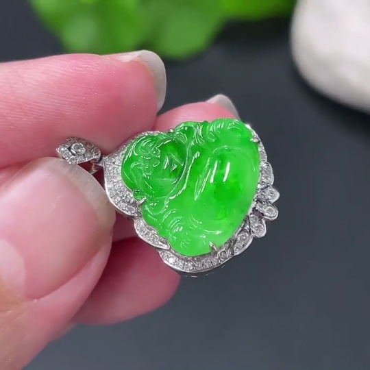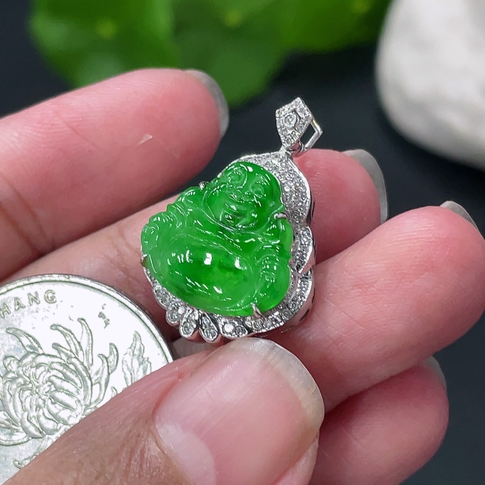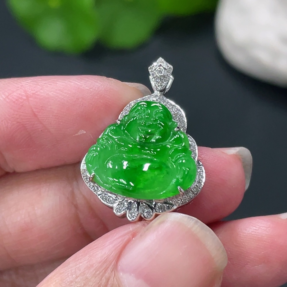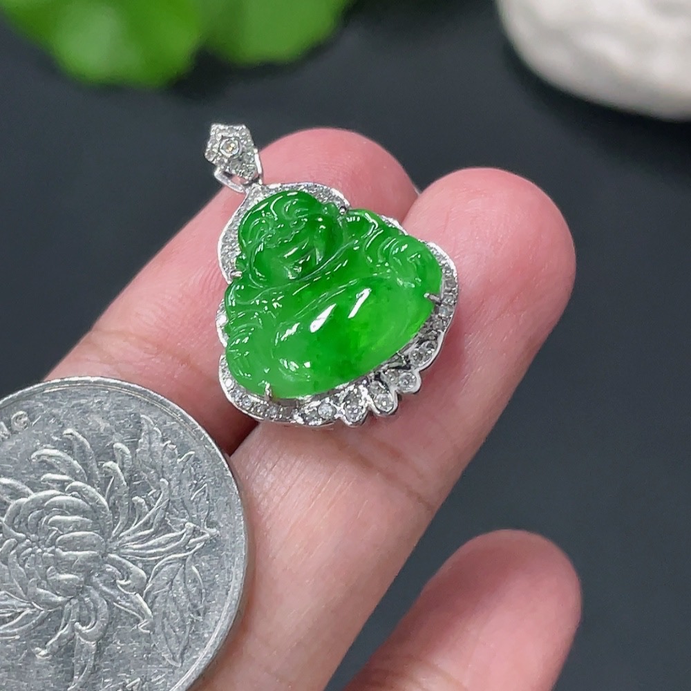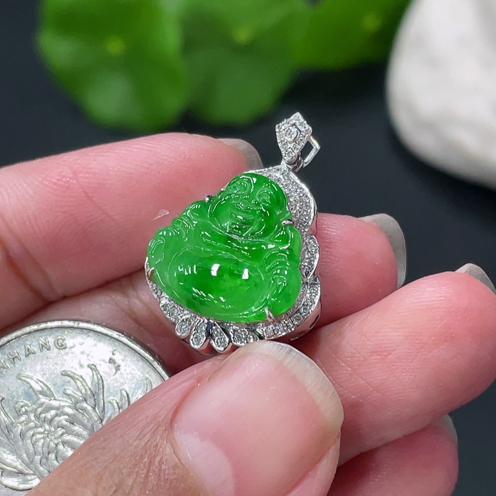 Jadeite Buddha Pendant with 18K Gold Setting, Approximately 3.19g
