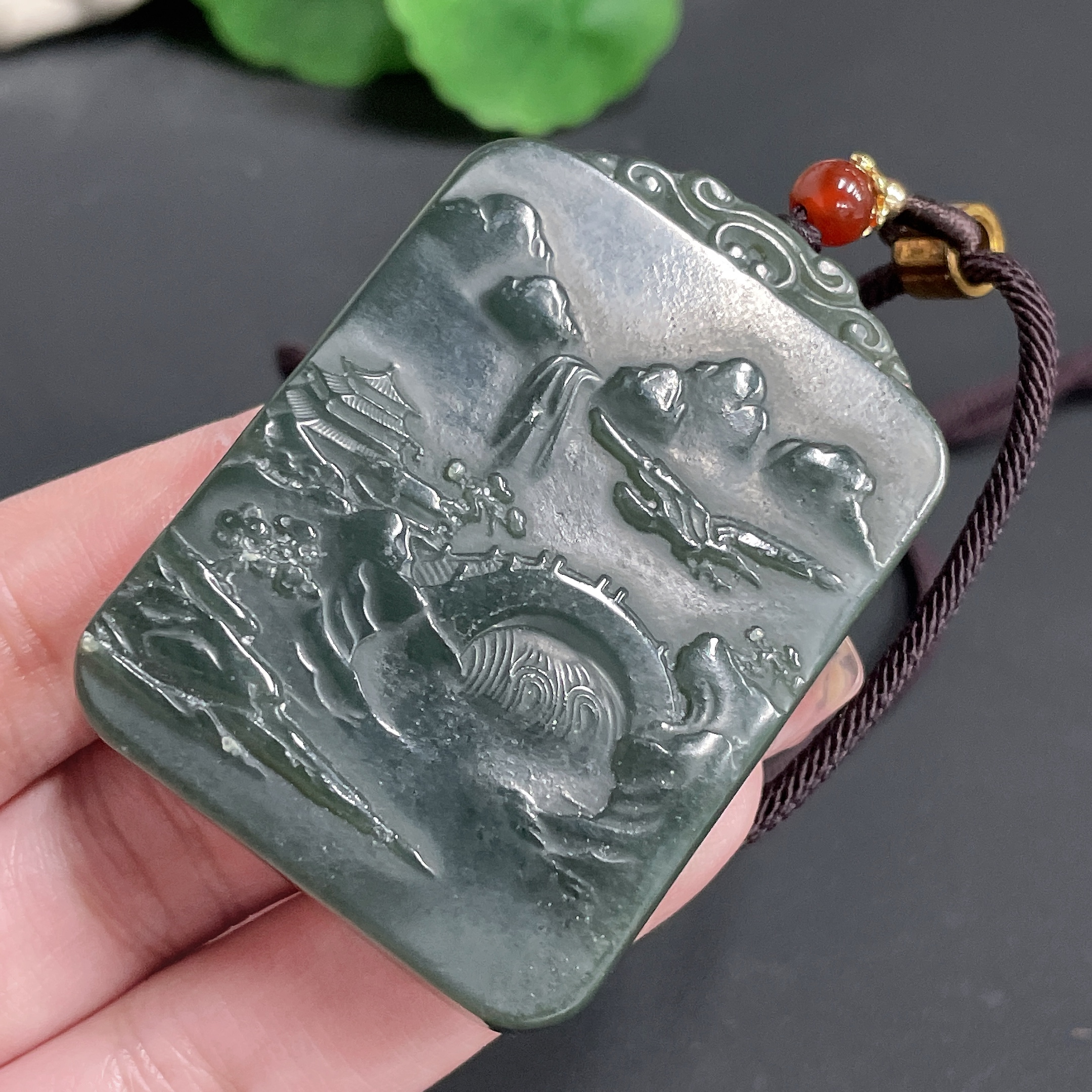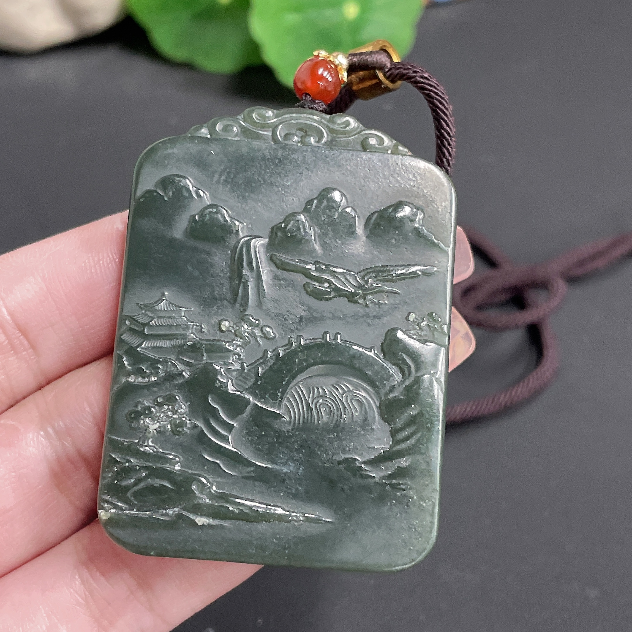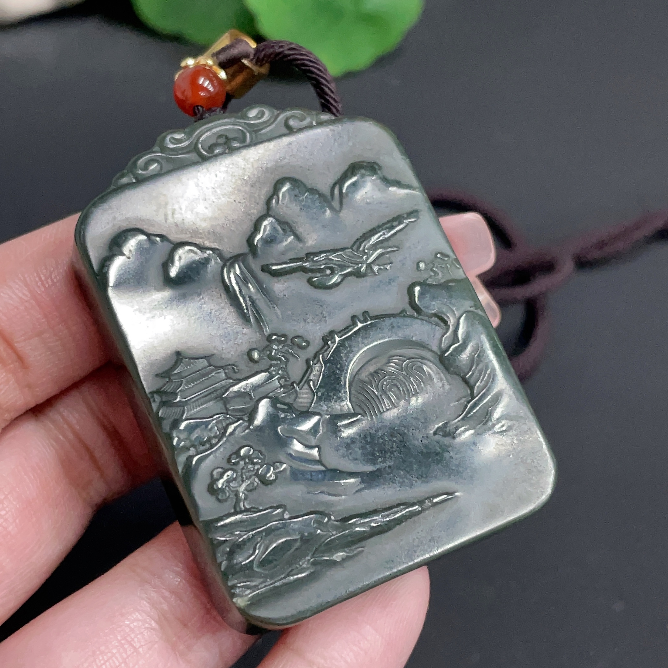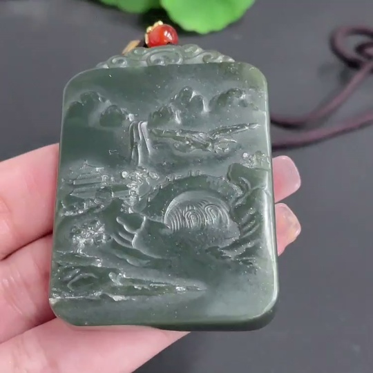 Hetian Jade Pendant Landscape Plaque with Cord Total Weight 62.11g