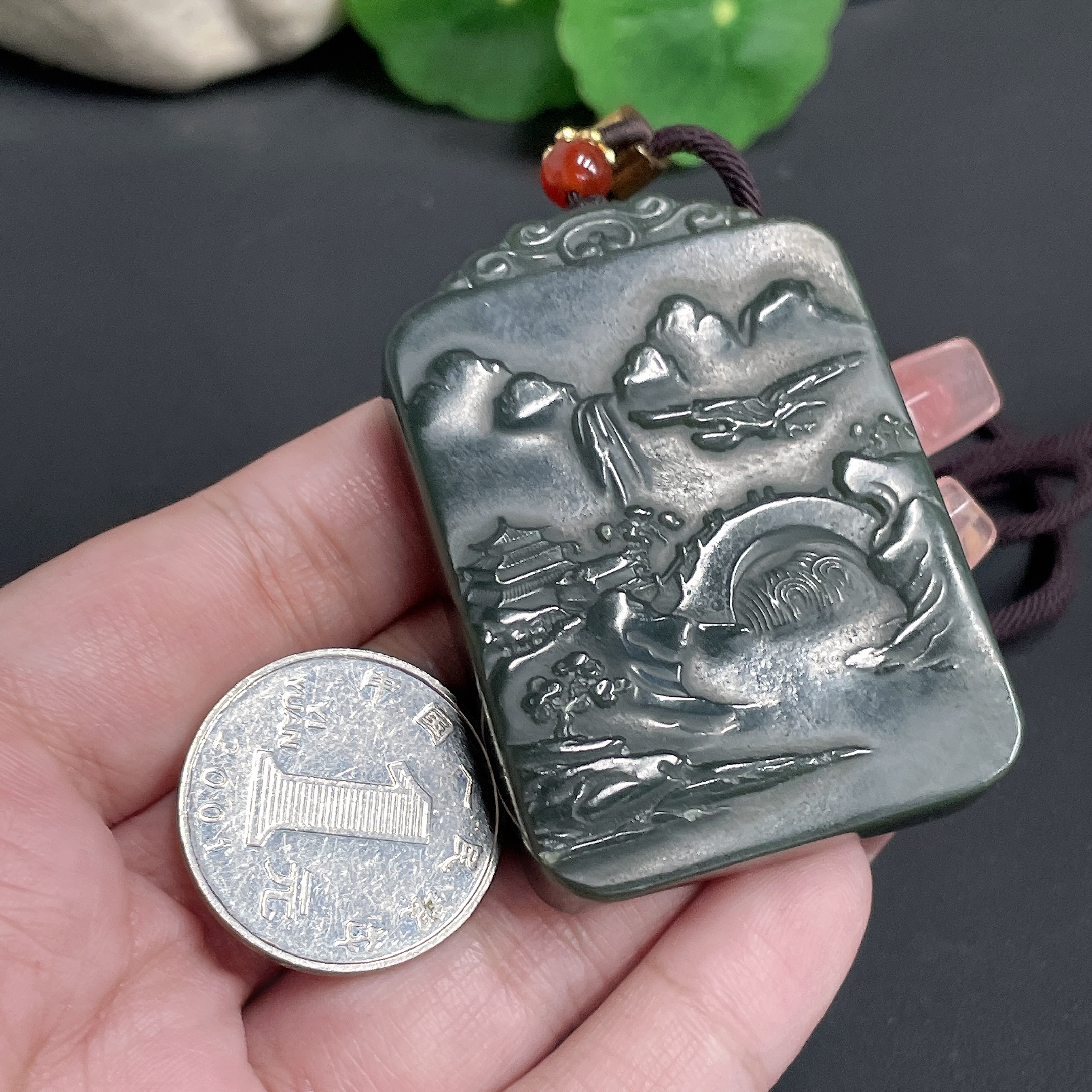 Trezaar - Hetian Jade Pendant Landscape Plaque with Cord Total Weight 62.11g