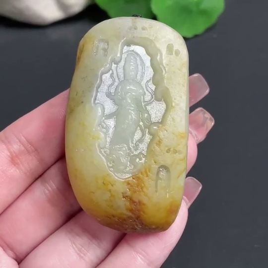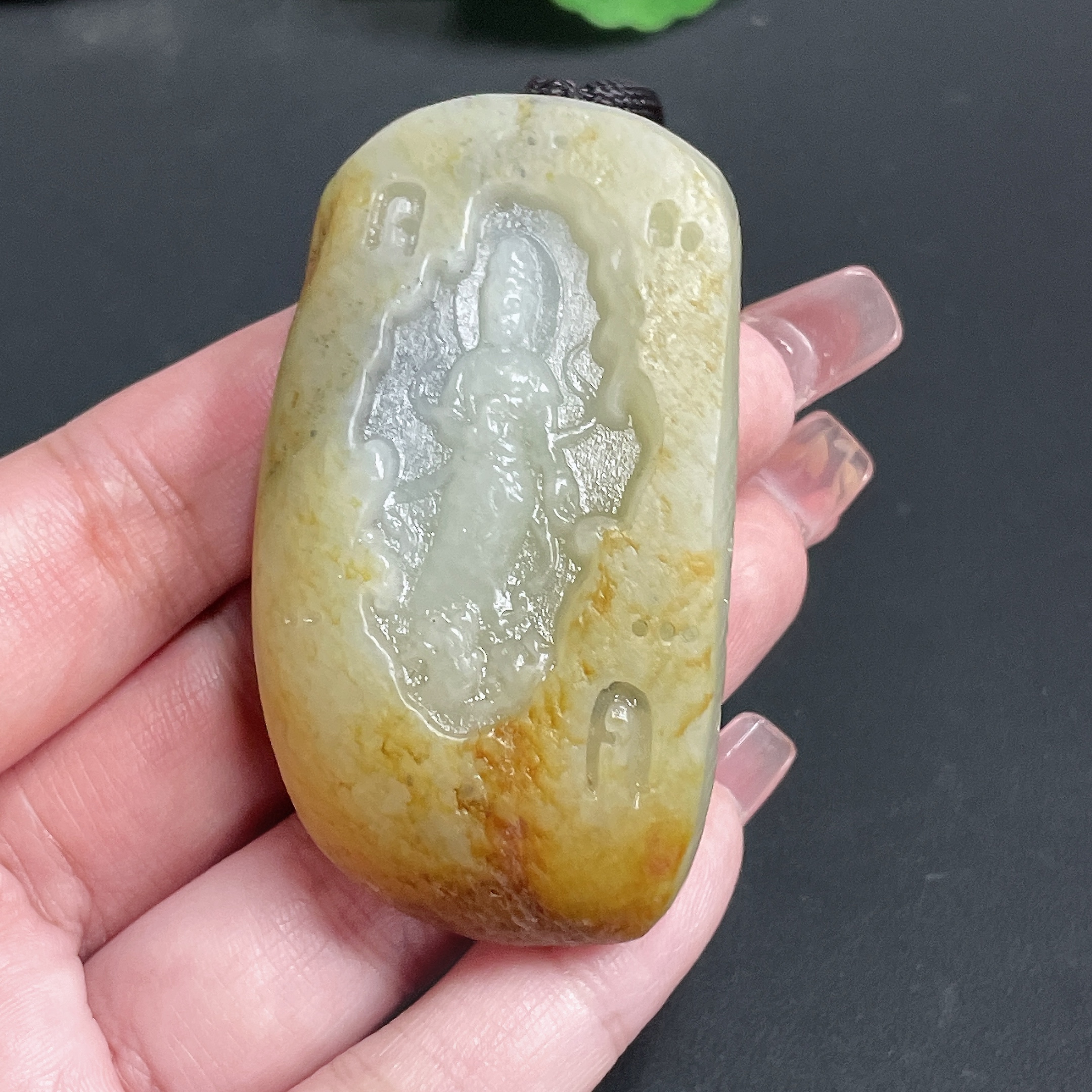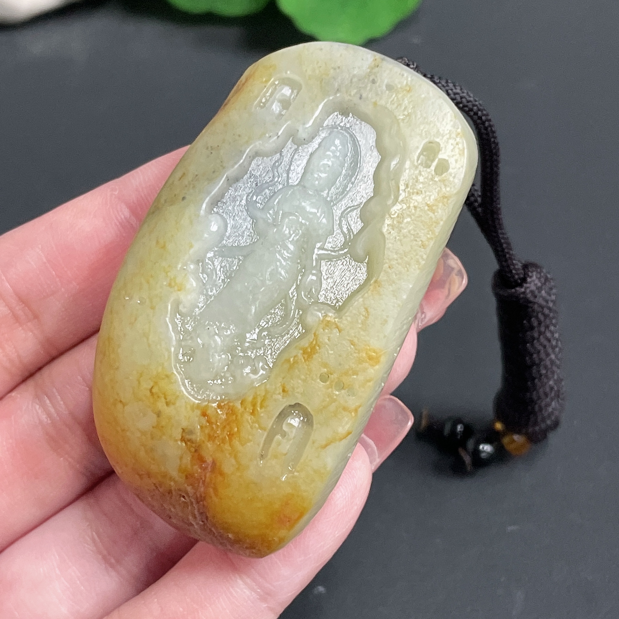 Hetian Jade Pendant Guanyin with Cord Total Weight 82.61g Undetermined Skin Color Origin