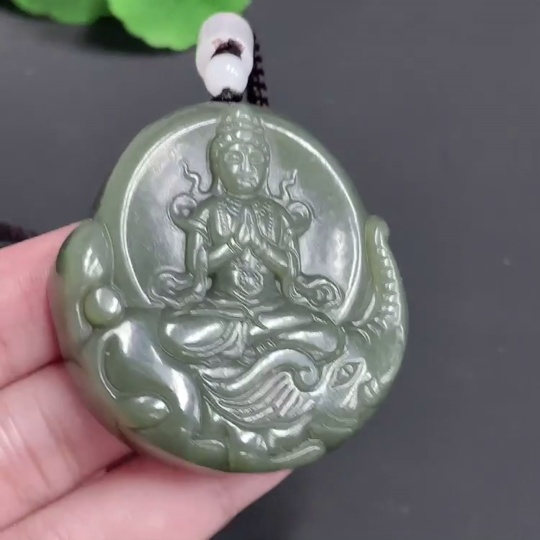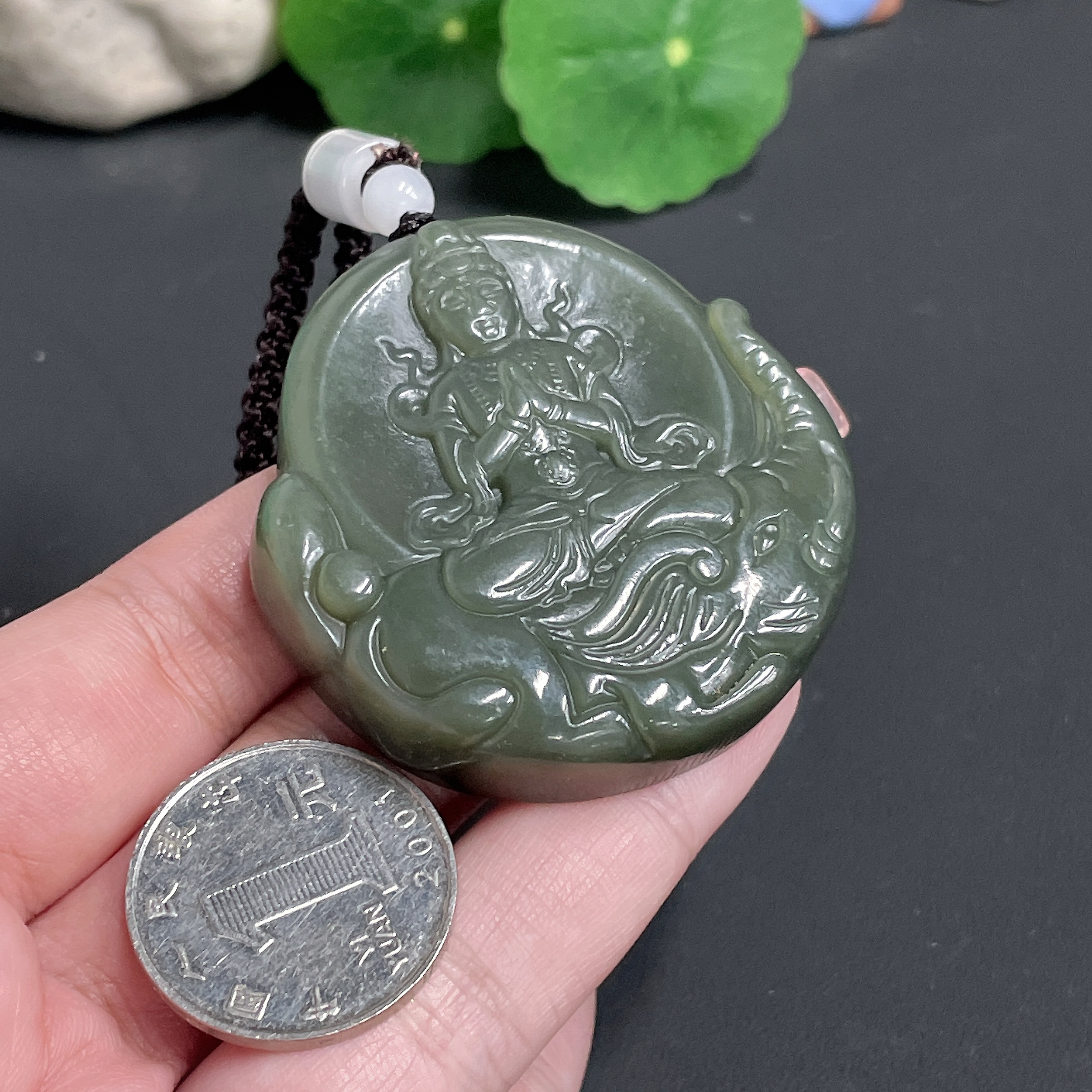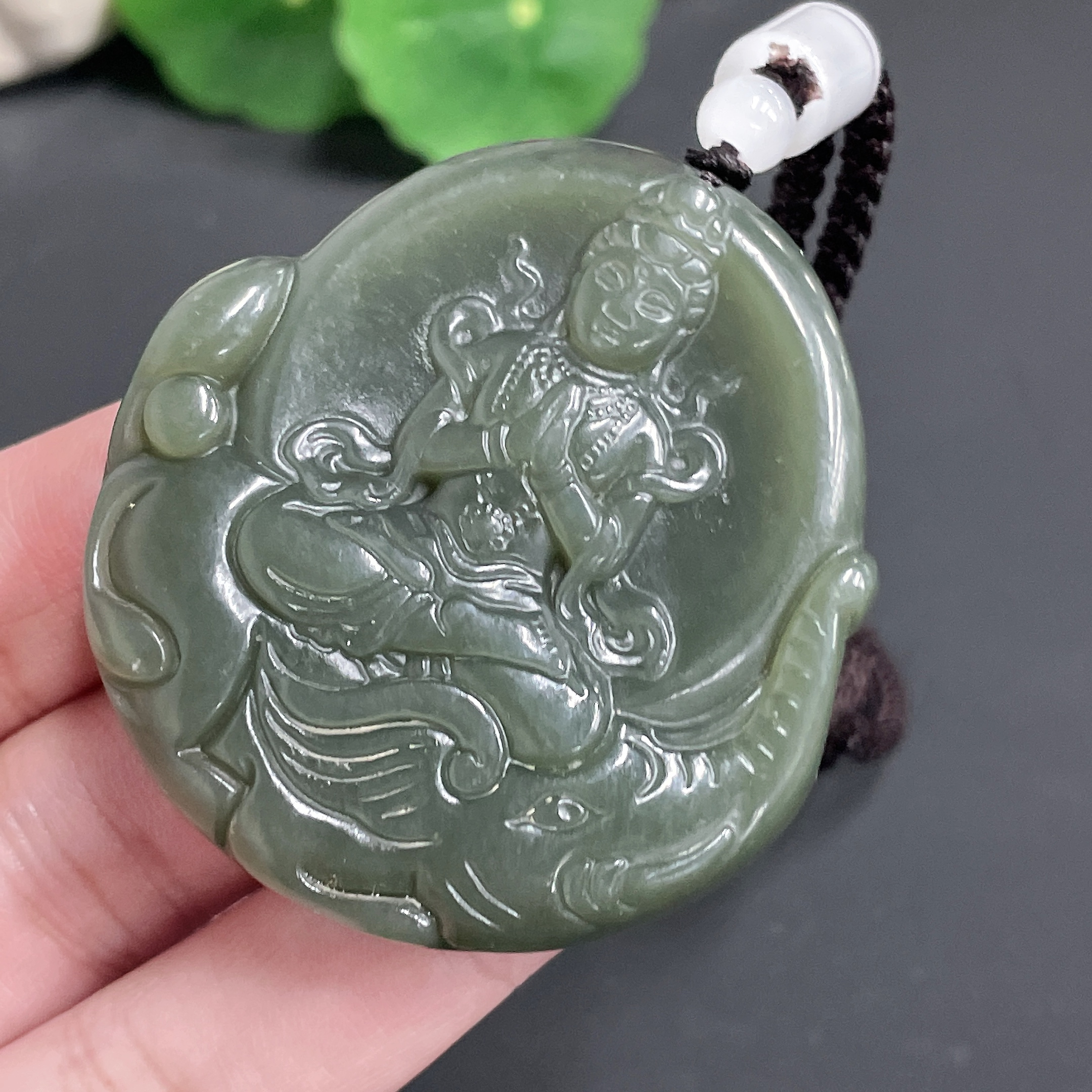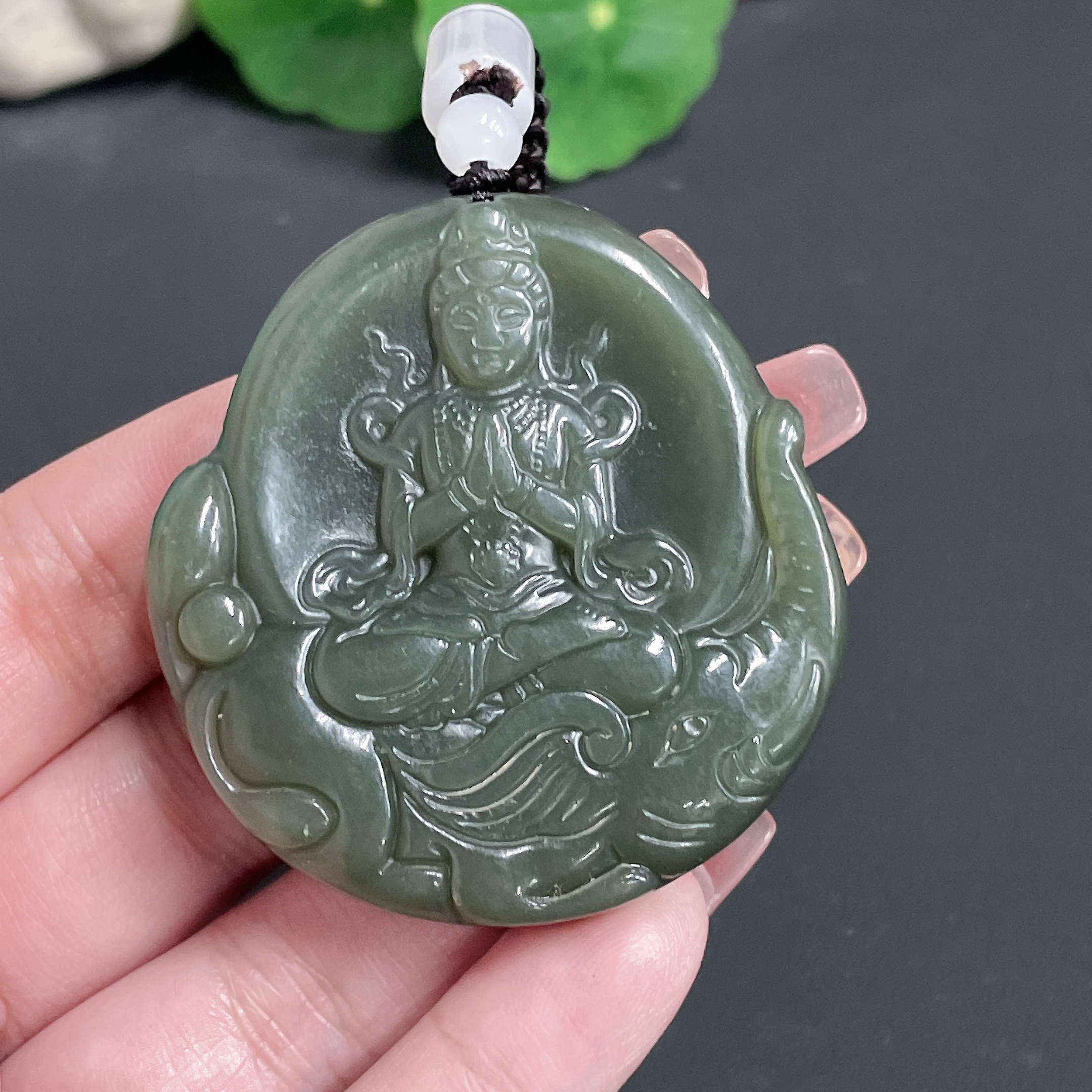 Hetian Jade Pendant Guanyin with Cord 59.5g
