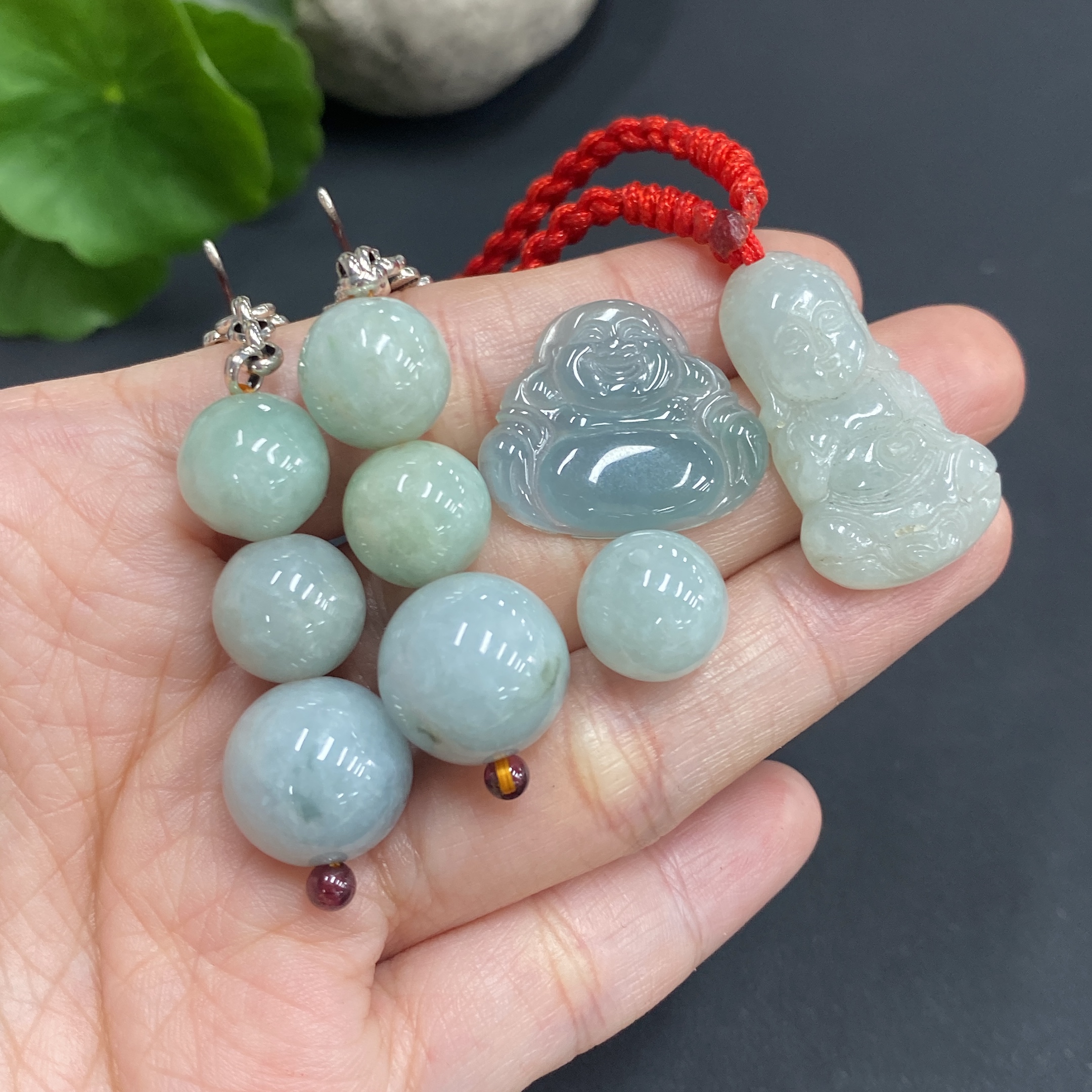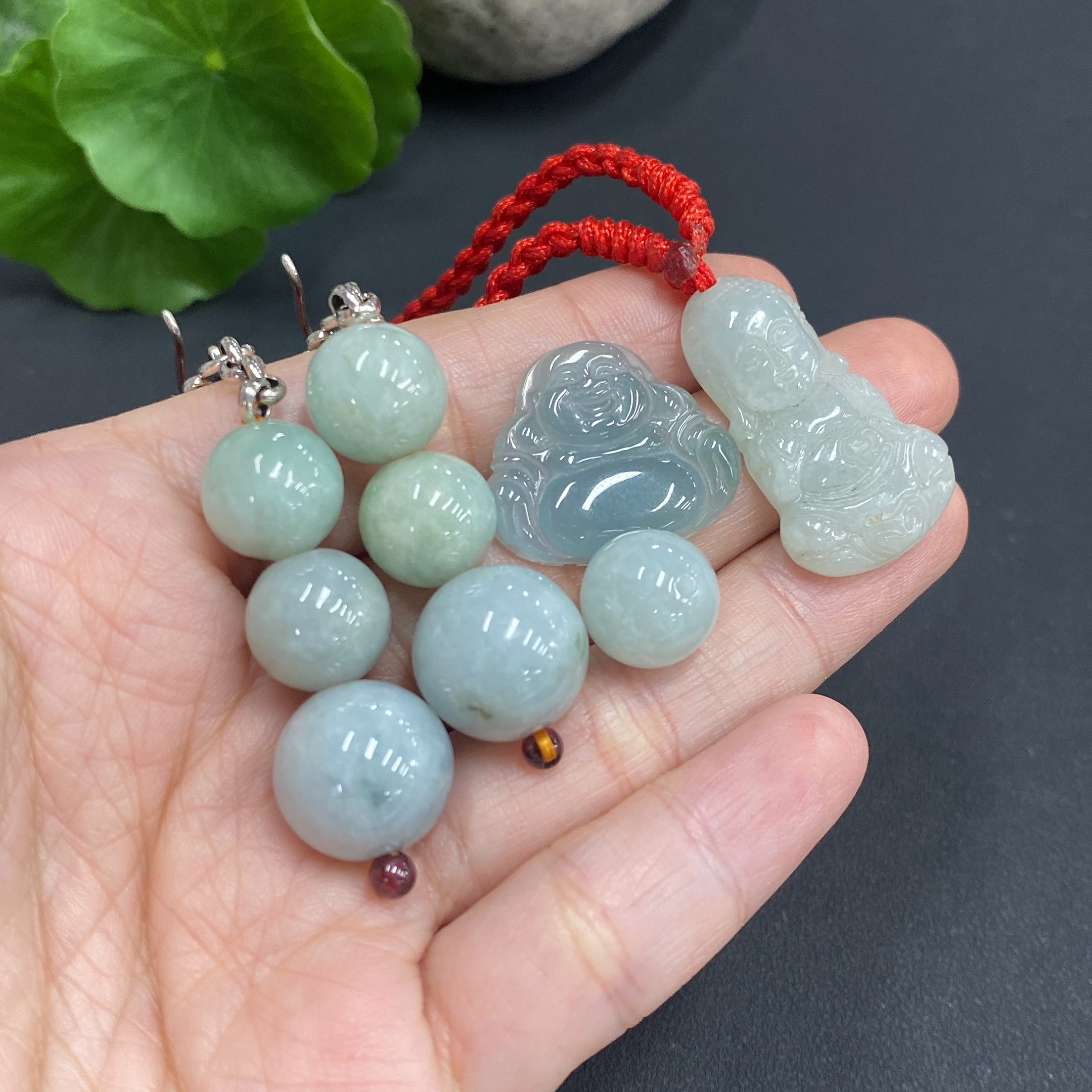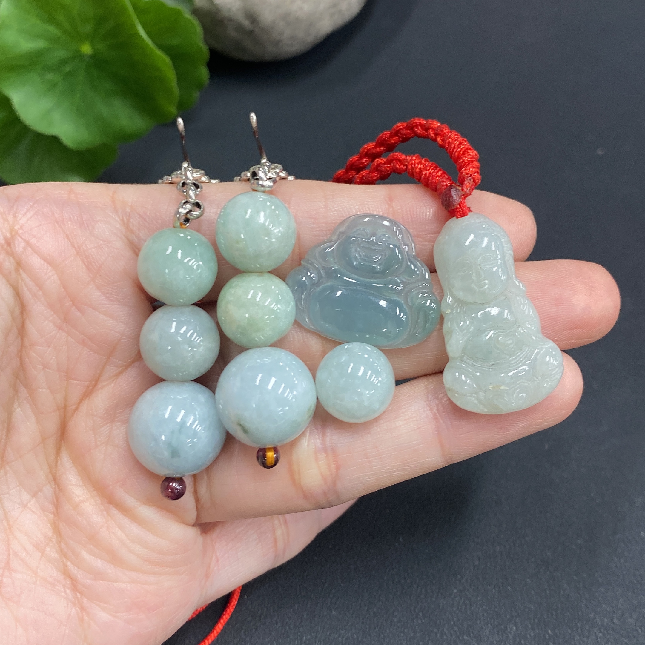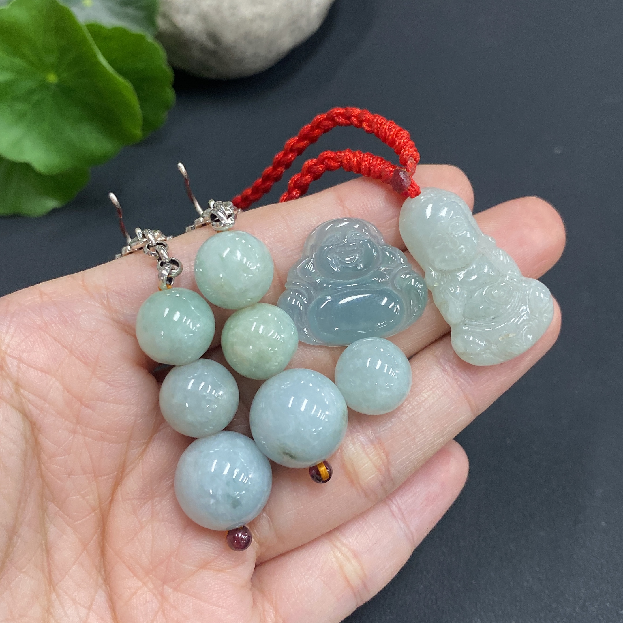 Jadeite Pendant Earrings Non-Gold Inlaid