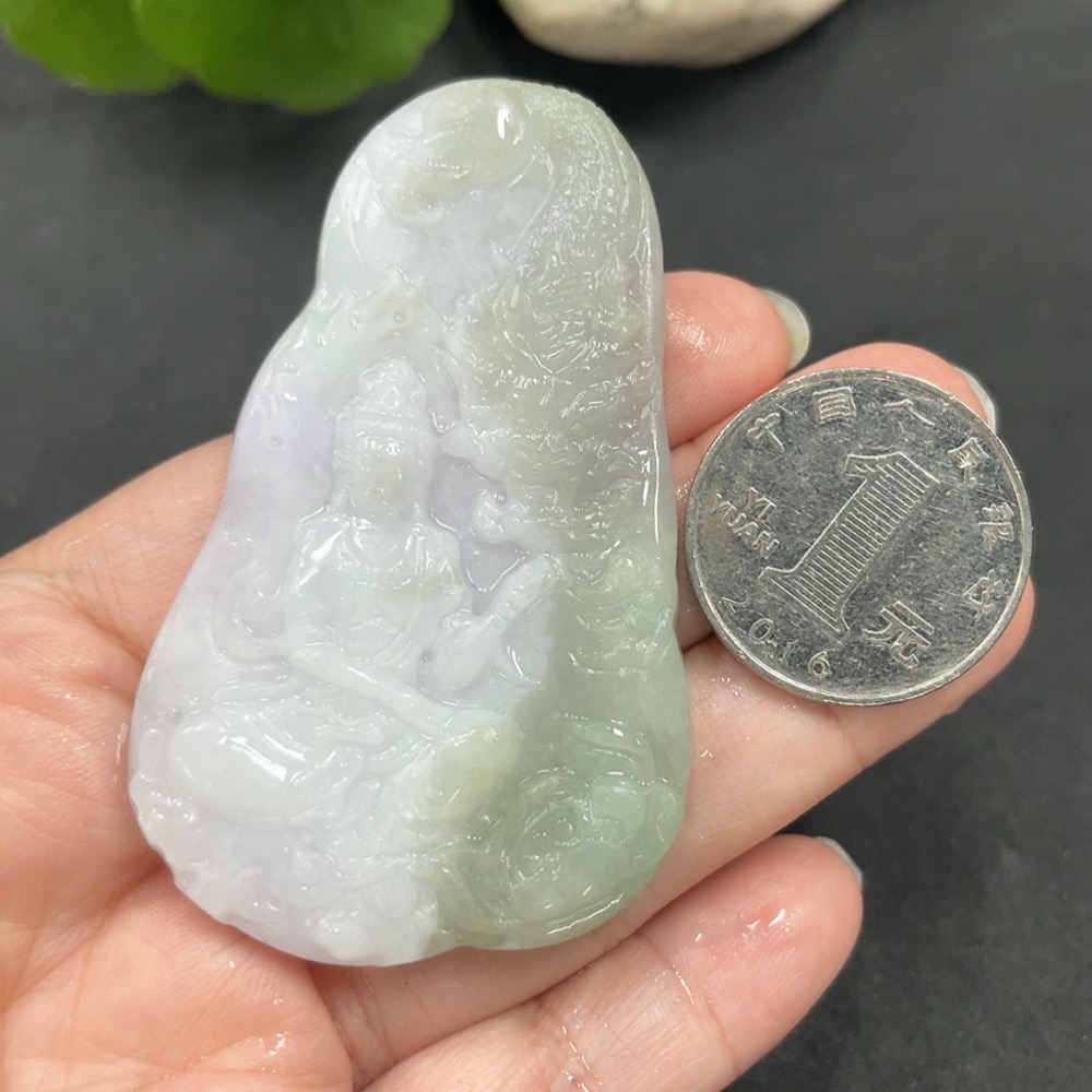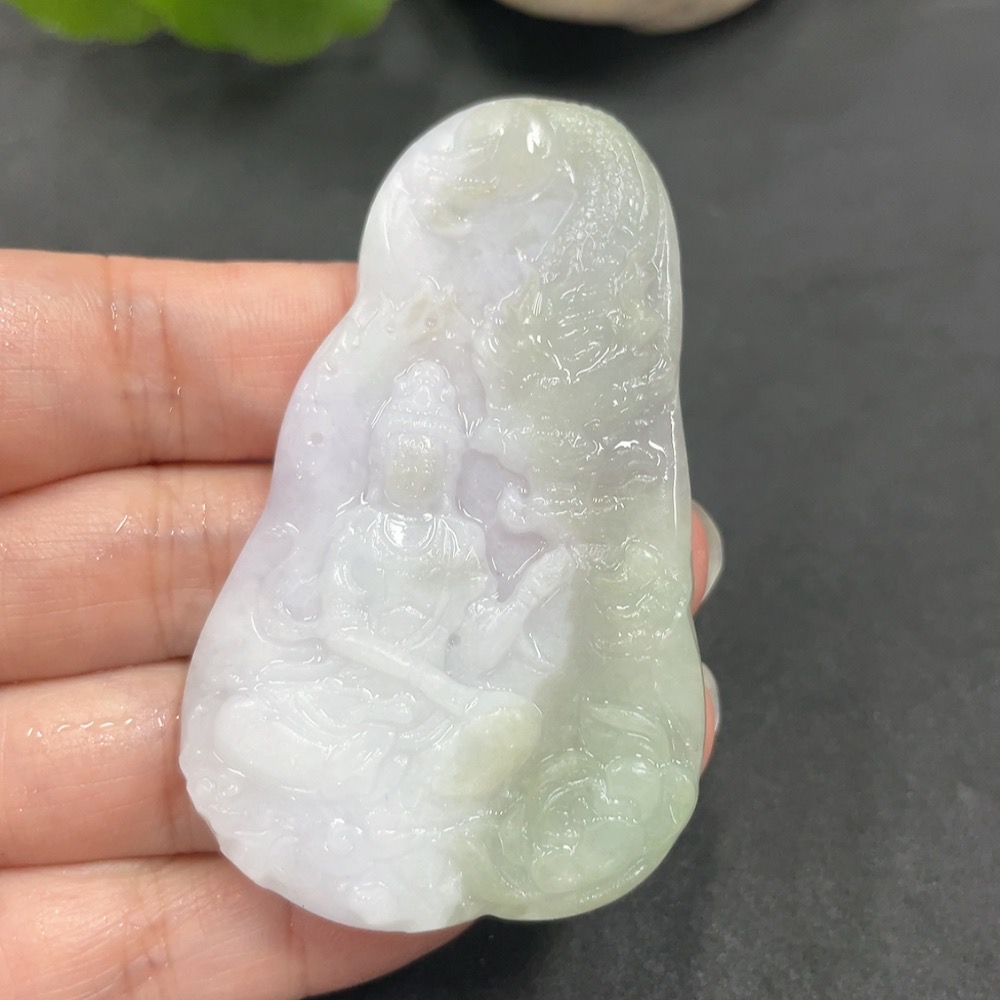 Jadeite Unpolished Guanyin Pendant Total Weight 29.756g