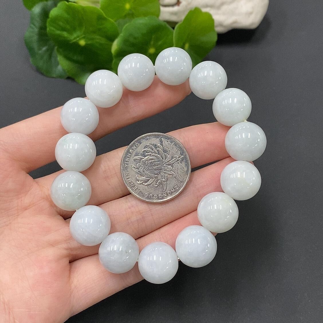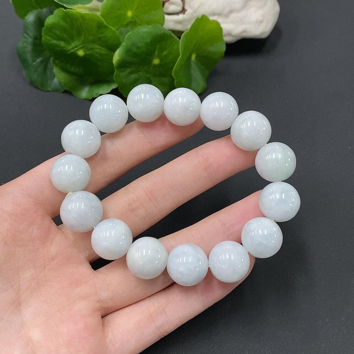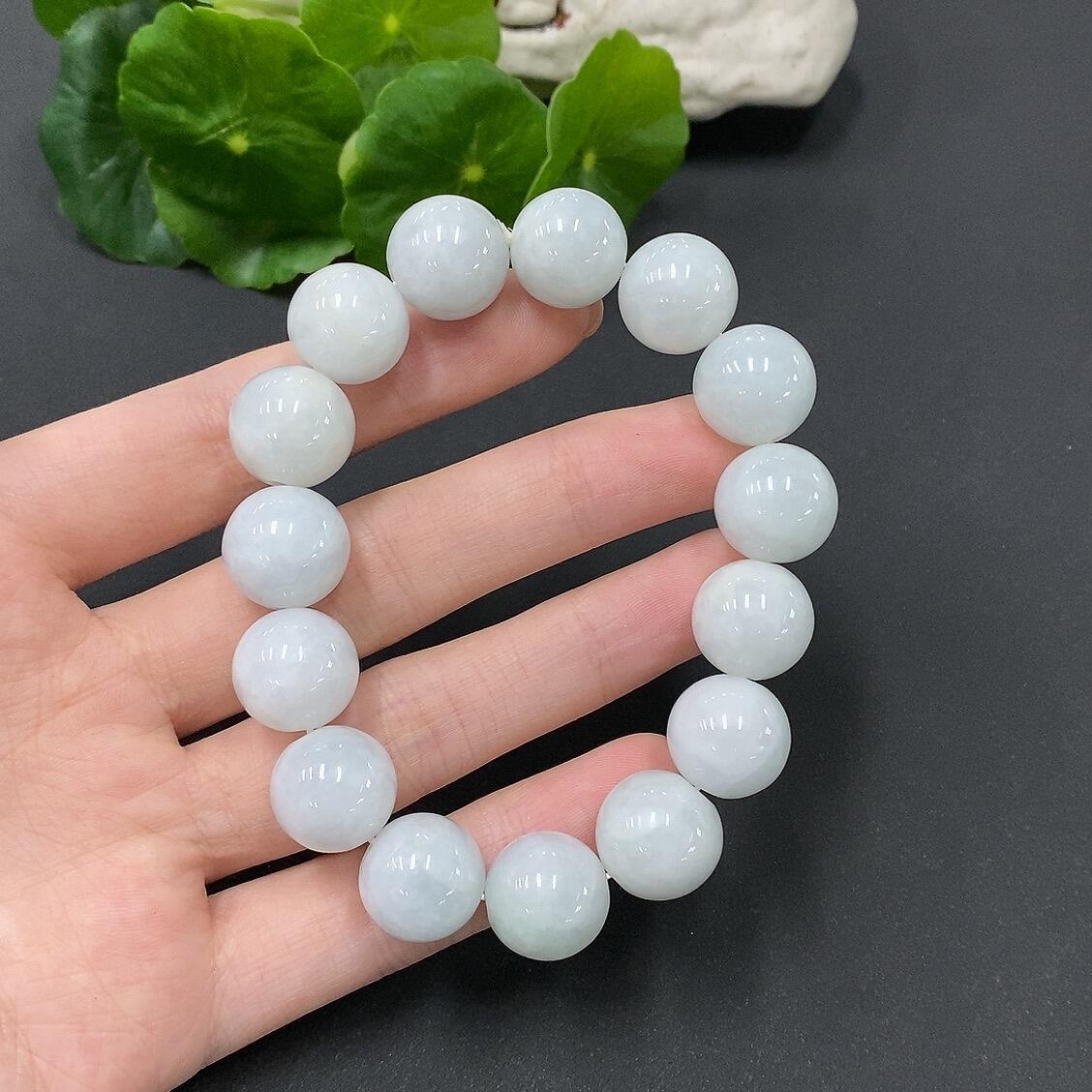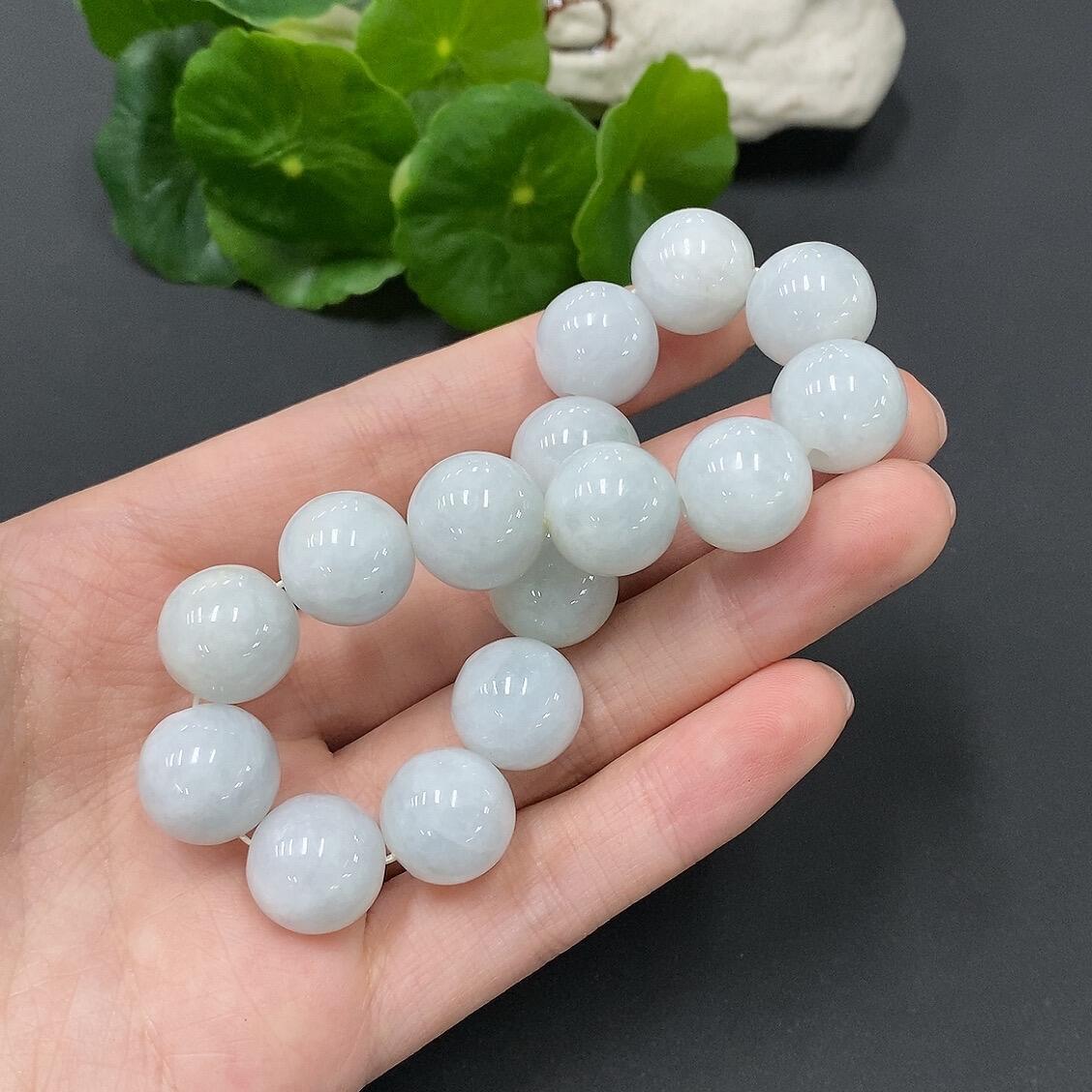 Jadeite Bead Necklace with Individual Beads Having Fine Lines and Cracks, Size 13.7mm
