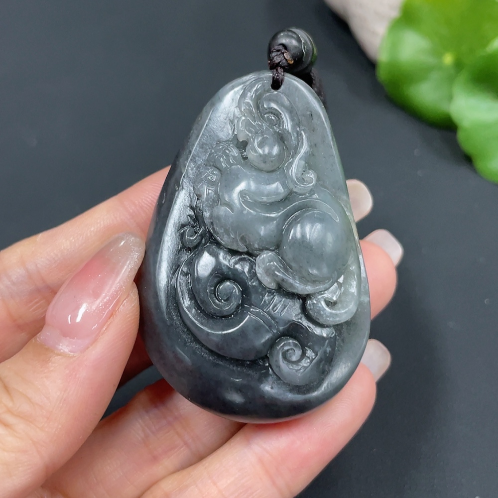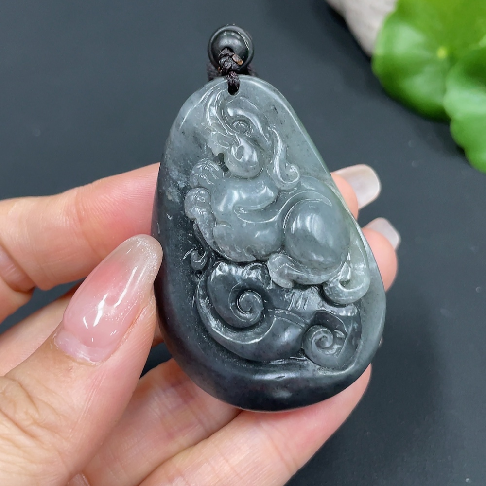 Hetian Jade Pendant Auspicious Beast Undetermined Skin Color Formation Total Weight (Including Rope) 56.1g