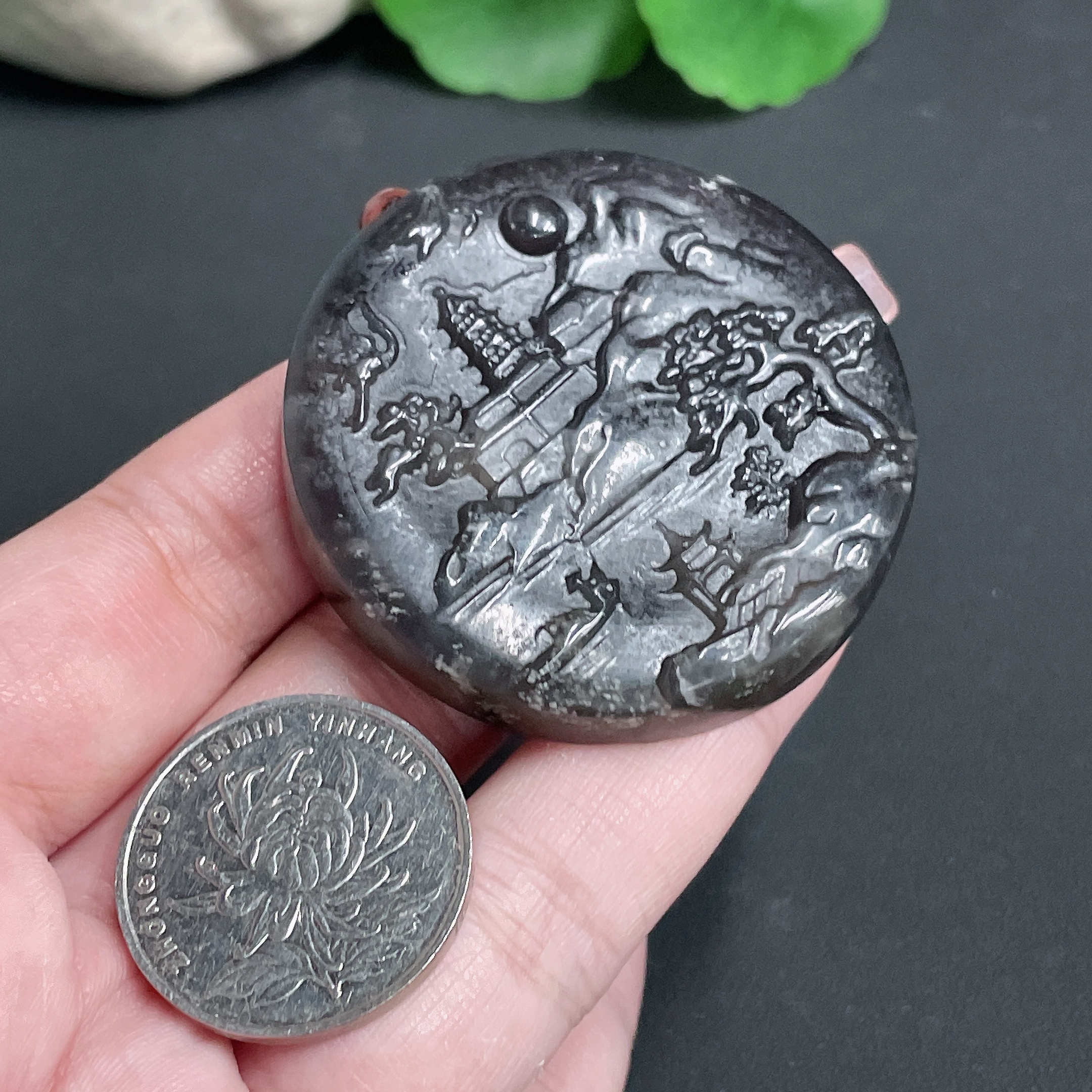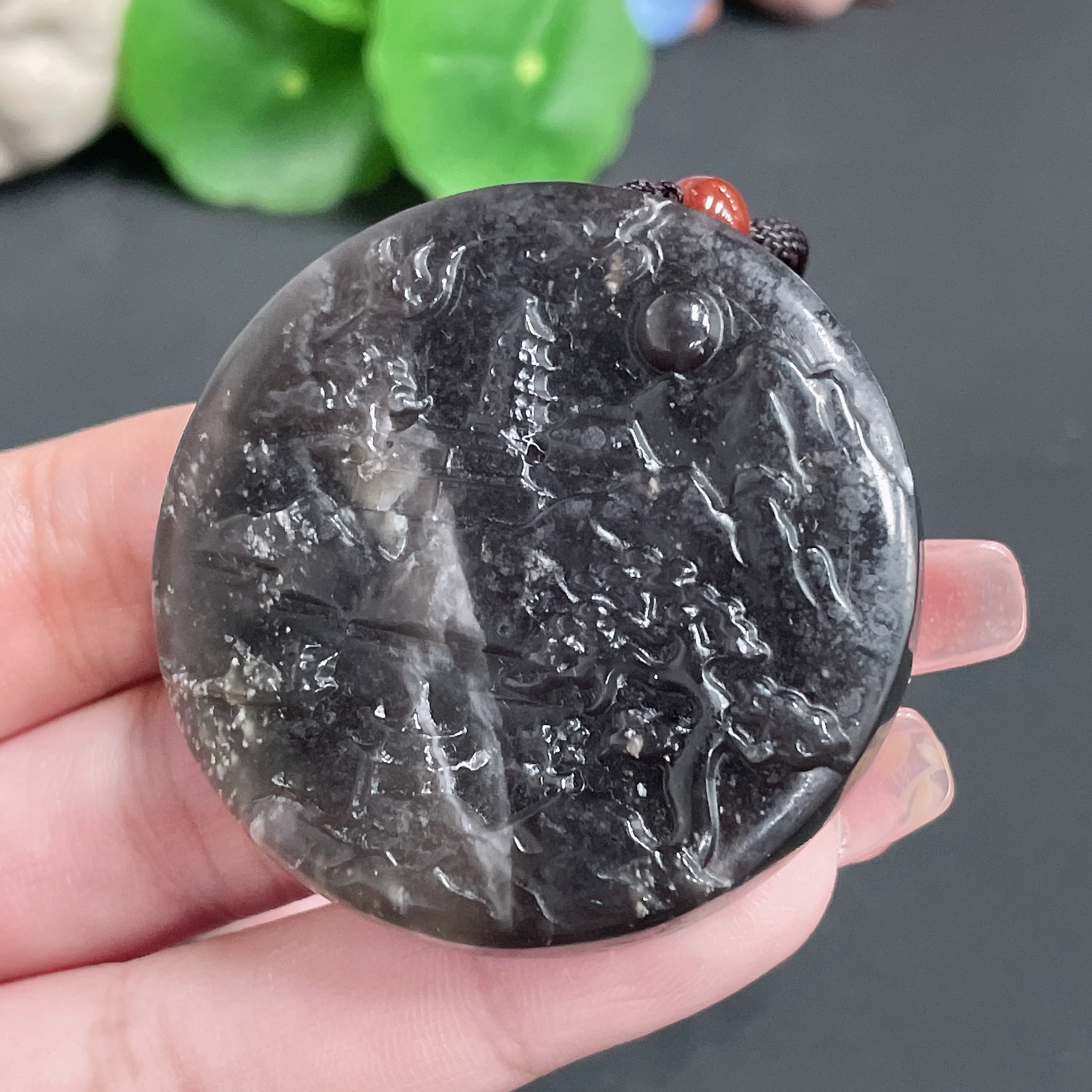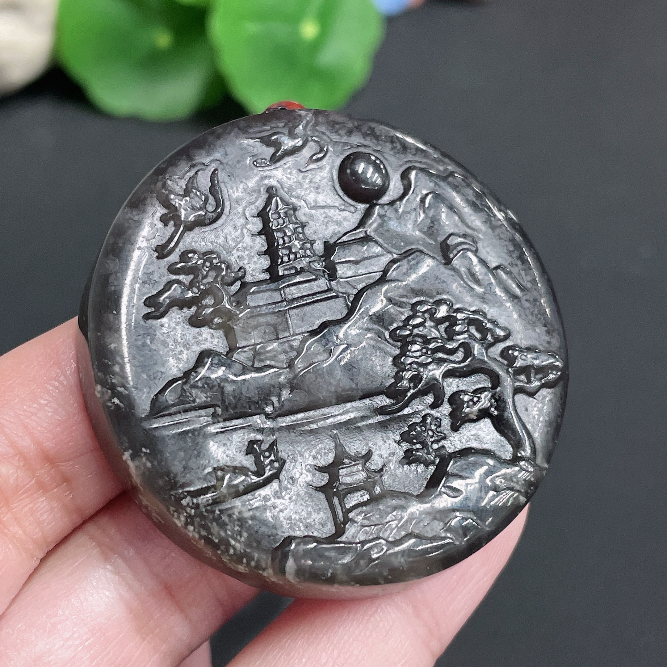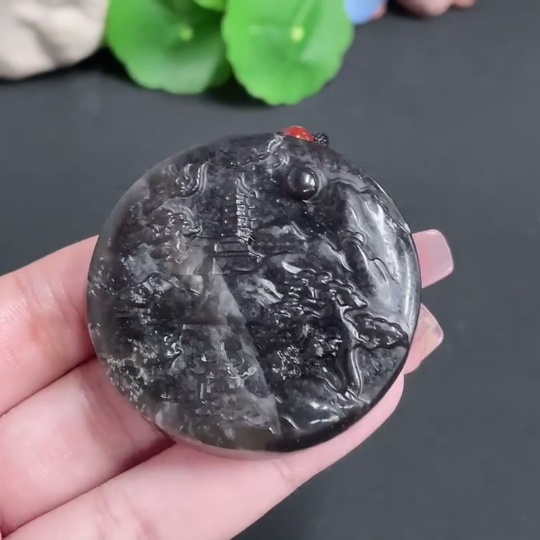 Hetian Jade Pendant Landscape Plaque with Cord Total Weight 45.51g
