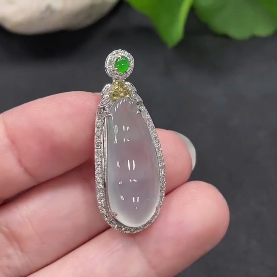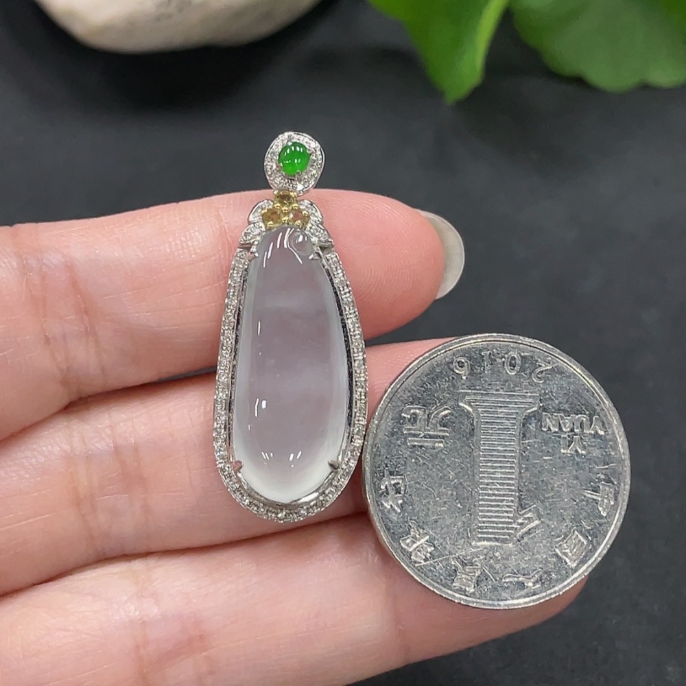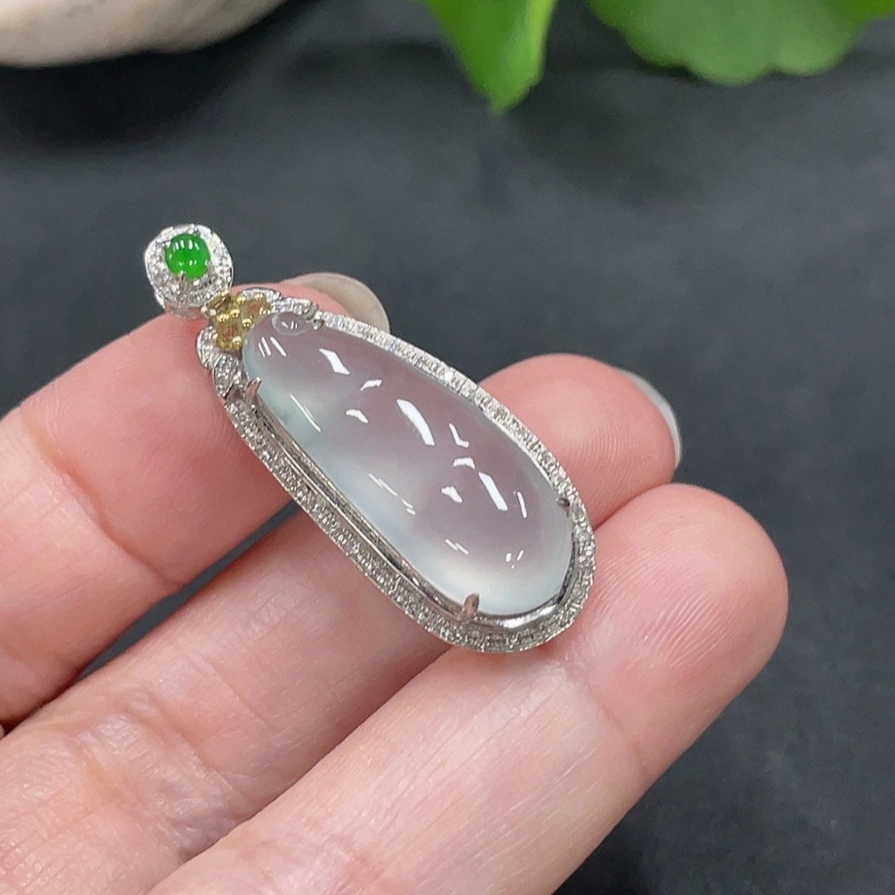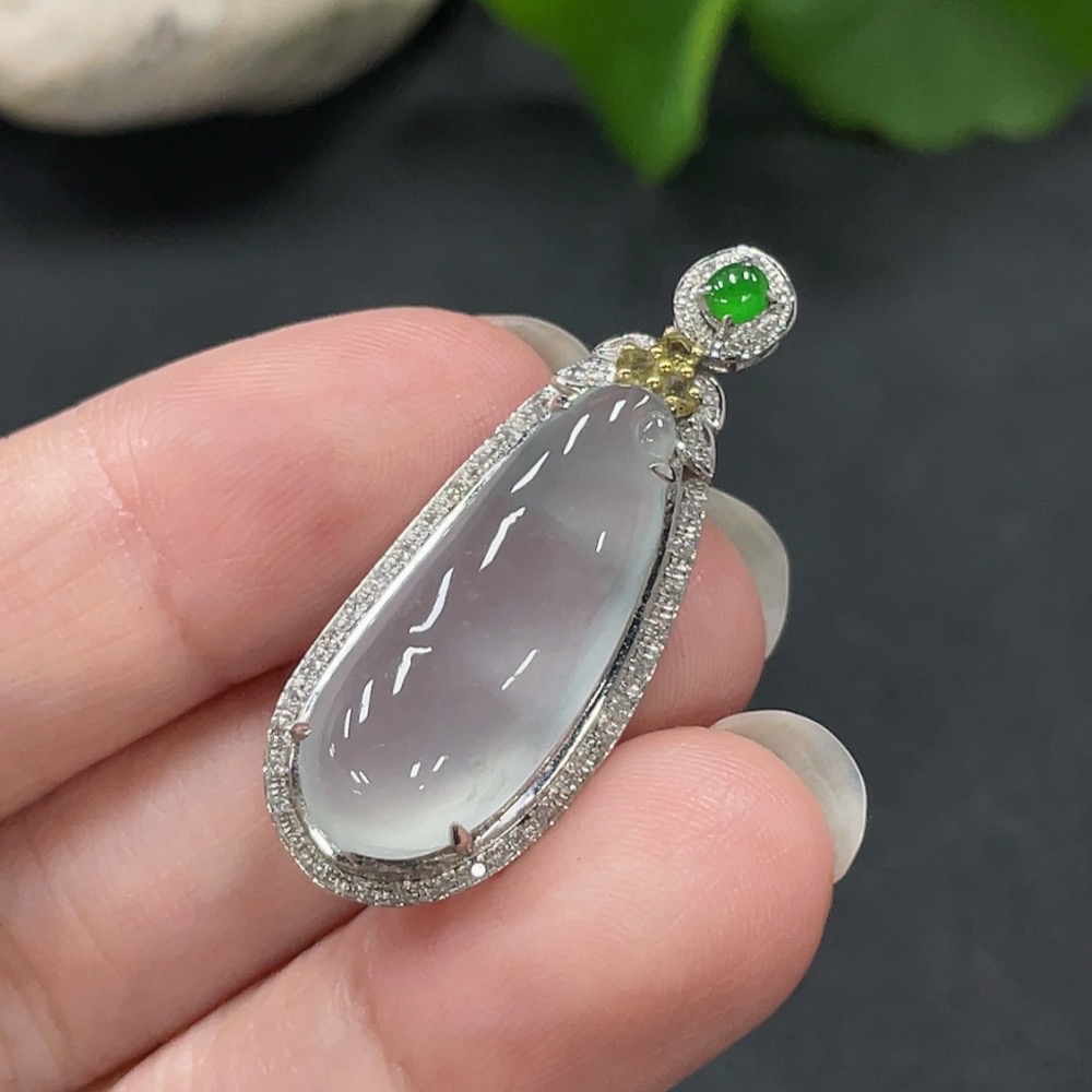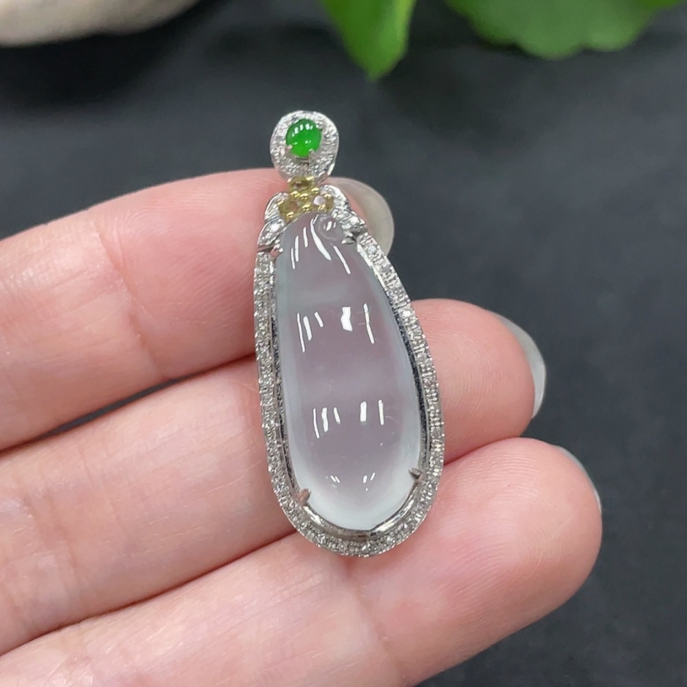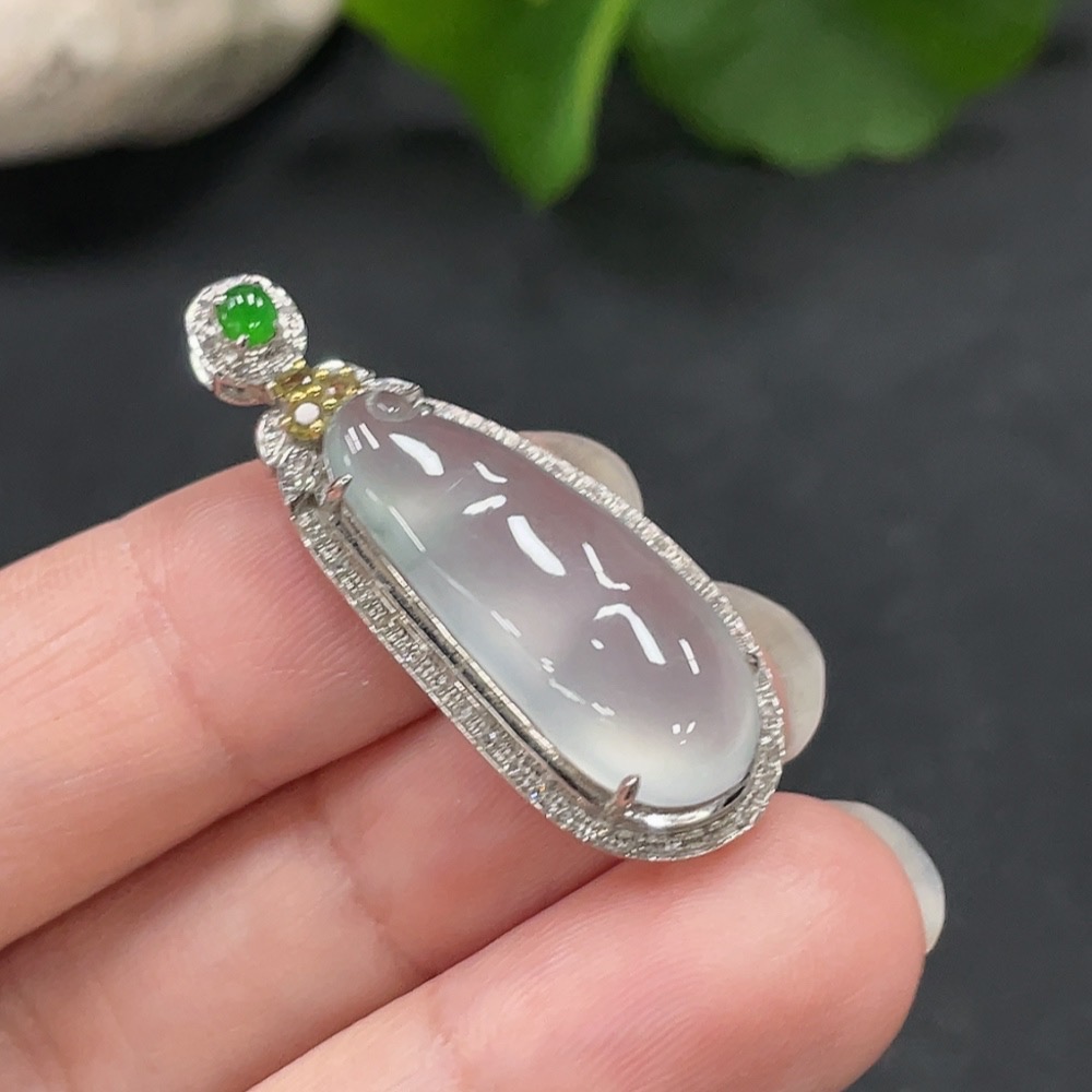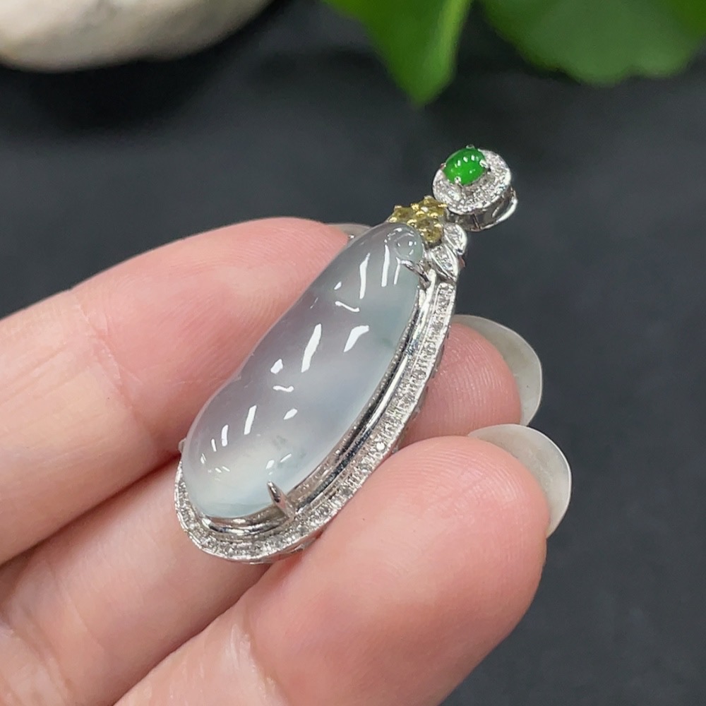 Jadeite Lucky Bean Pendant with 18K Gold Setting, Total Weight Approx. 4.1g