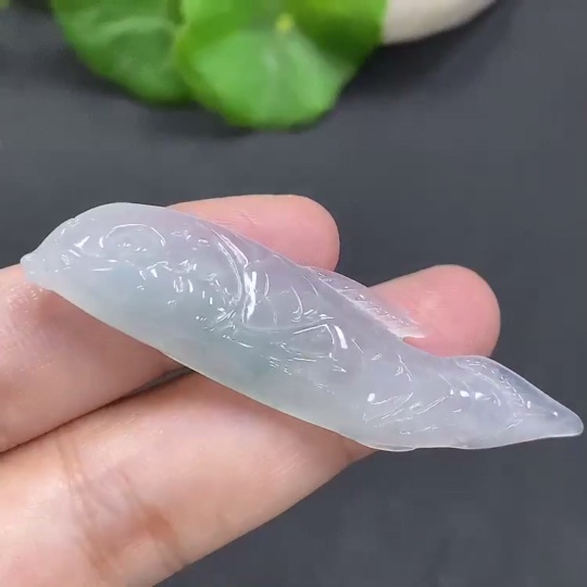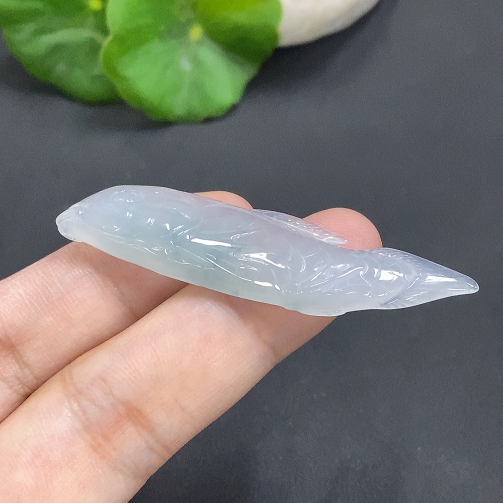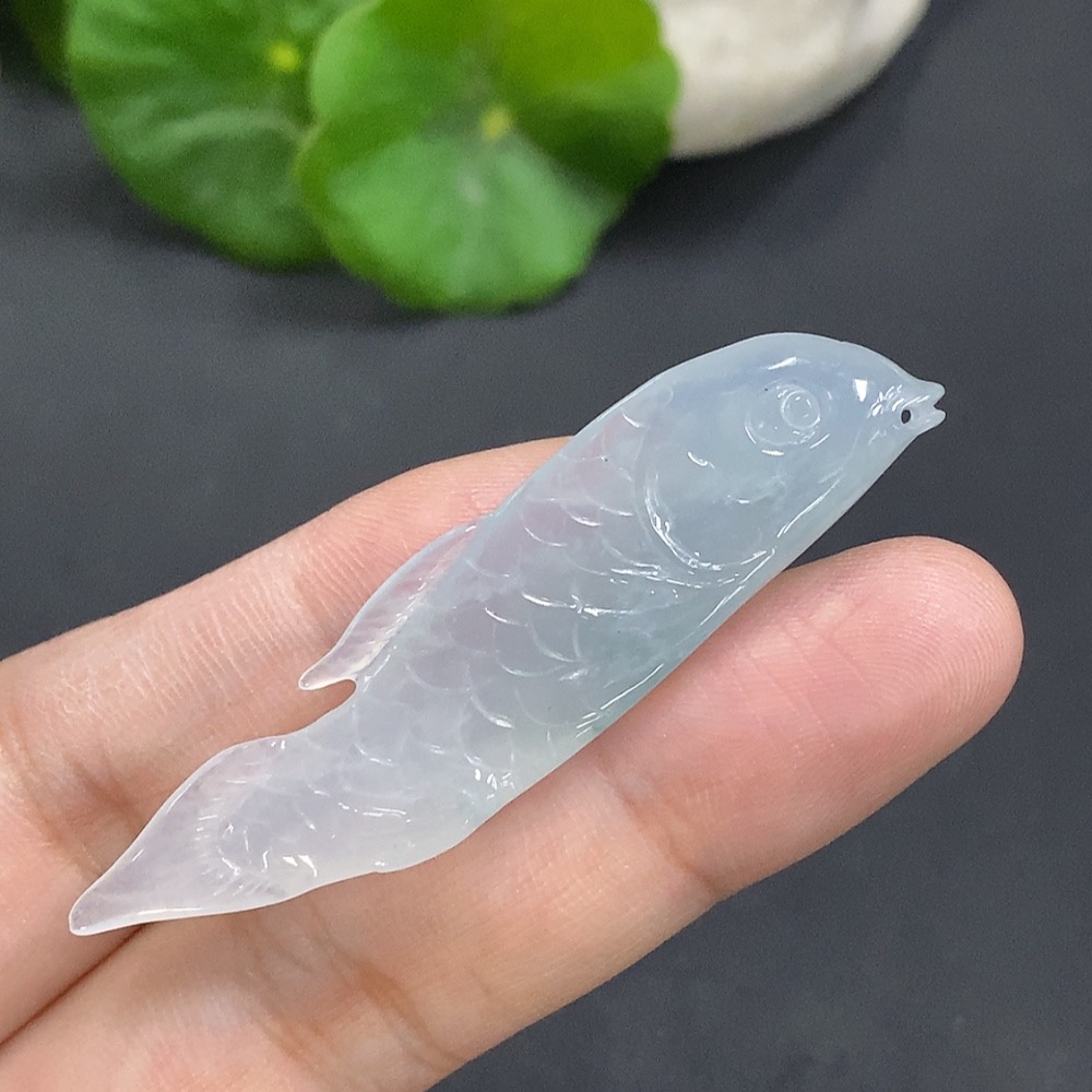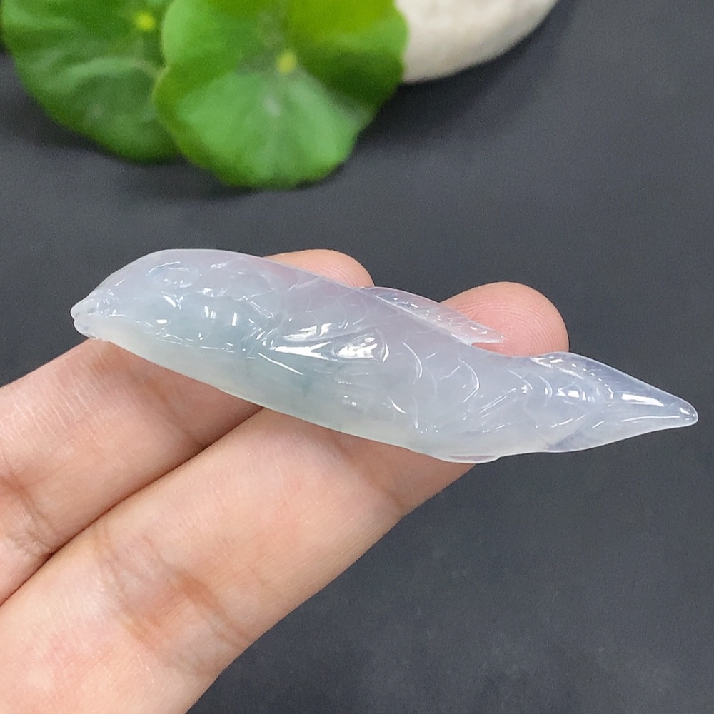 Jadeite Auspicious Fish Pendant, Total Weight: 7.546g
