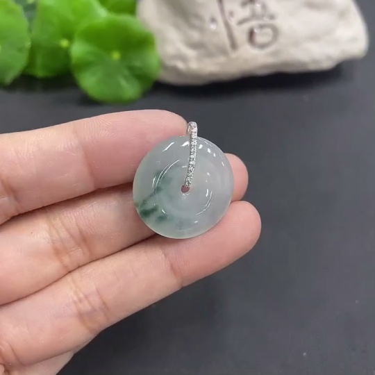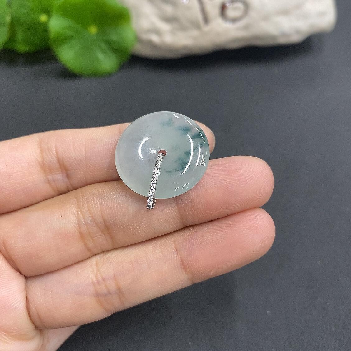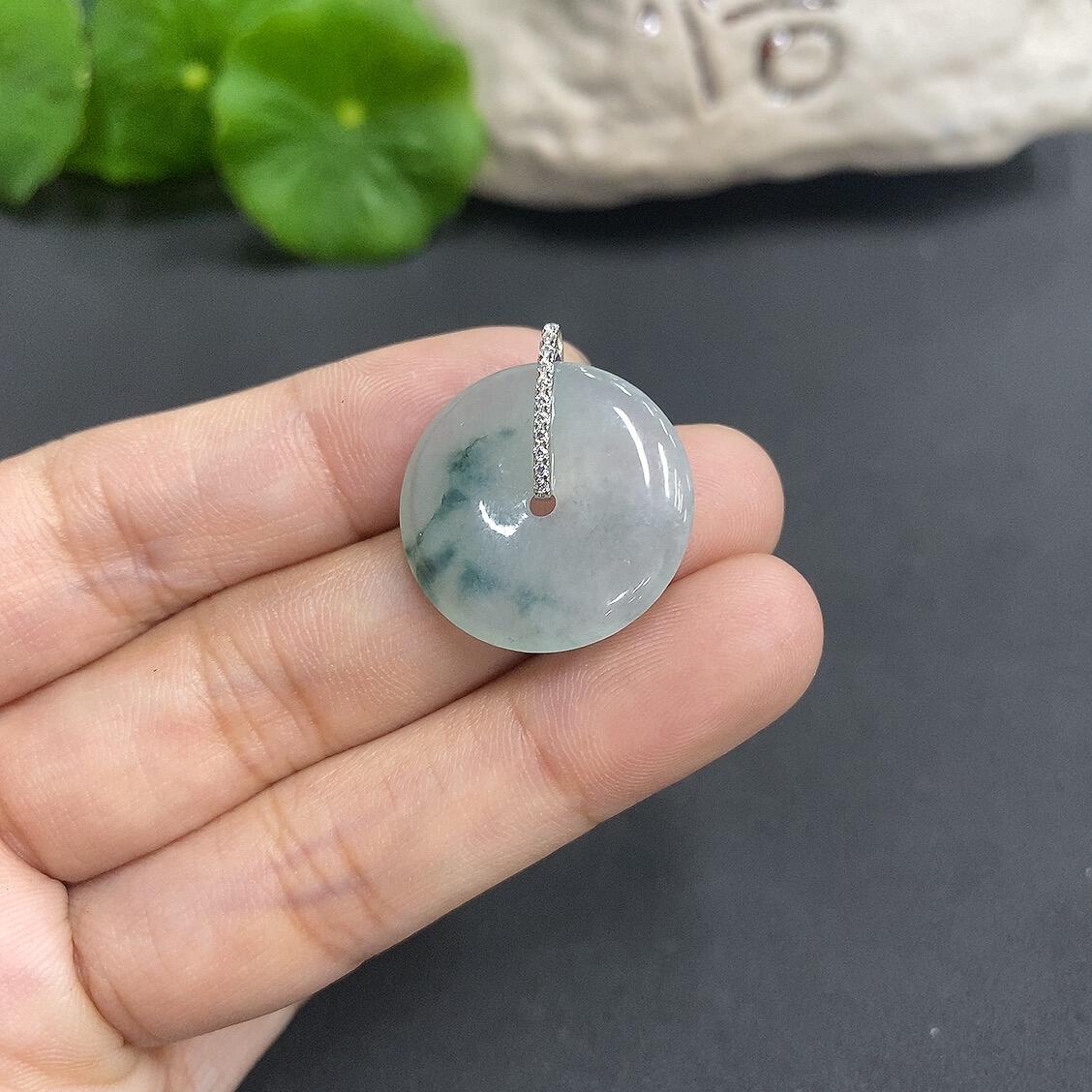 Jadeite 'Floating Flower' Peace Pendant with Veins/Cracks and 18K Gold Bail