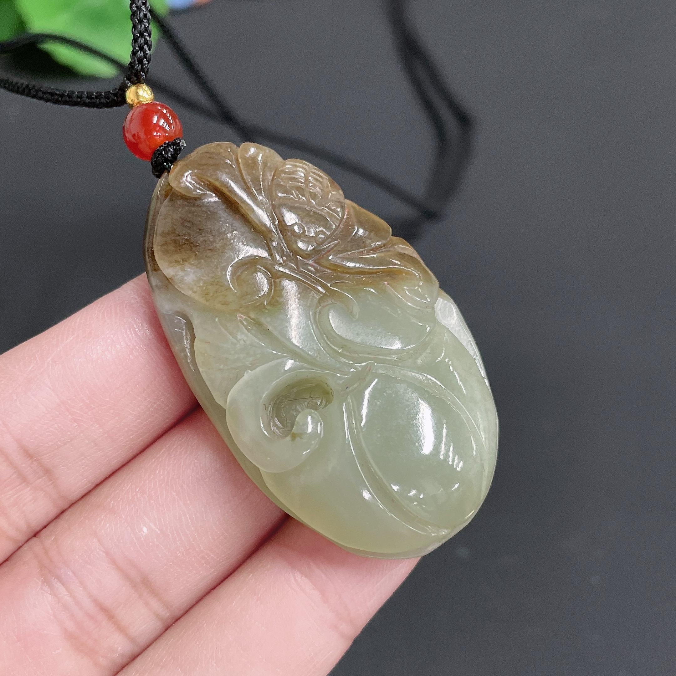 Hetian Jade Pendant with Cord, Total Weight 26.56g