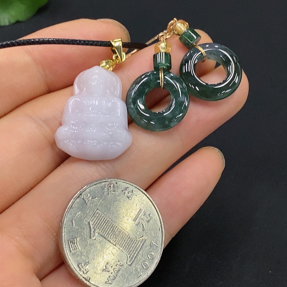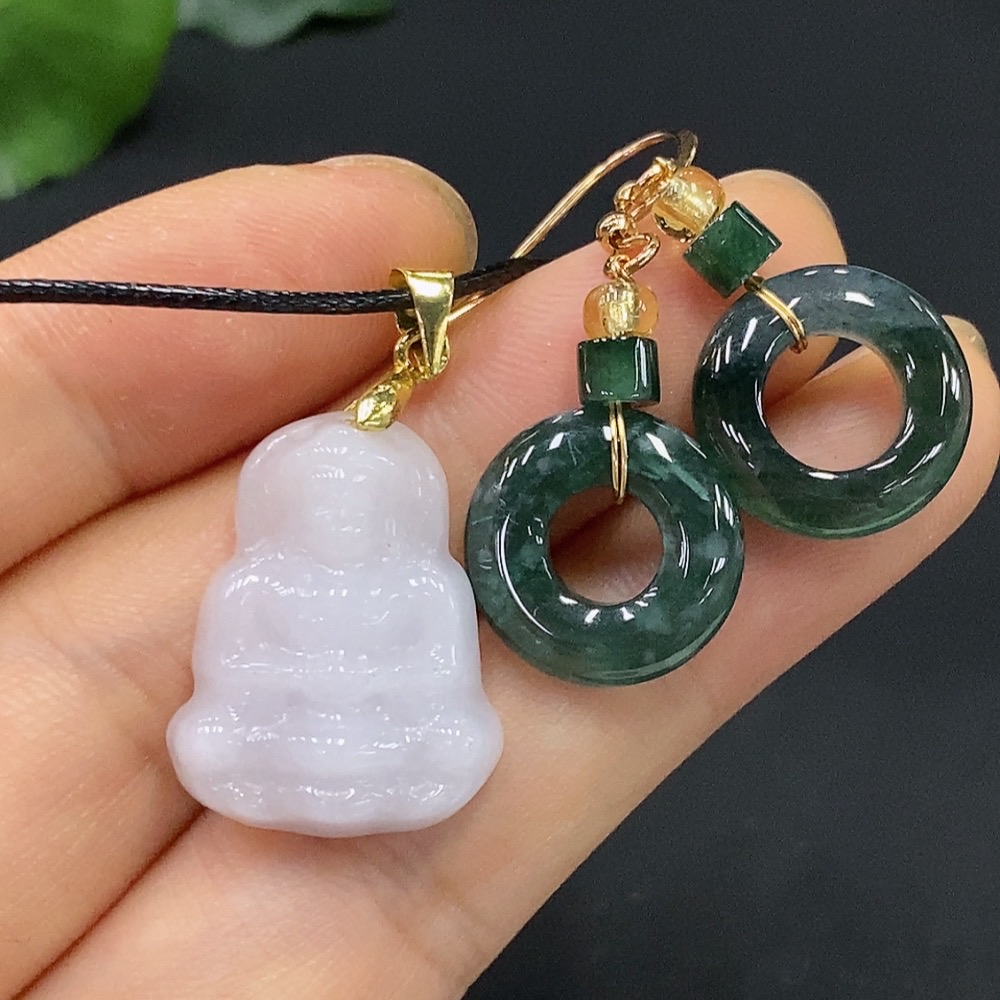 Jadeite Guanyin Pendant + Inlaid Earrings (Non-Gold Inlaid)