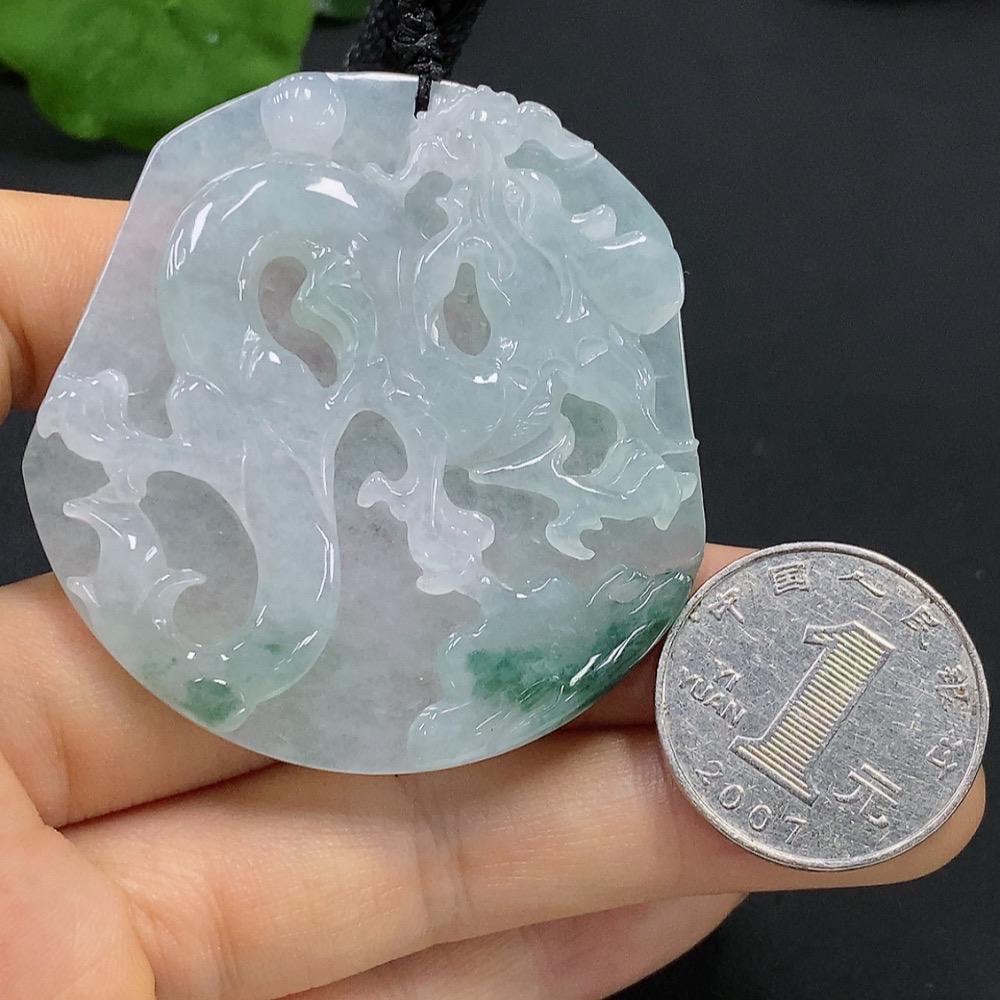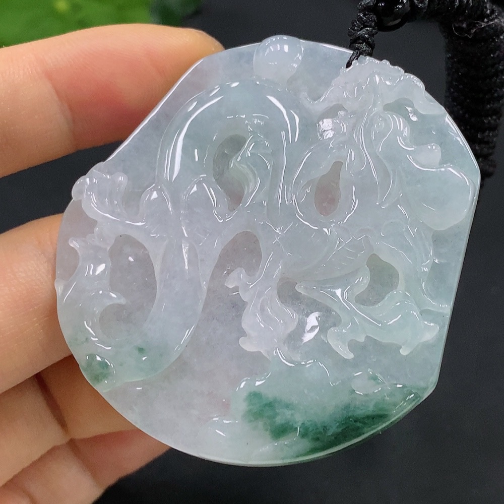 Jadeite Dragon Pendant with Non-A Grade Beads