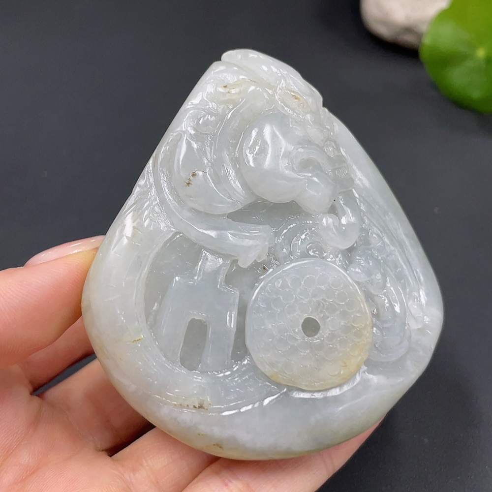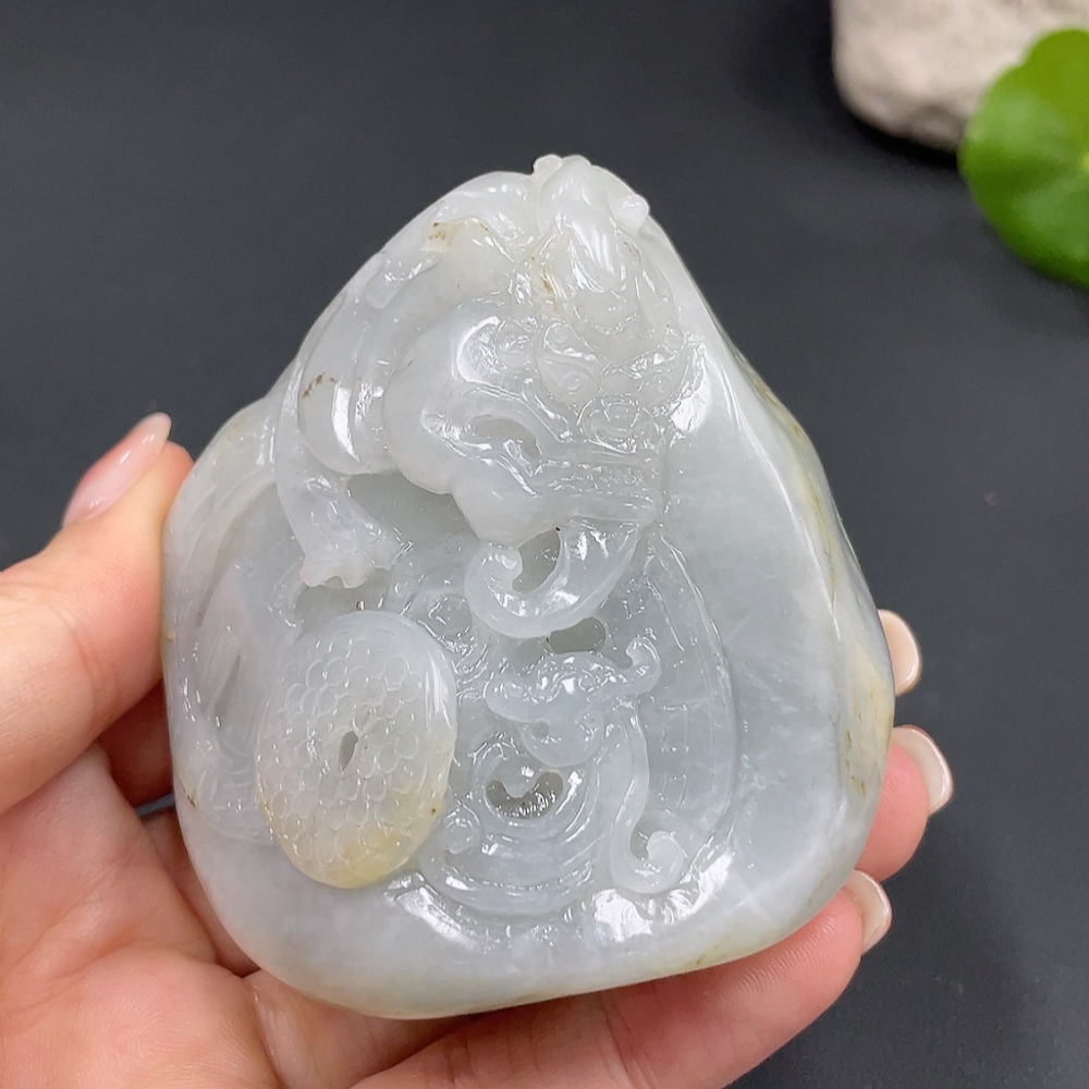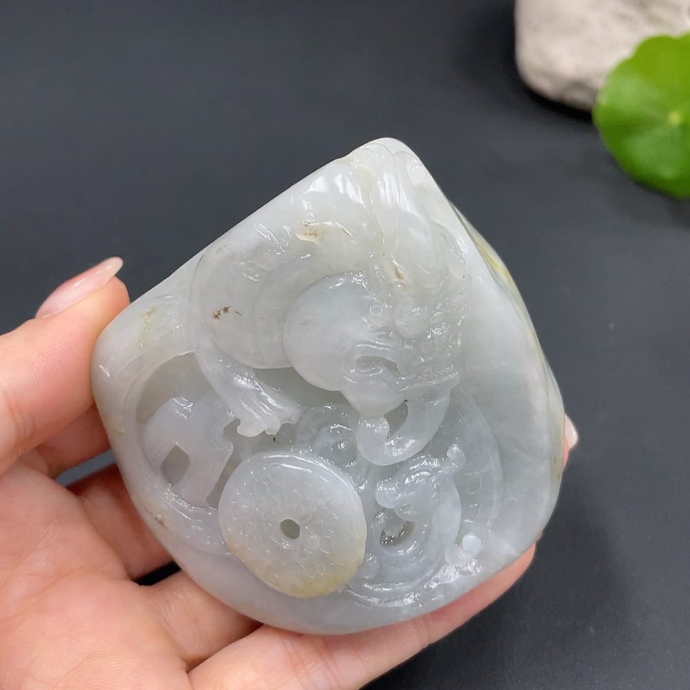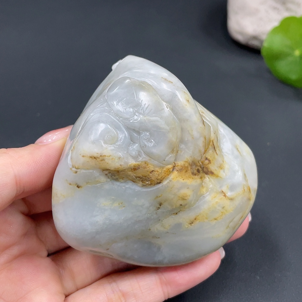 Trezaar - Hetian Jade Handheld Piece, Auspicious Beast, Undetermined Skin Color Formation, Total Weight Approx. 246.2g (246.475g)