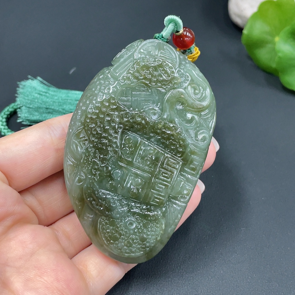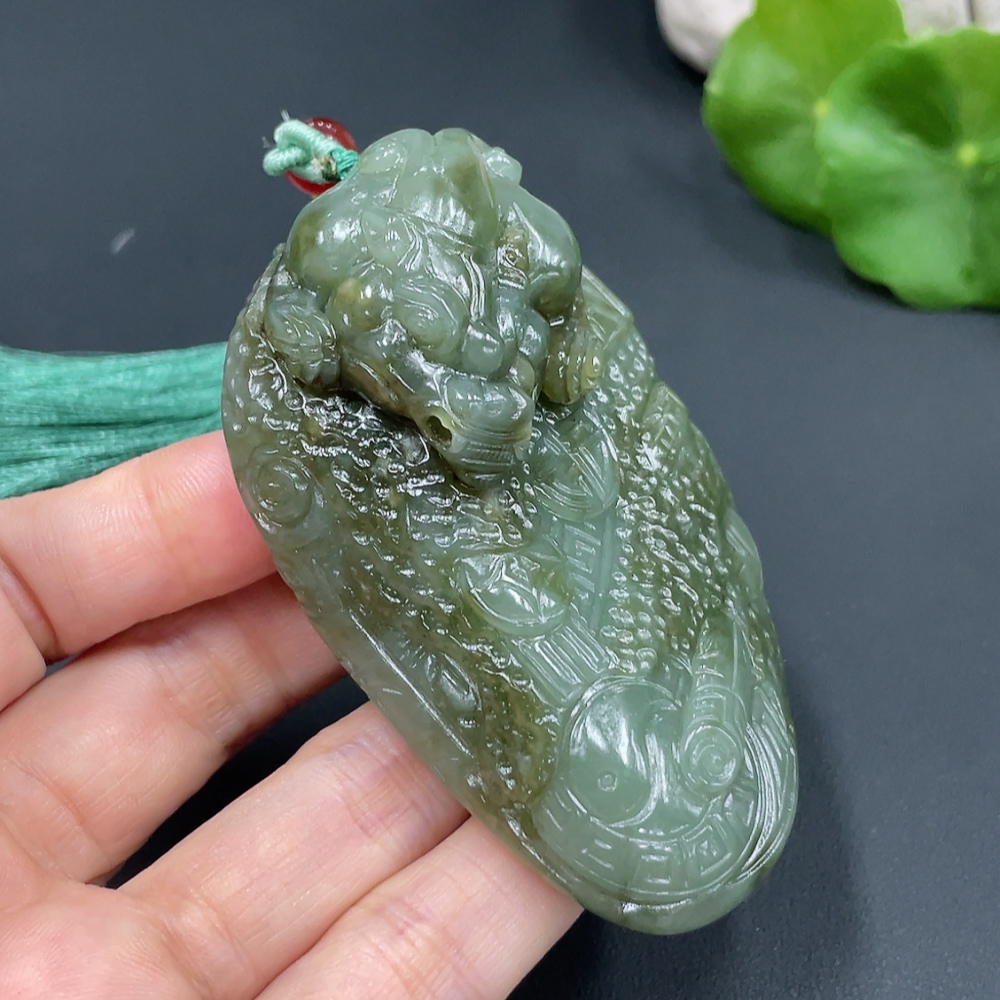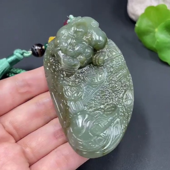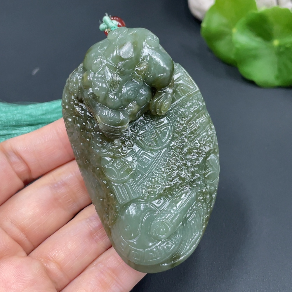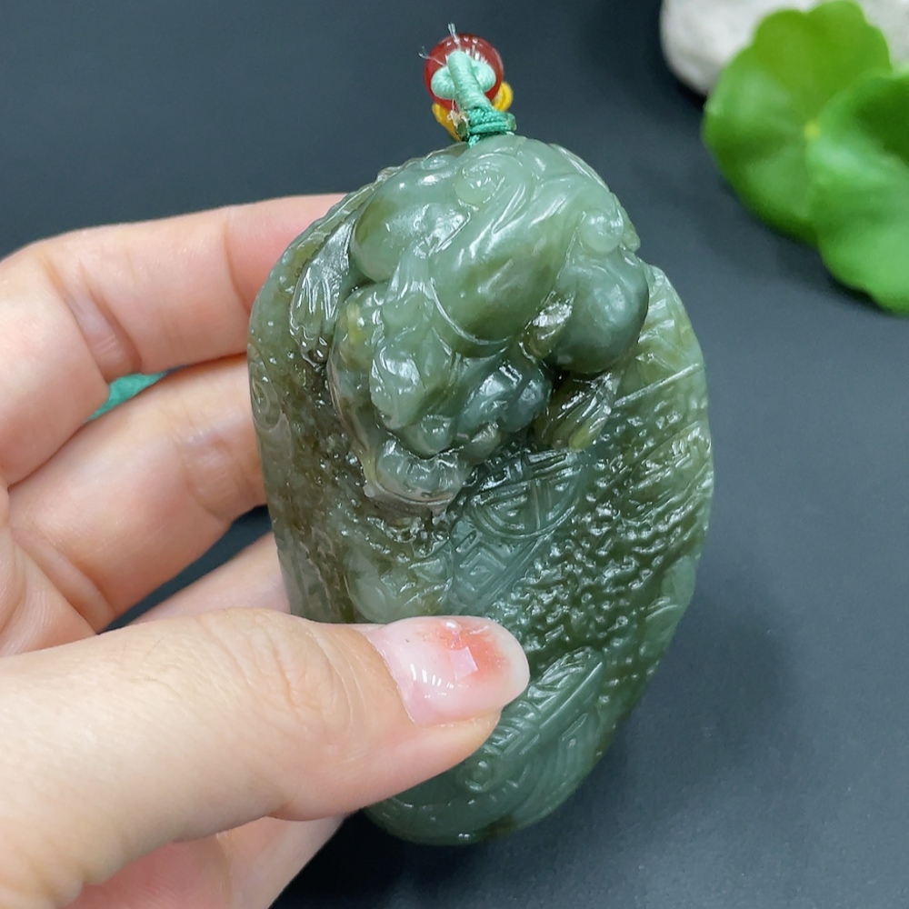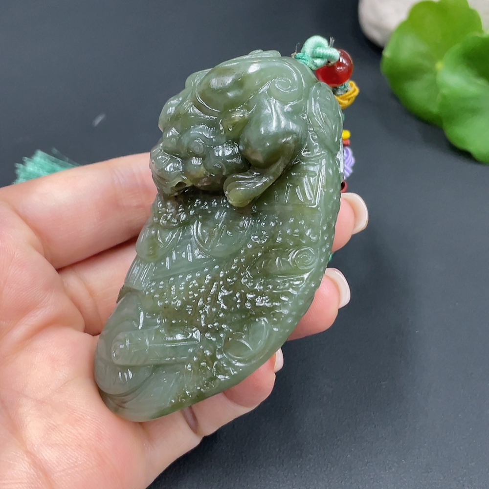 Hetian Jade Handheld Piece Auspicious Beast Total Weight (including rope) 124.5g
