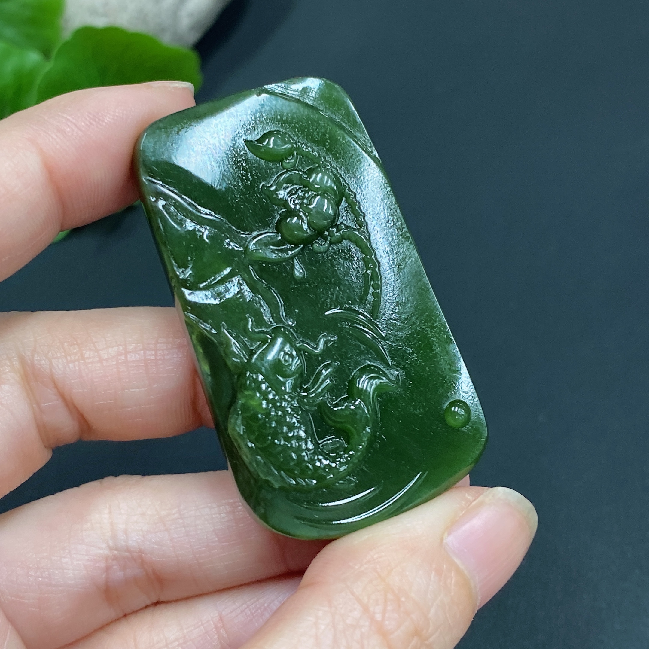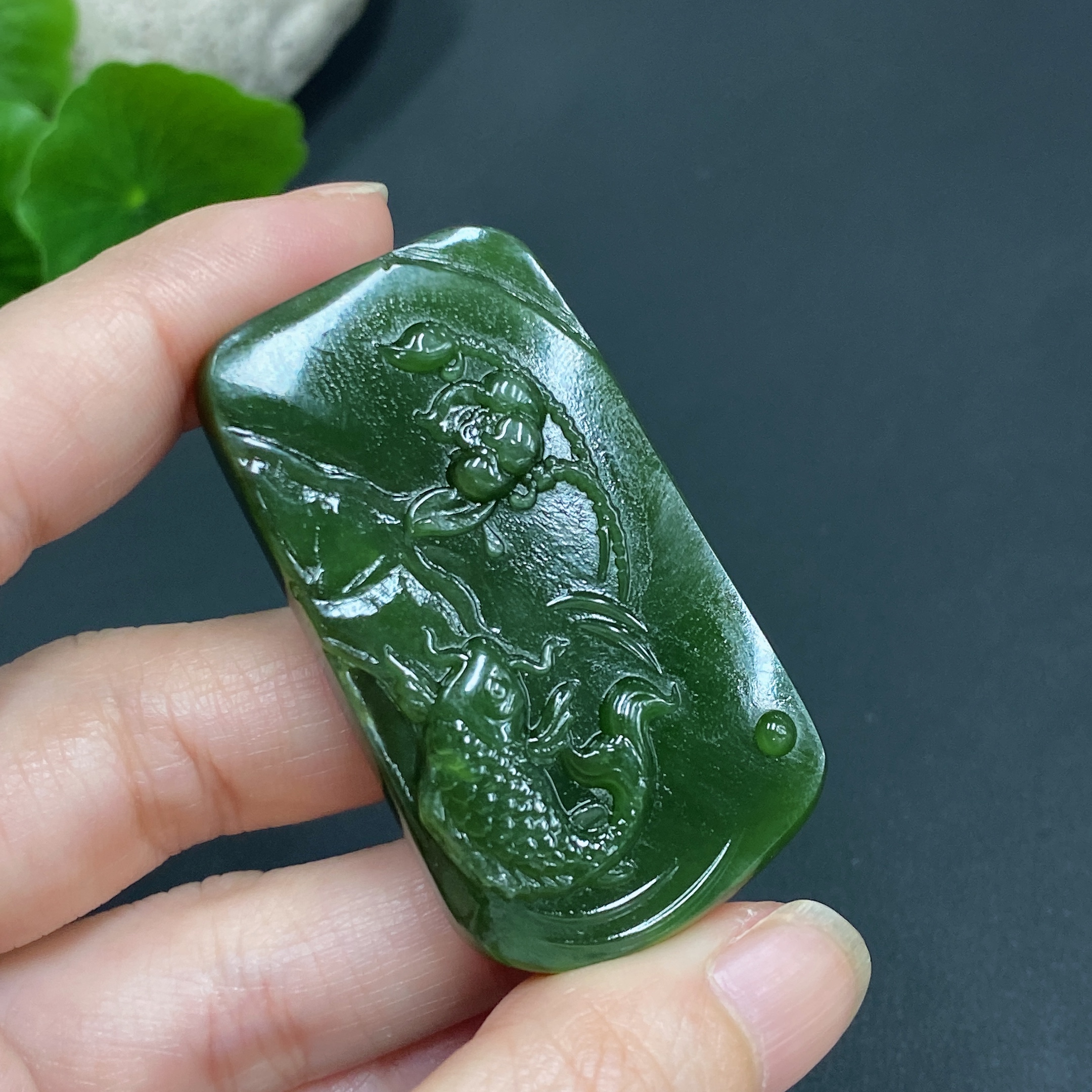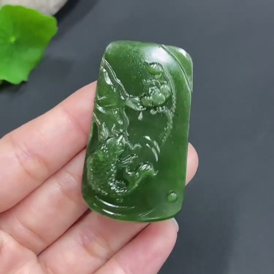 Hetian Jade Pendant Lotus Fish Total Weight About 29.5g