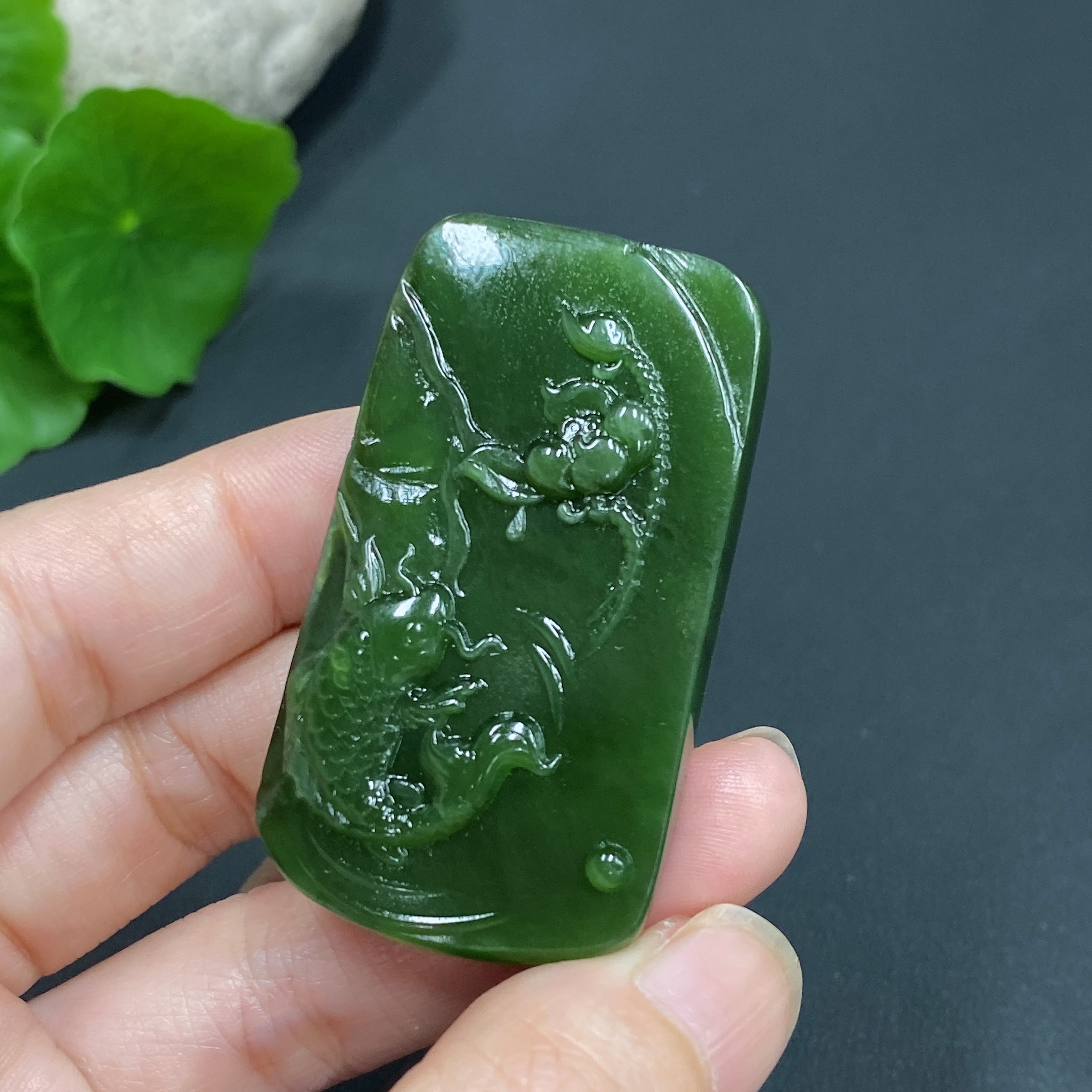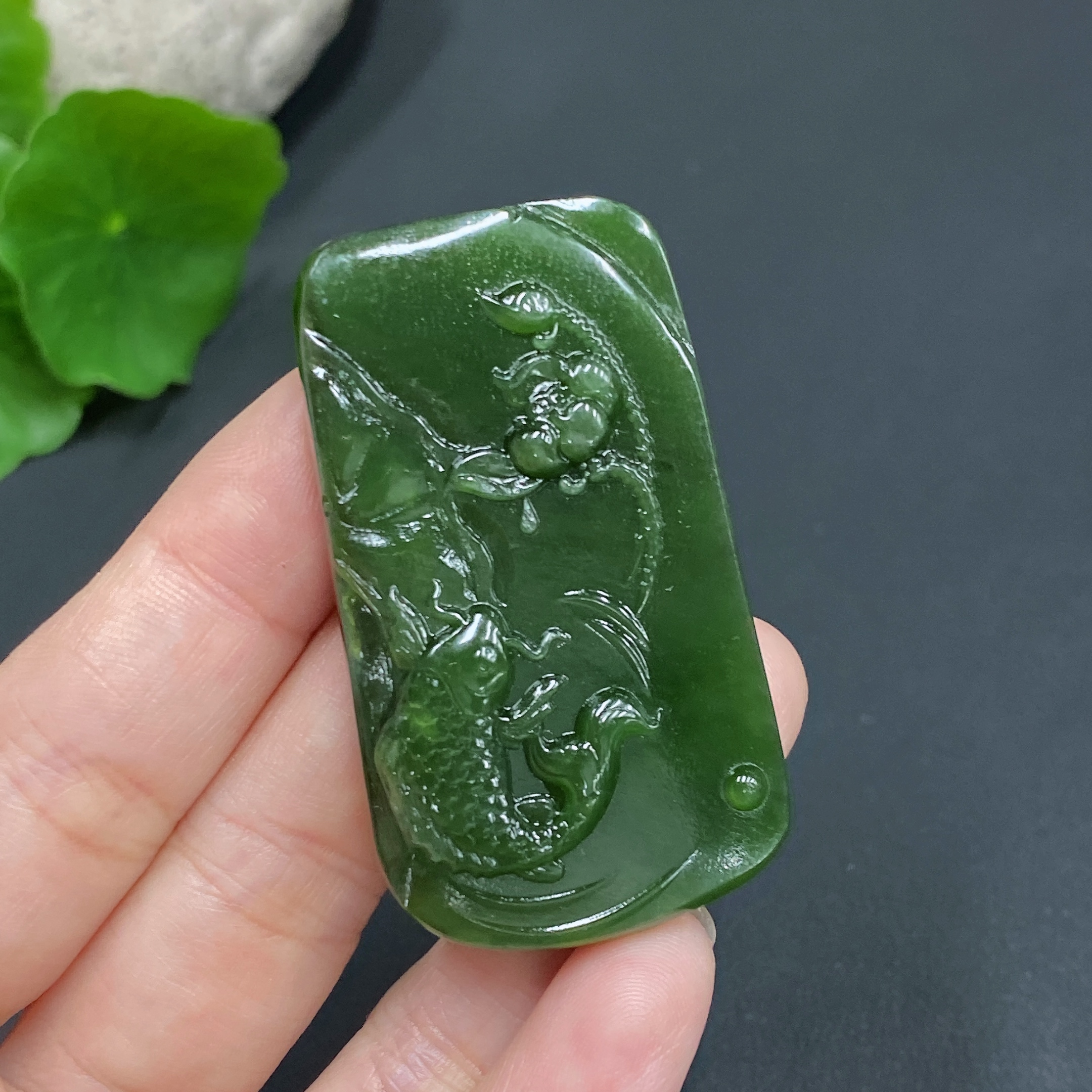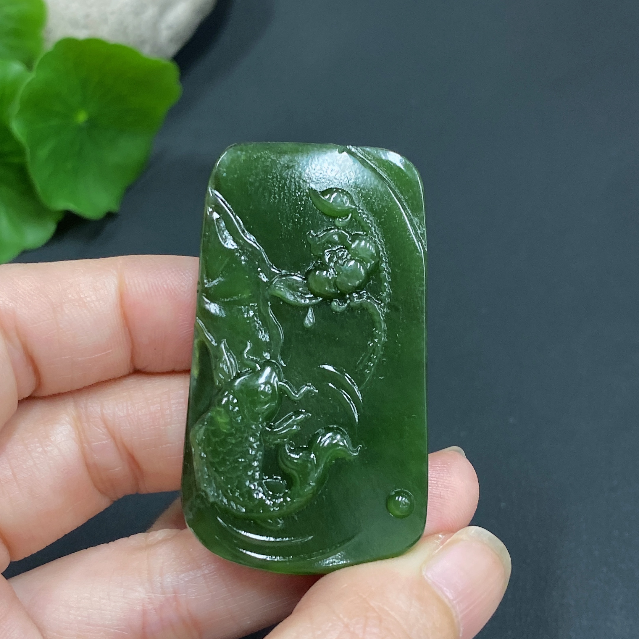 Hetian Jade Pendant Lotus Fish Total Weight About 29.5g