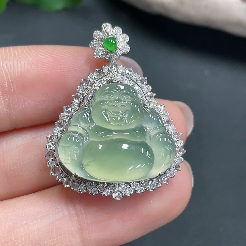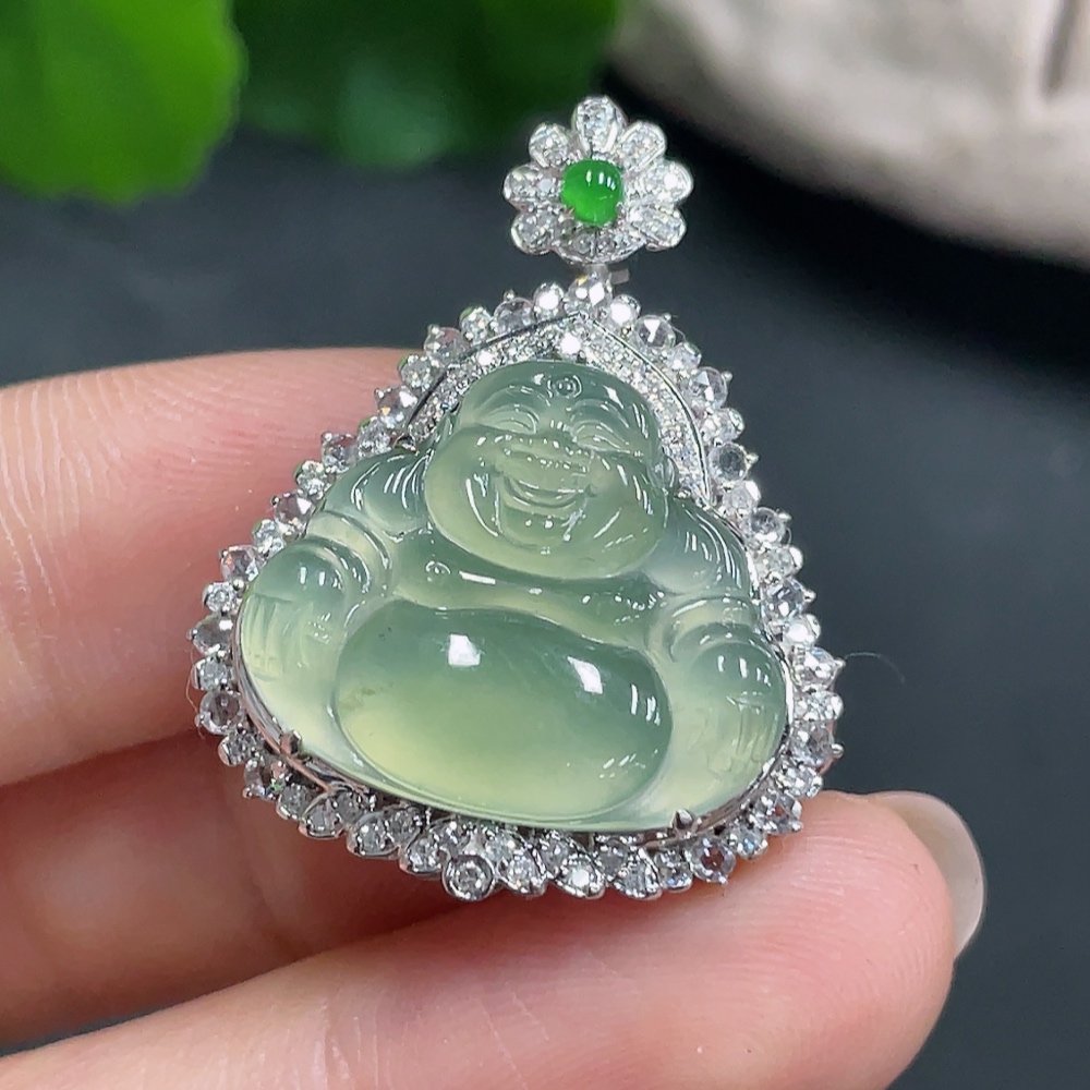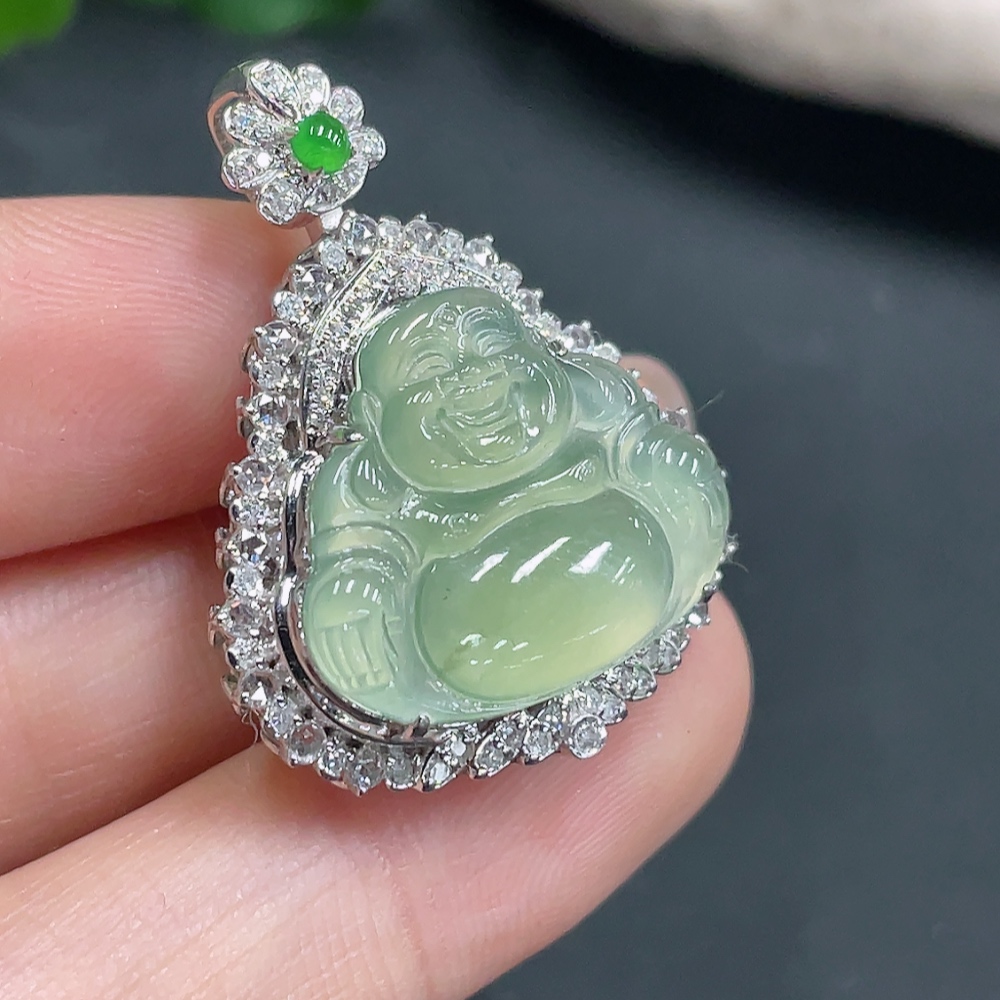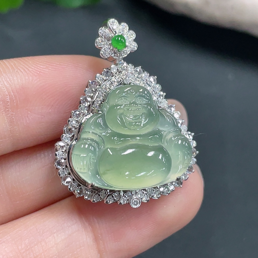 Jadeite inlaid Buddha pendant 18k total weight approx. 7.19g