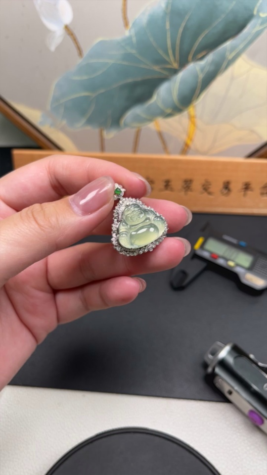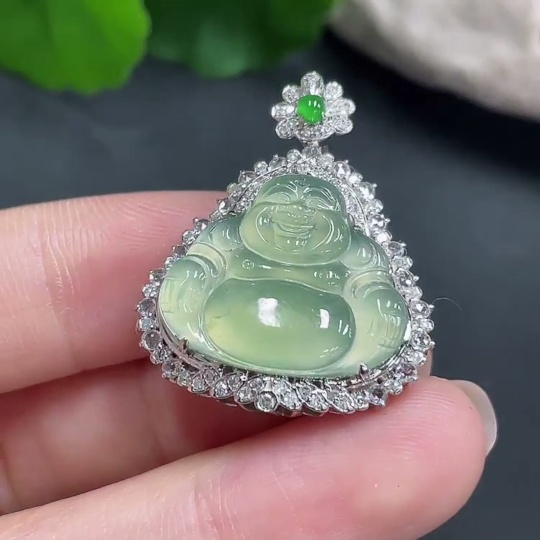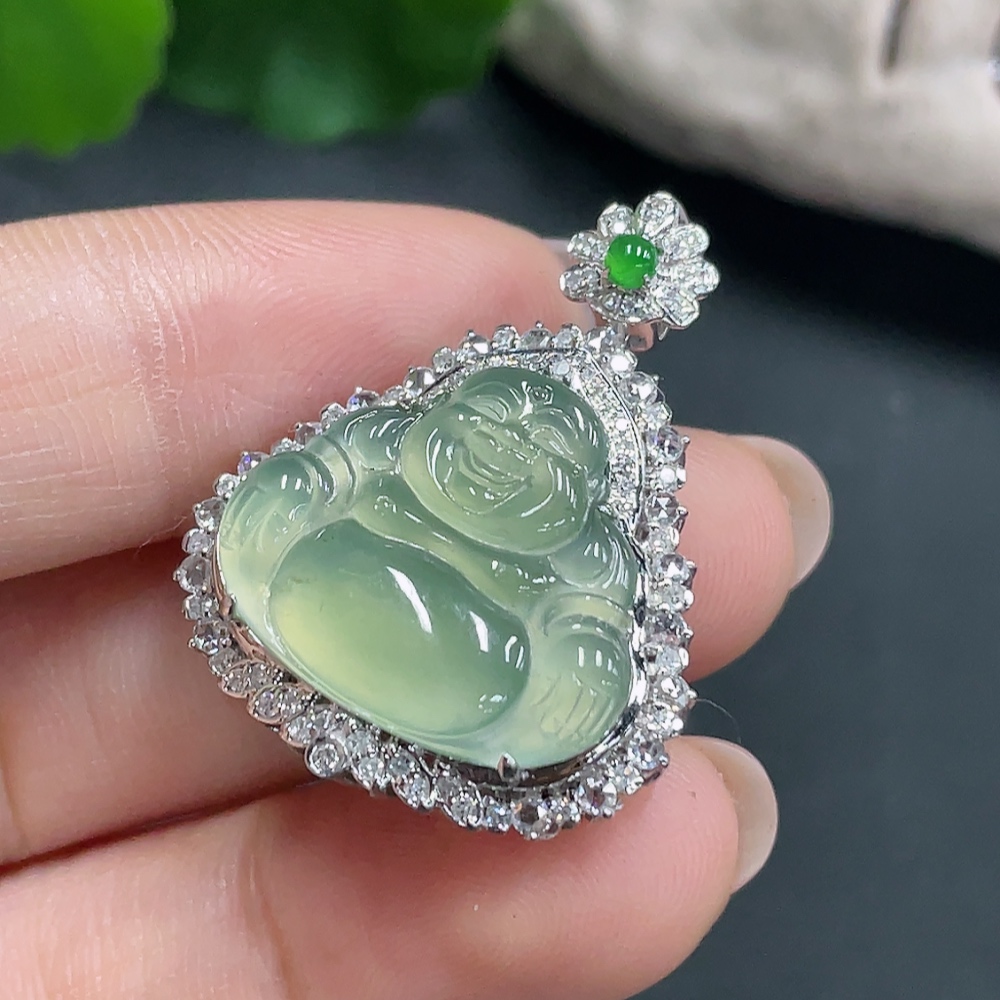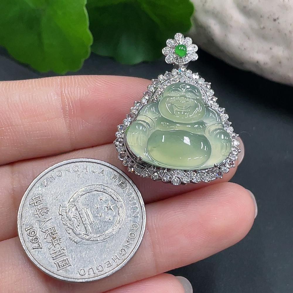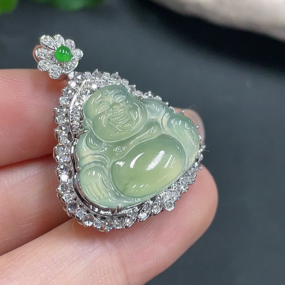 Jadeite inlaid Buddha pendant 18k total weight approx. 7.19g