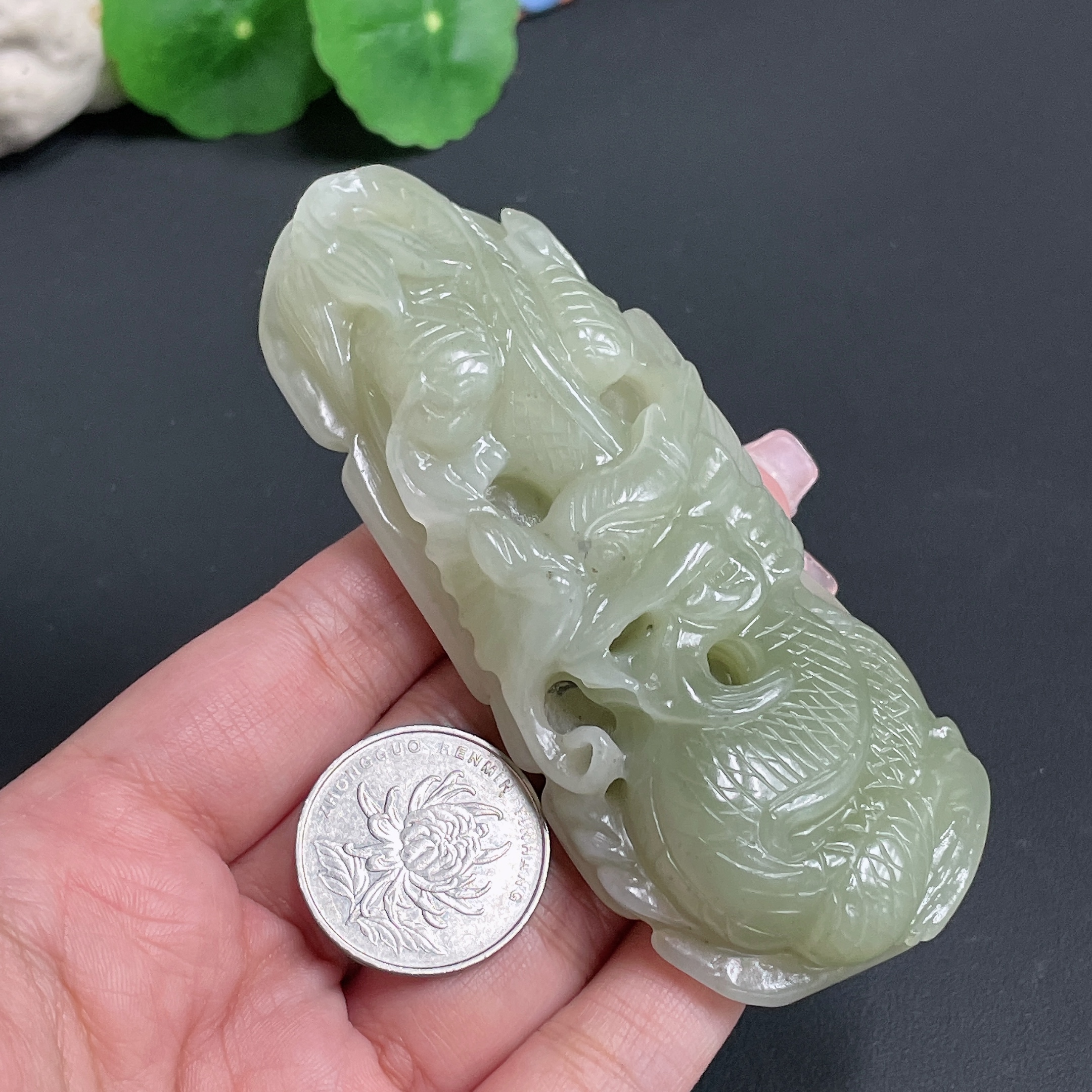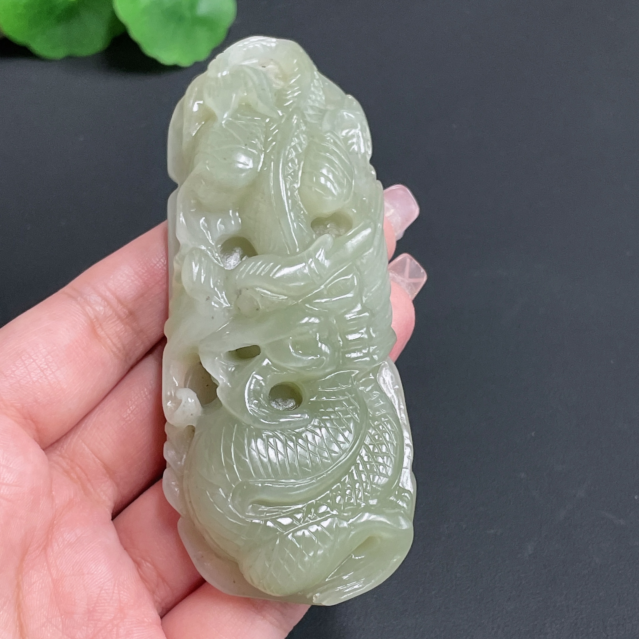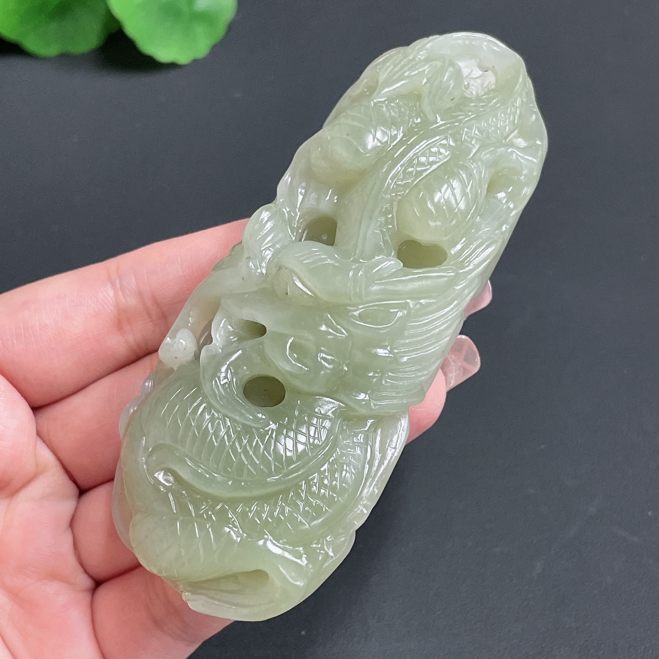 Hetian Jade Handheld Carving 'Soaring Dragon' Total Weight Approx.140g