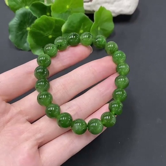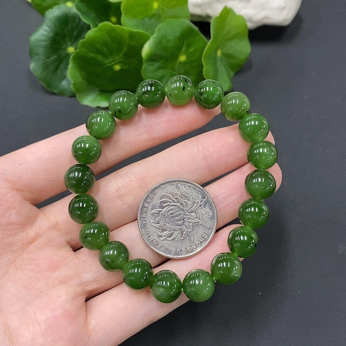 Hetian Jade Bead Necklace, Total Weight 26.3g, Some with Grain Cracks, 9.4mm