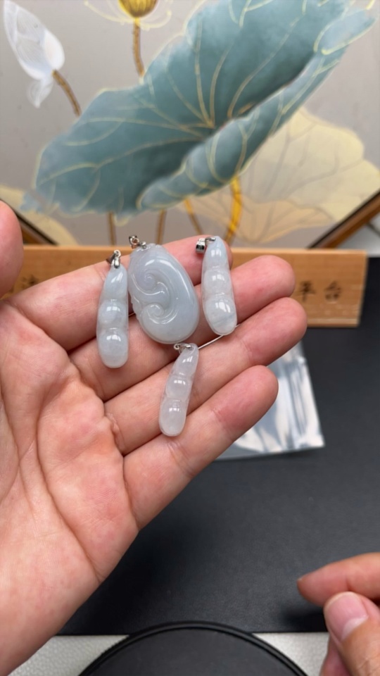 Jadeite Pendants Sell as a Lot Non-Gold Inlaid