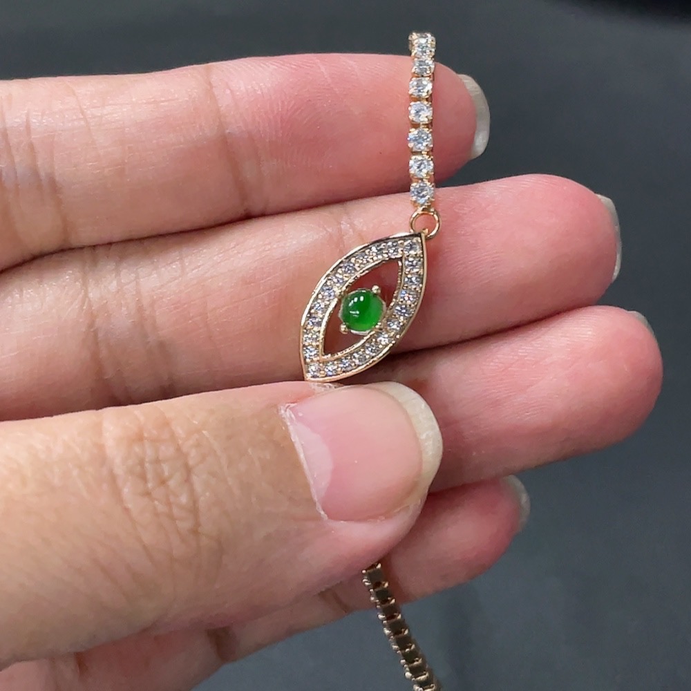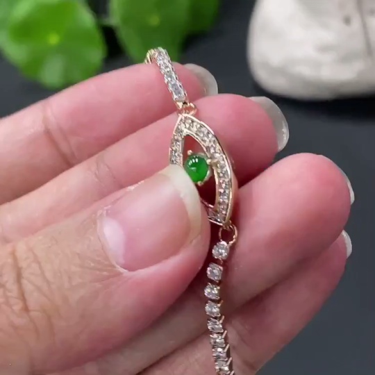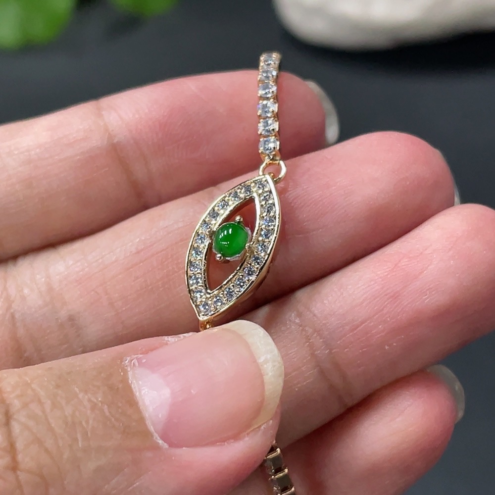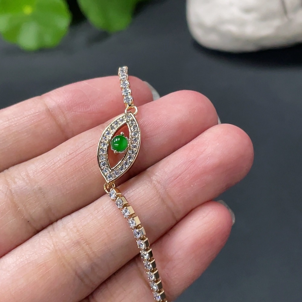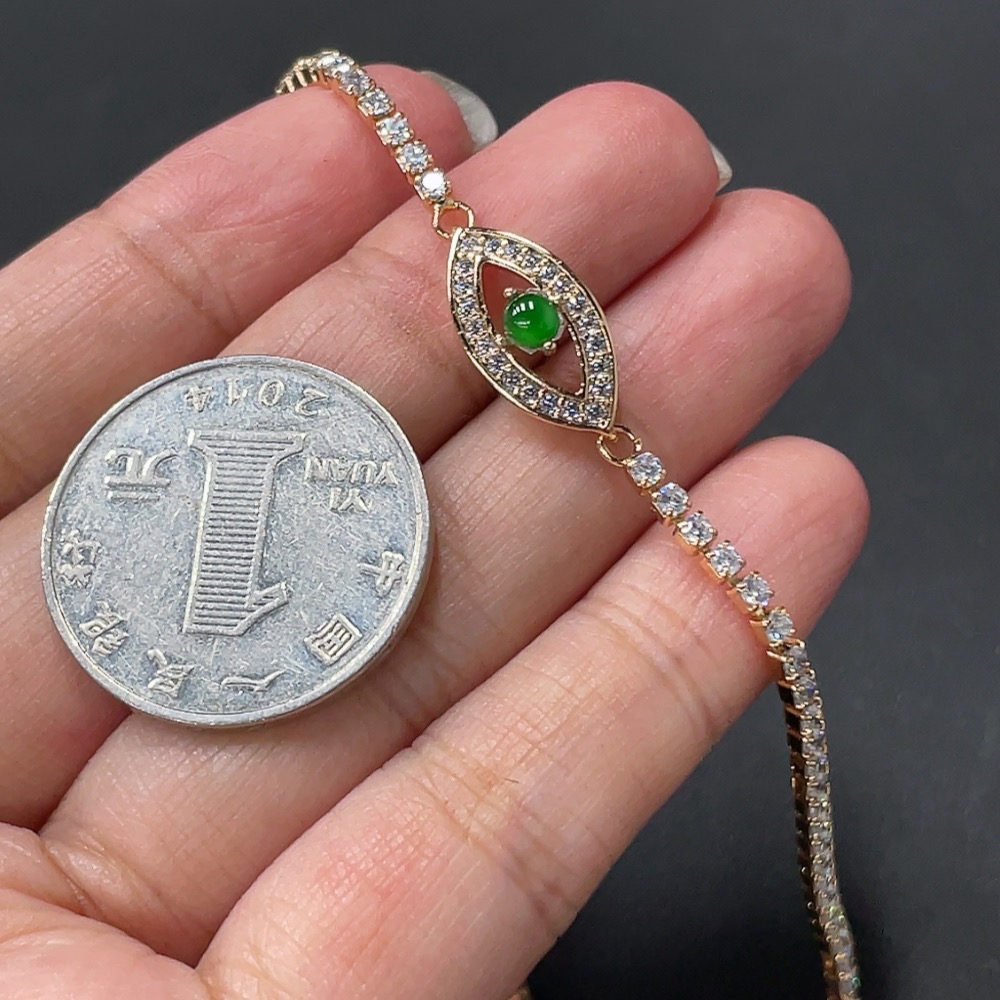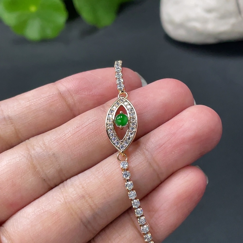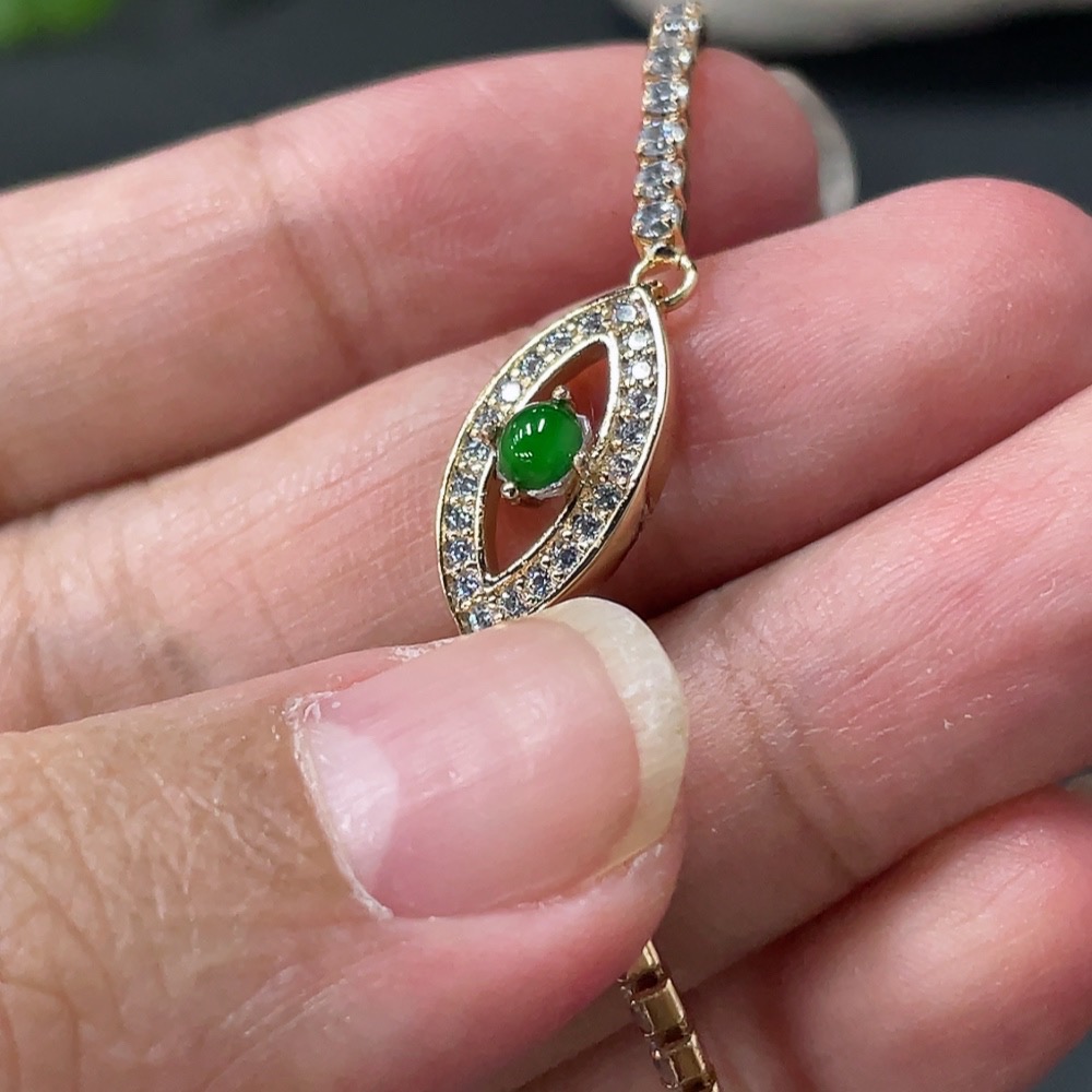 Jadeite Cabochon Inlaid Bracelet Non-Gold Inlaid Total Weight 3.947g