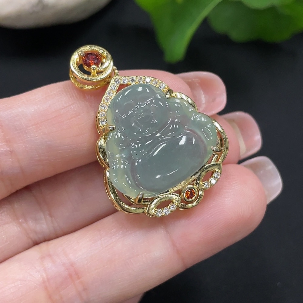Jadeite Buddha Inlaid Pendant (Non-Gold Inlaid) Total Weight 5.732g