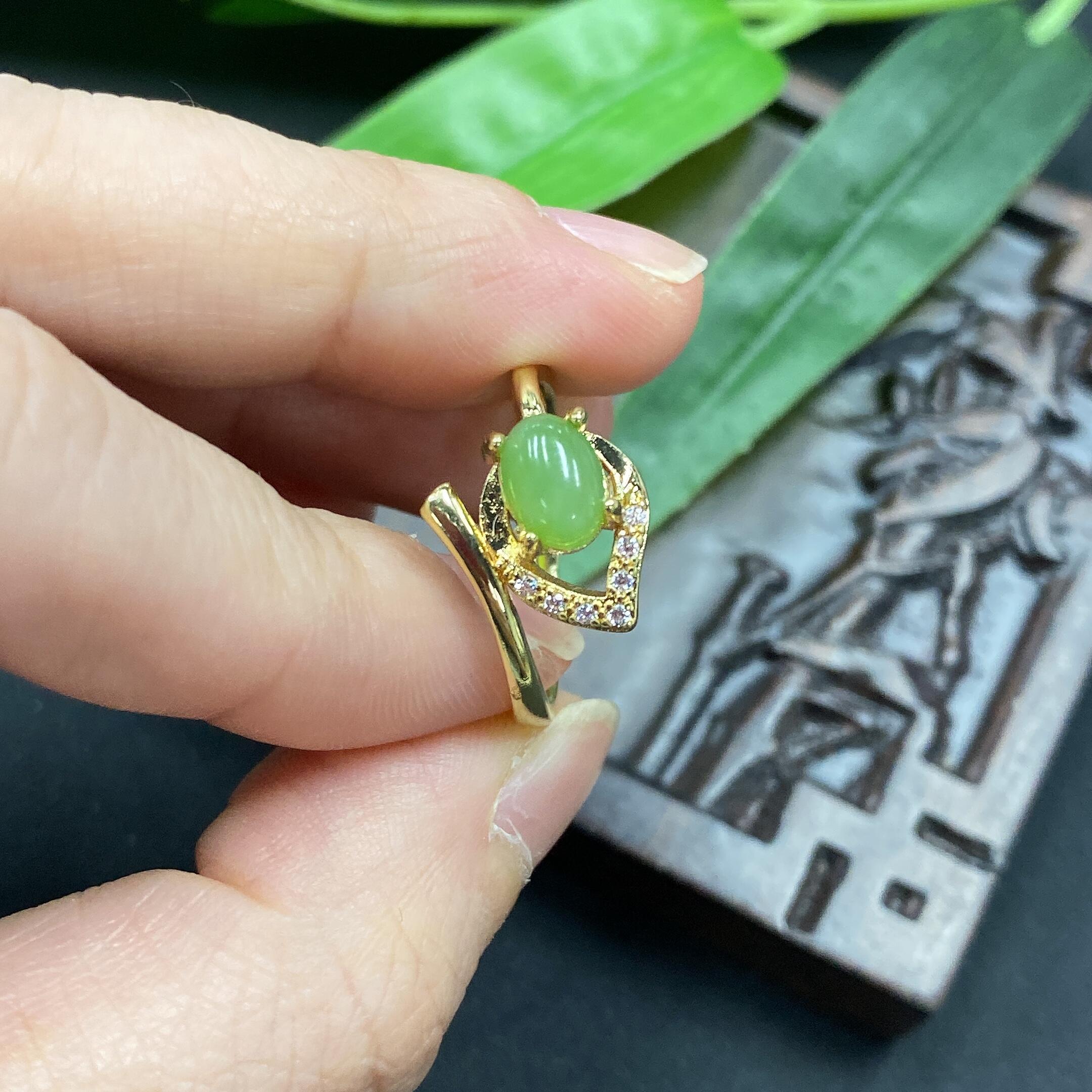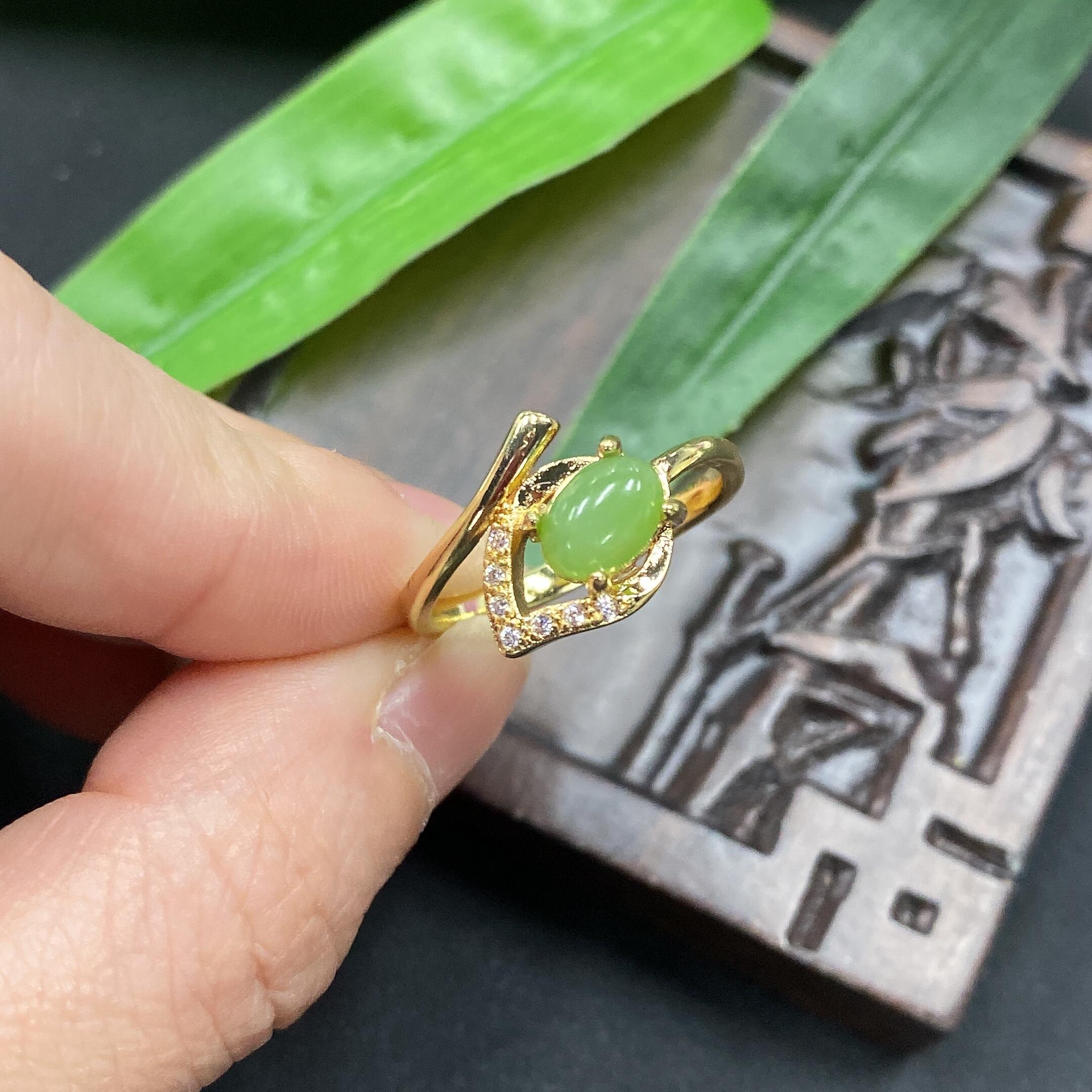 Hetian jade inlaid ring total weight 1.8 with grain adjustable