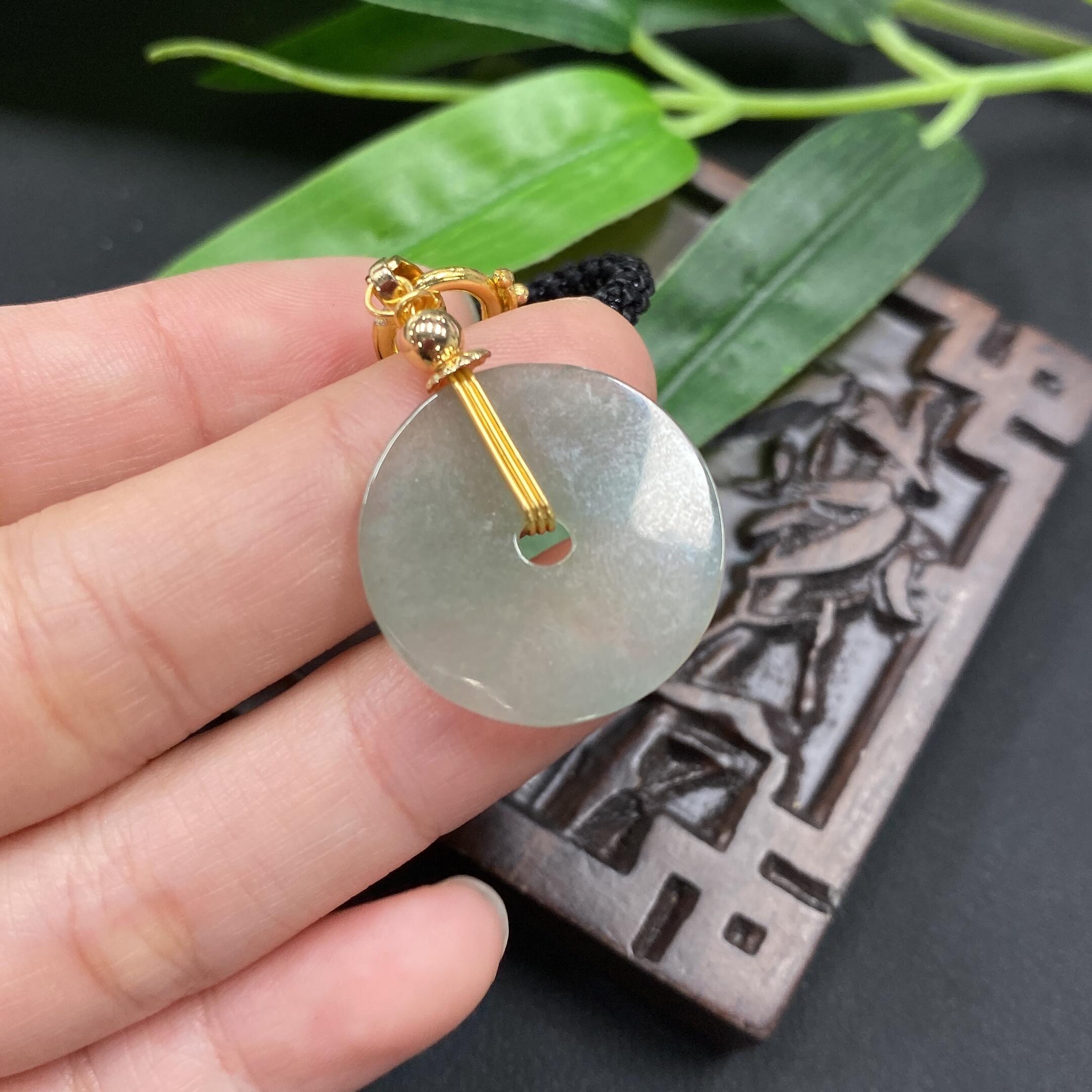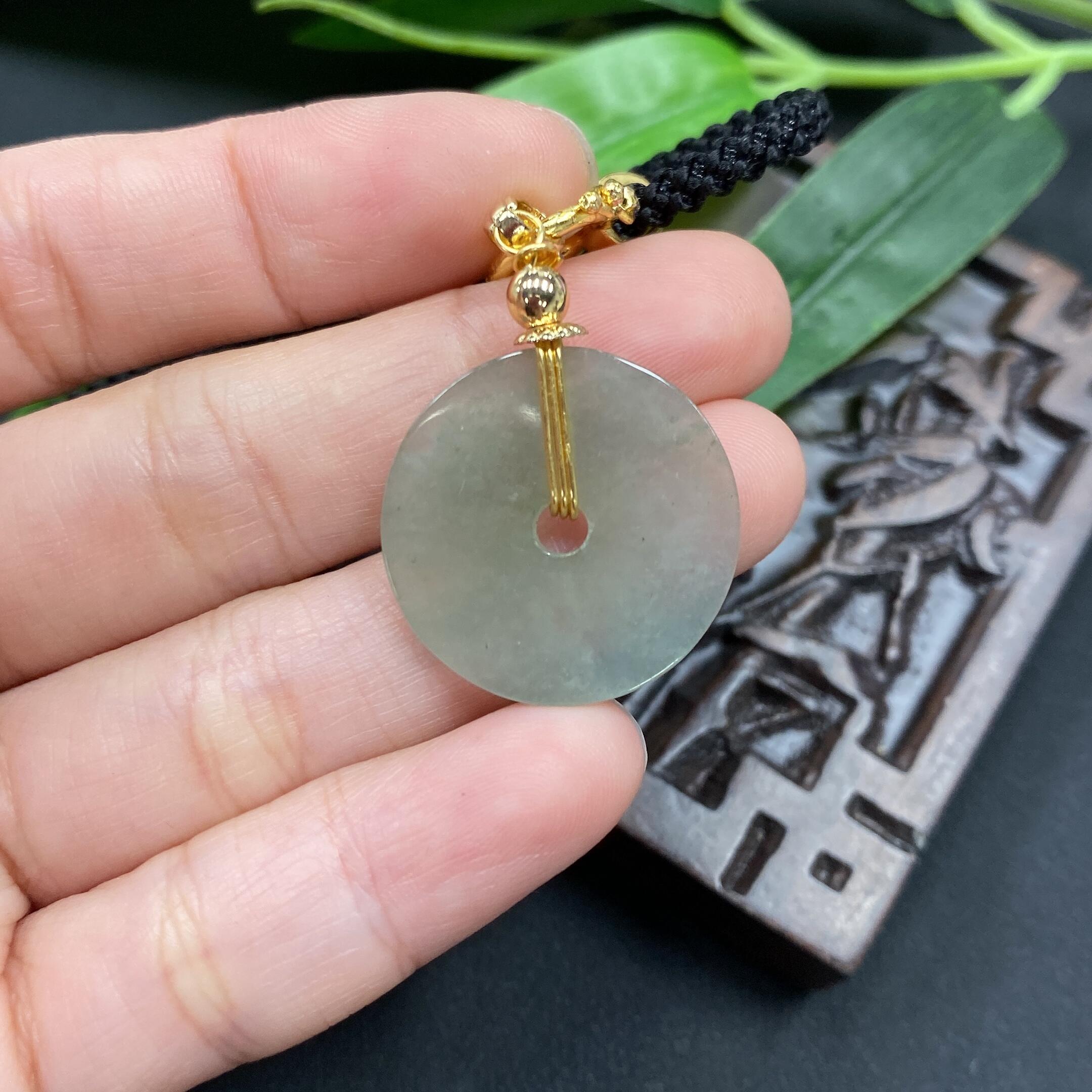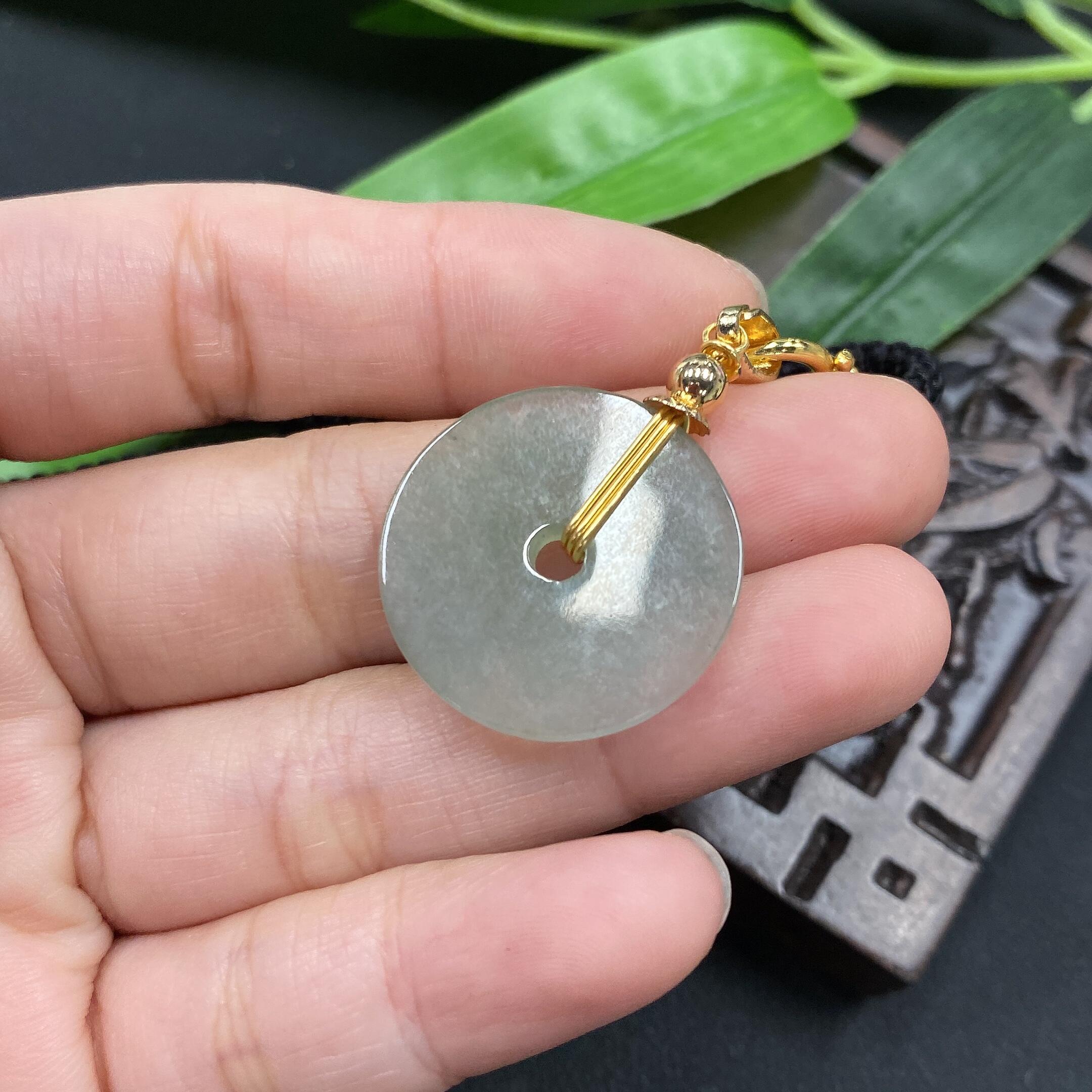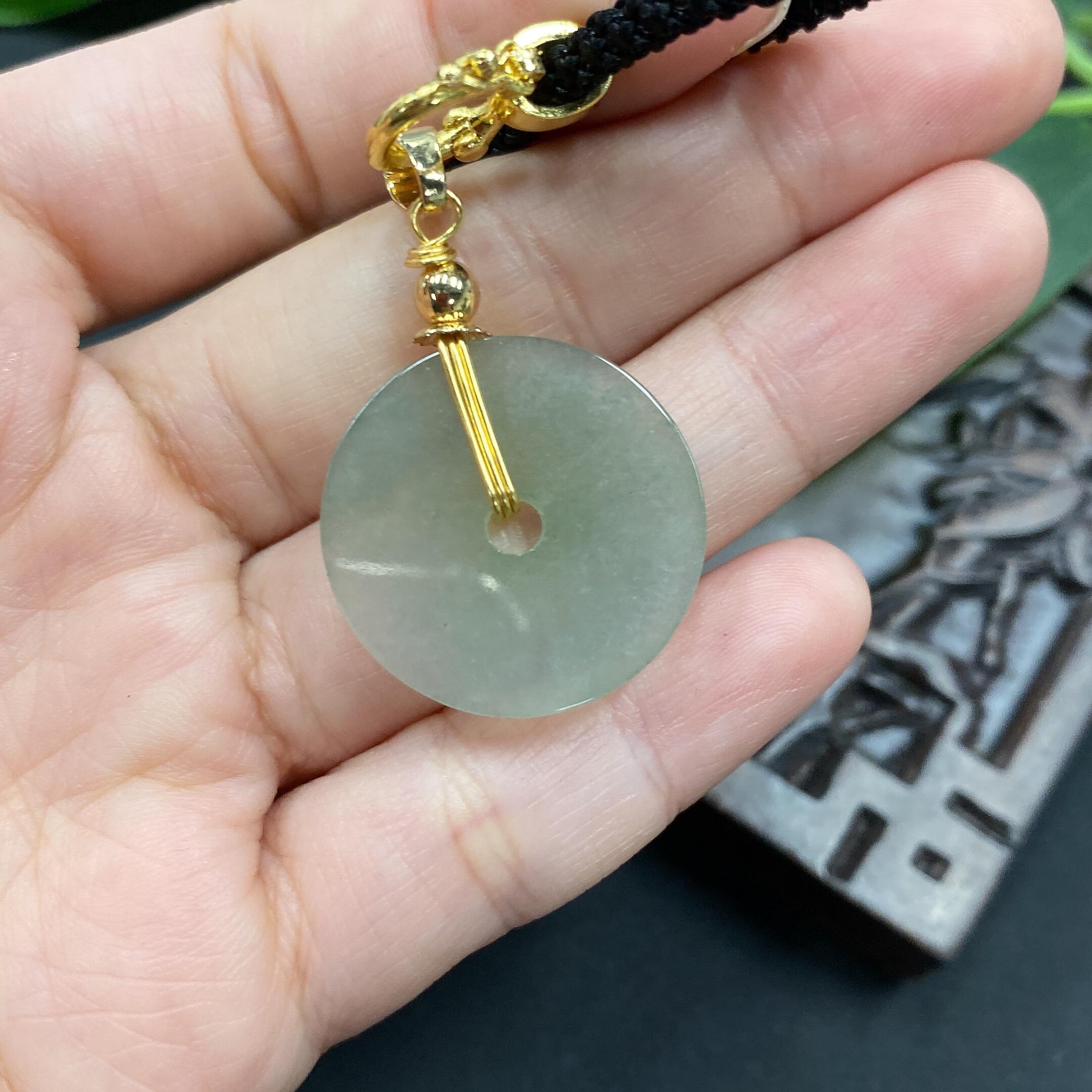 Jadeite button pendant with veins