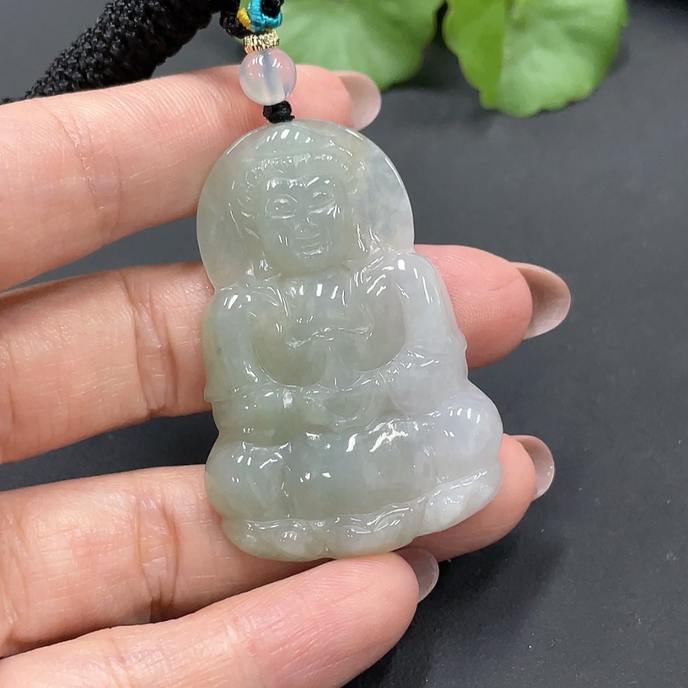 Jadeite Guanyin Pendant with Non-A Grade Beads, Total Weight 17.588g