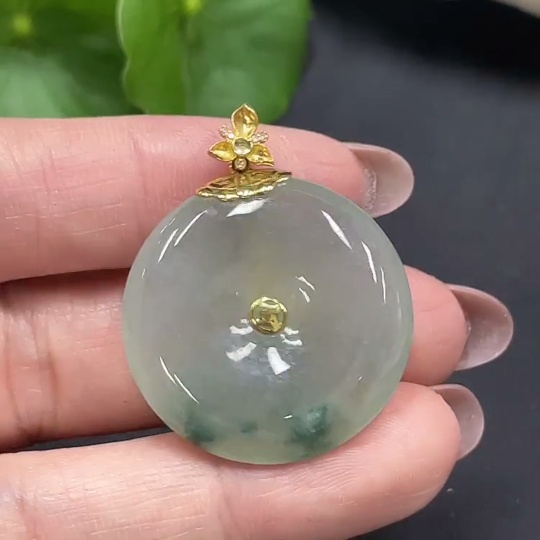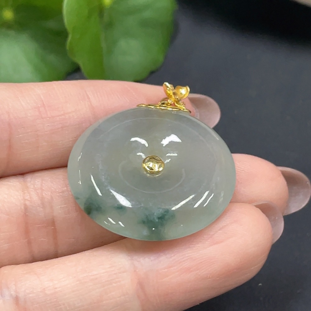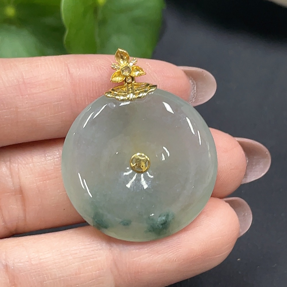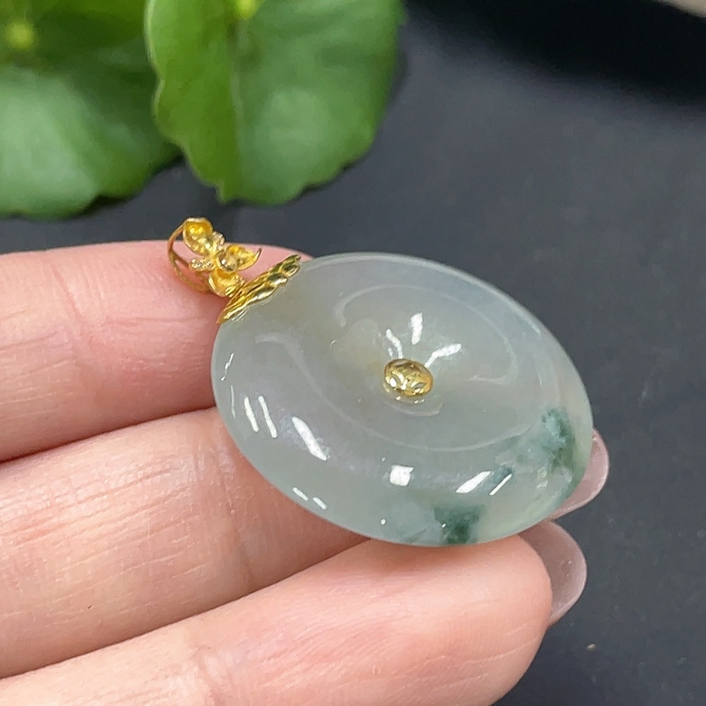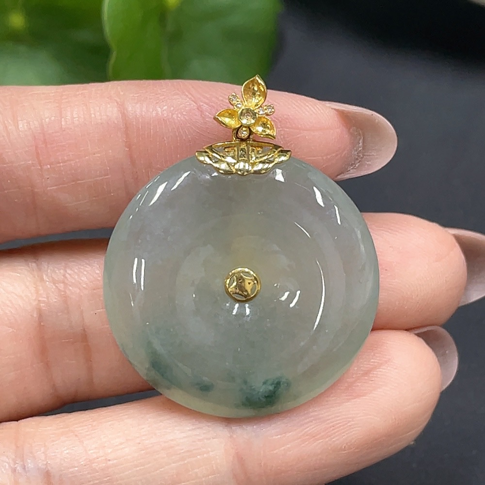 Jadeite Peace Pendant with 18K Gold Setting, Total Weight Approx. 10.63g