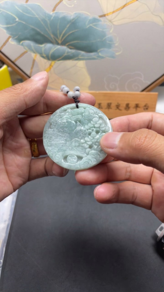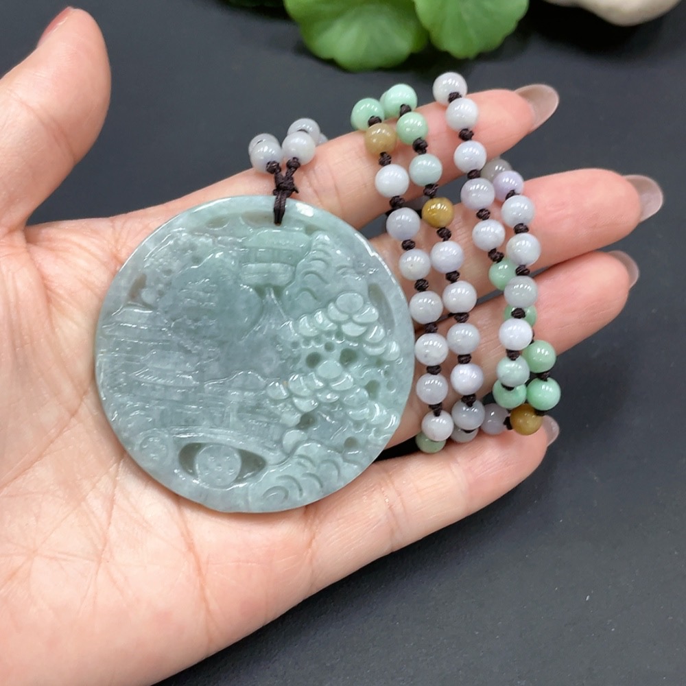 Jadeite Landscape Pendant Containing Color Polishing Powder/Other Mineral Components Total Weight 55.404g