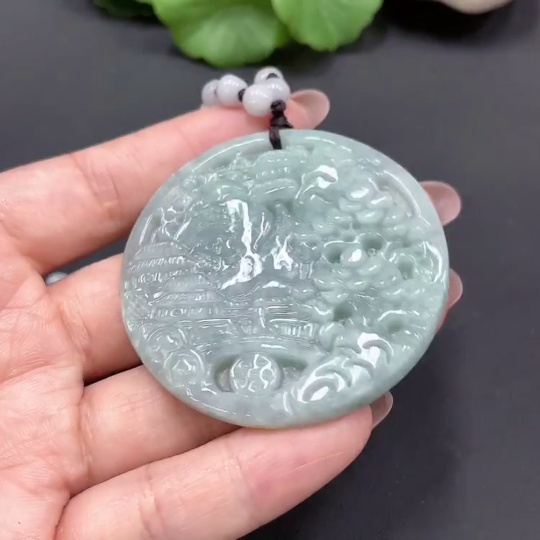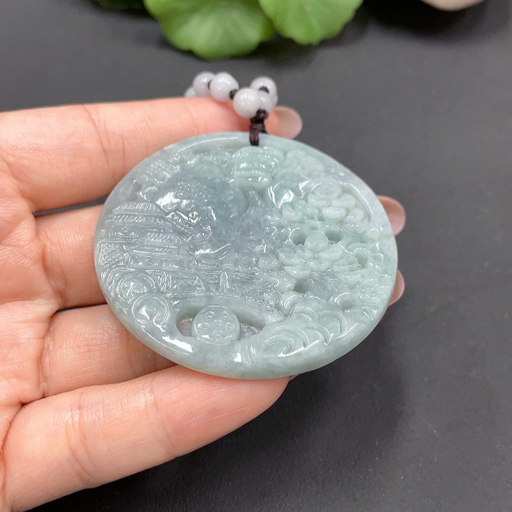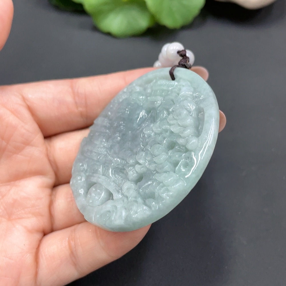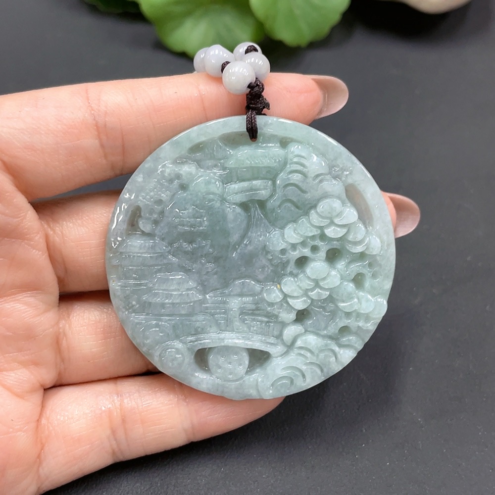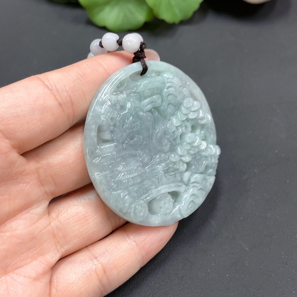 Jadeite Landscape Pendant Containing Color Polishing Powder/Other Mineral Components Total Weight 55.404g