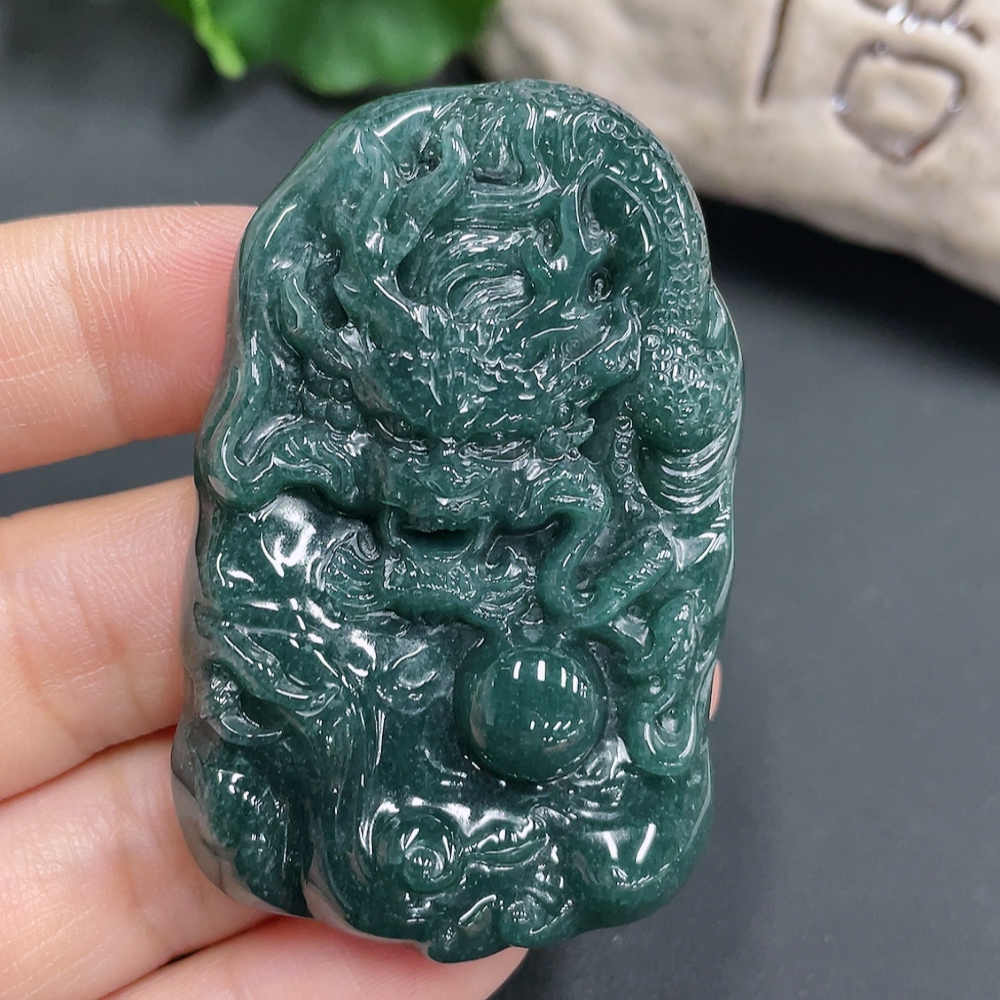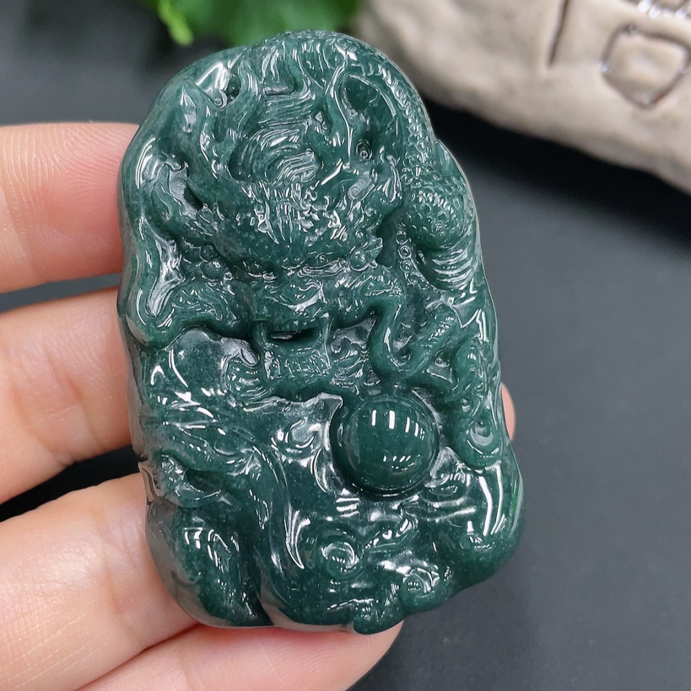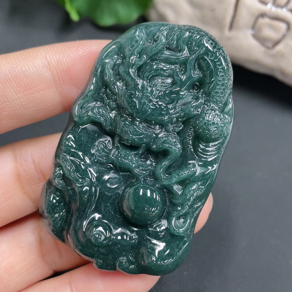 Jadeite Pendant Dragon Plaque Total Weight 31.666g