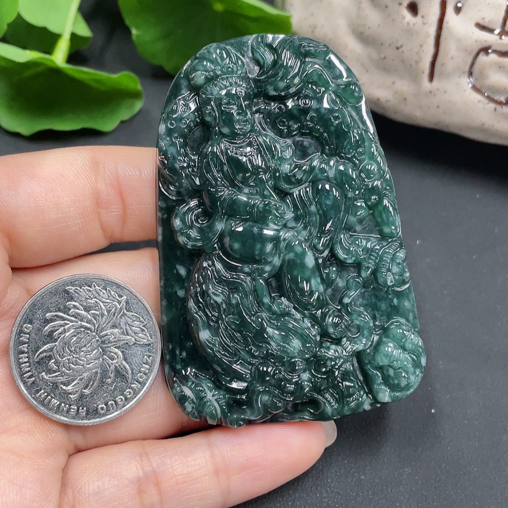 Jadeite Pendant Guanyin, Total Weight 63.206g