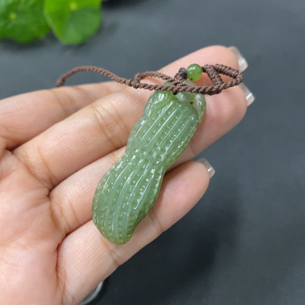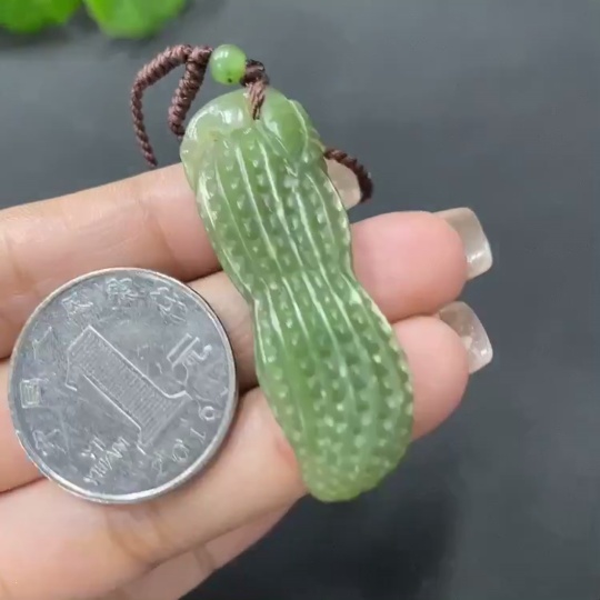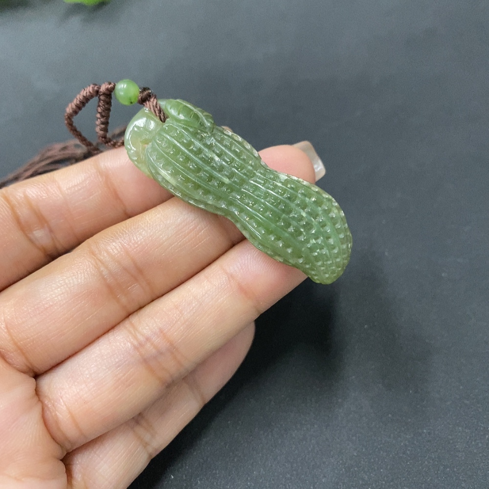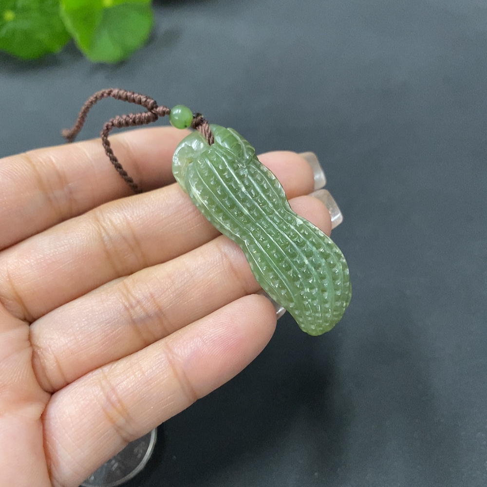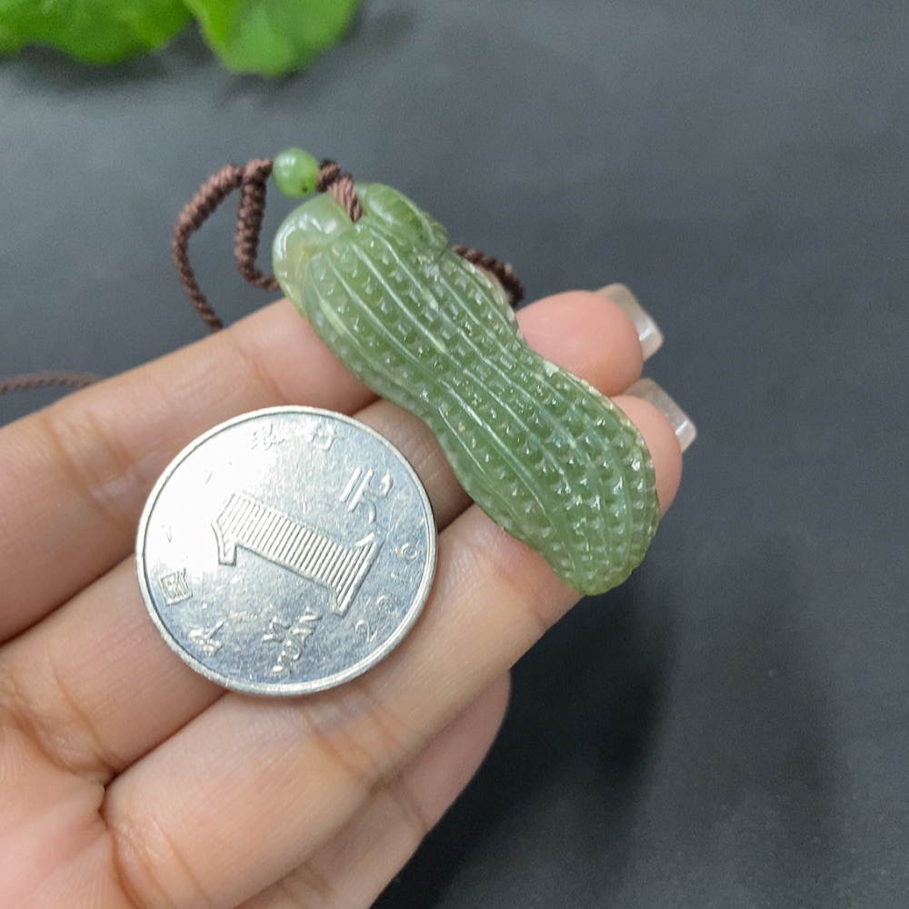 Hetian Jade Pendant Peanut Total Weight Approx. 9.4g (Including Cord)