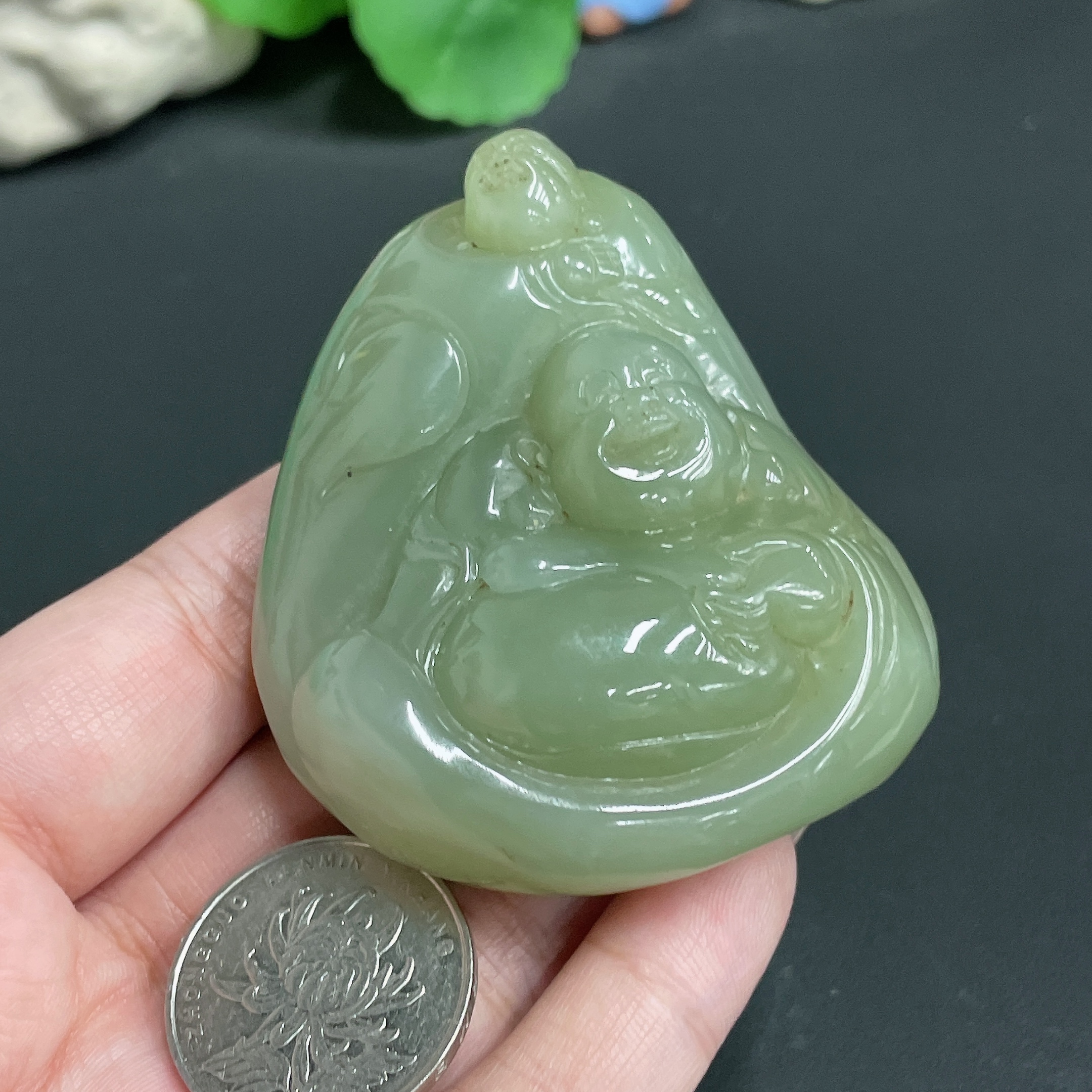 Hetian Jade Pendant Prosperity in Both Wealth and Personal Life Total Weight Approx.134.96g