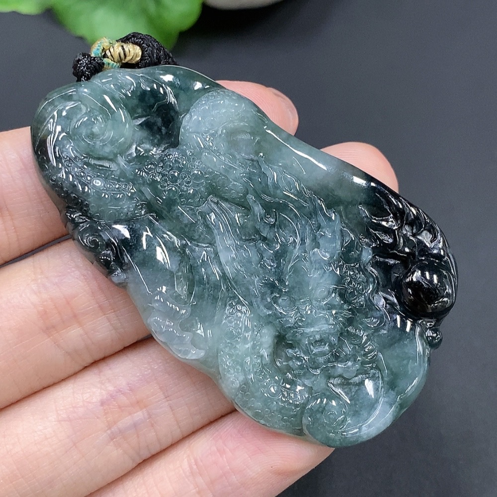 Jadeite Dragon Pendant with Other Mineral Components, Total Weight 29.406g