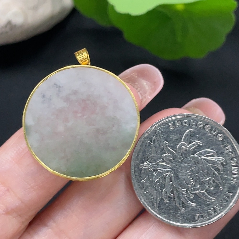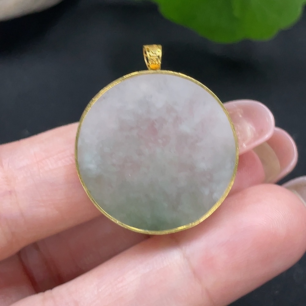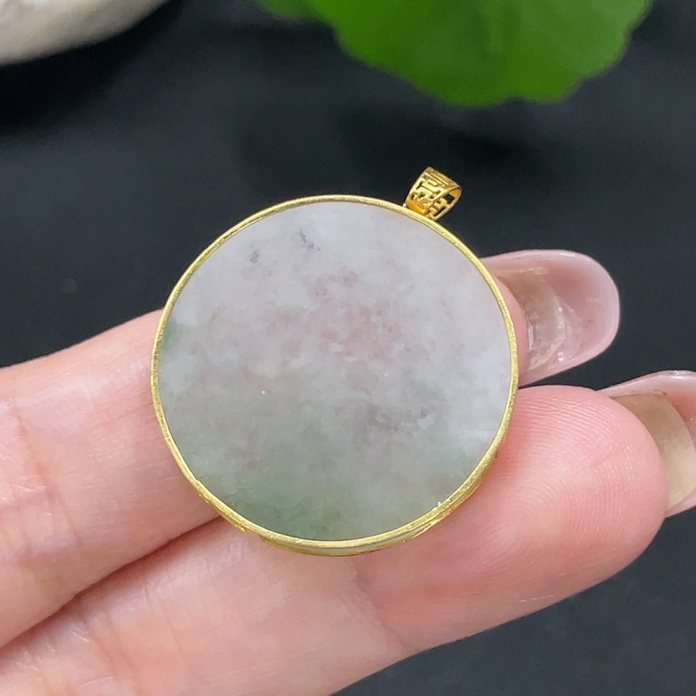 Jadeite Plain Pendant Necklace 18K Gold Total Weight Approx.5.6g