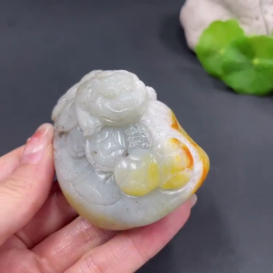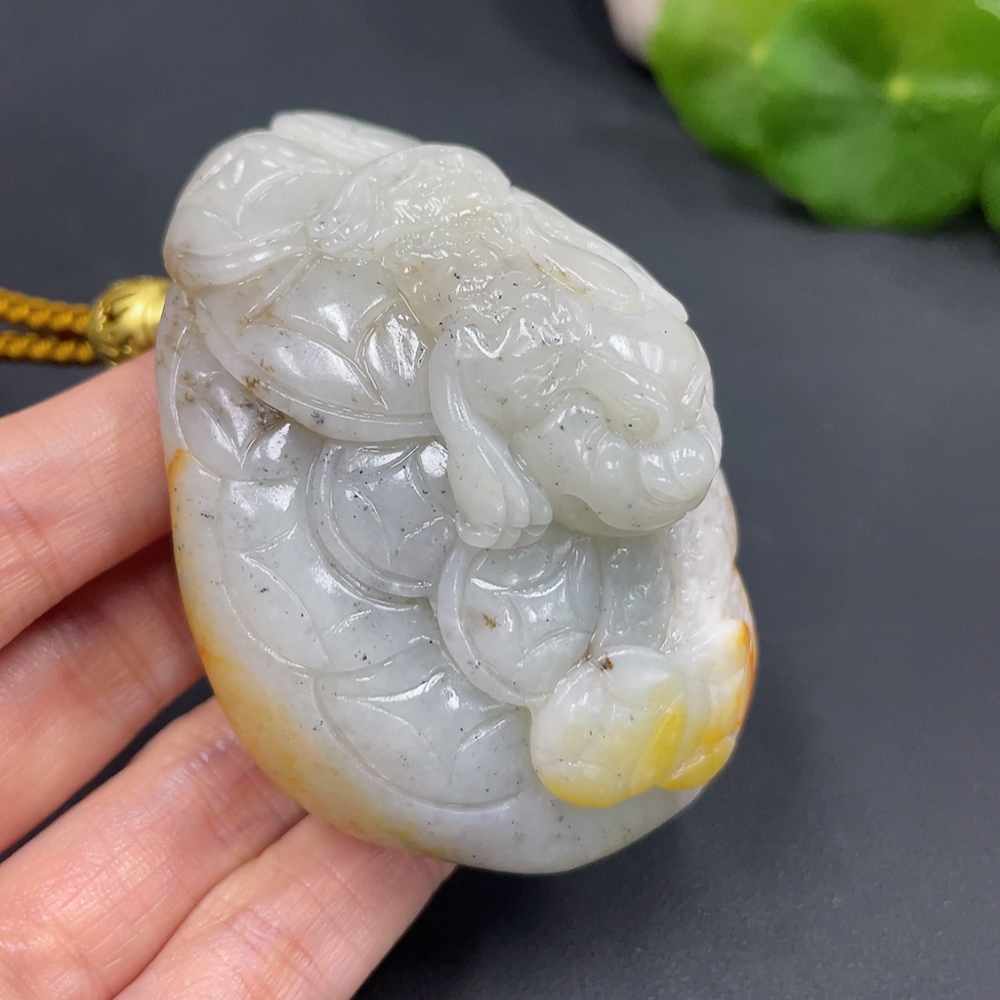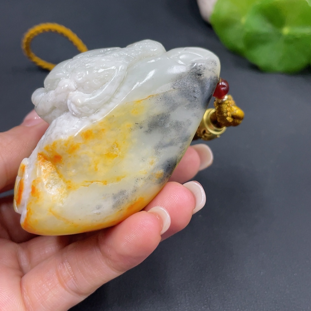 Hetian Jade Handheld Carving - Three-Legged Golden Toad, Undetermined Skin Color Origin, Contains Other Mineral Components, Total Weight (Including Cord) Approximately 182.4g