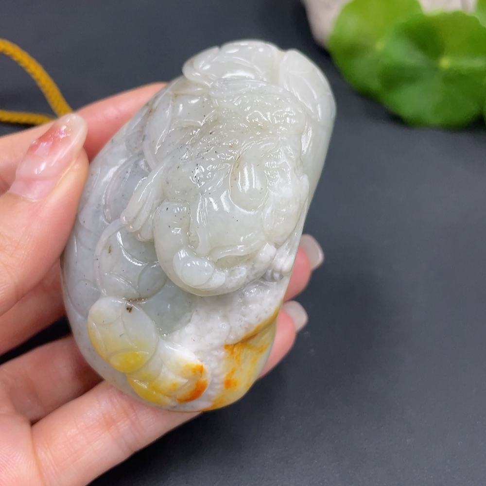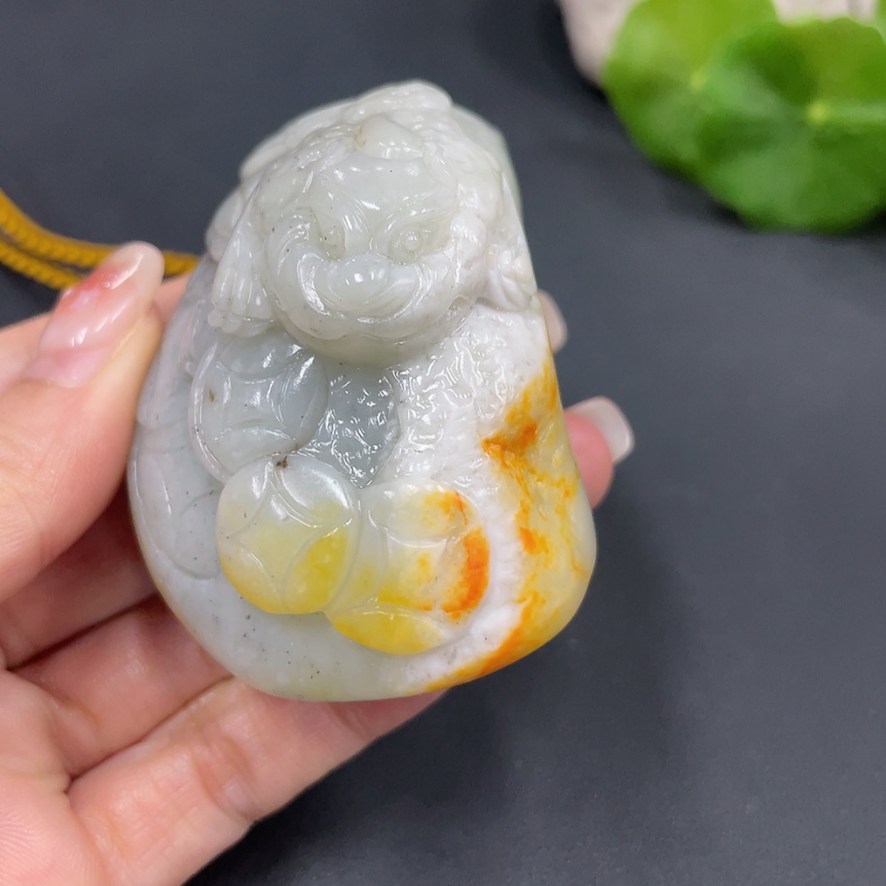Trezaar - Hetian Jade Handheld Carving - Three-Legged Golden Toad, Undetermined Skin Color Origin, Contains Other Mineral Components, Total Weight (Including Cord) Approximately 182.4g