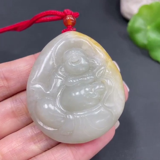 Hetian Jade Pendant - Buddha, Undetermined Skin Color Origin, Total Weight (Including Rope) Approx. 53g