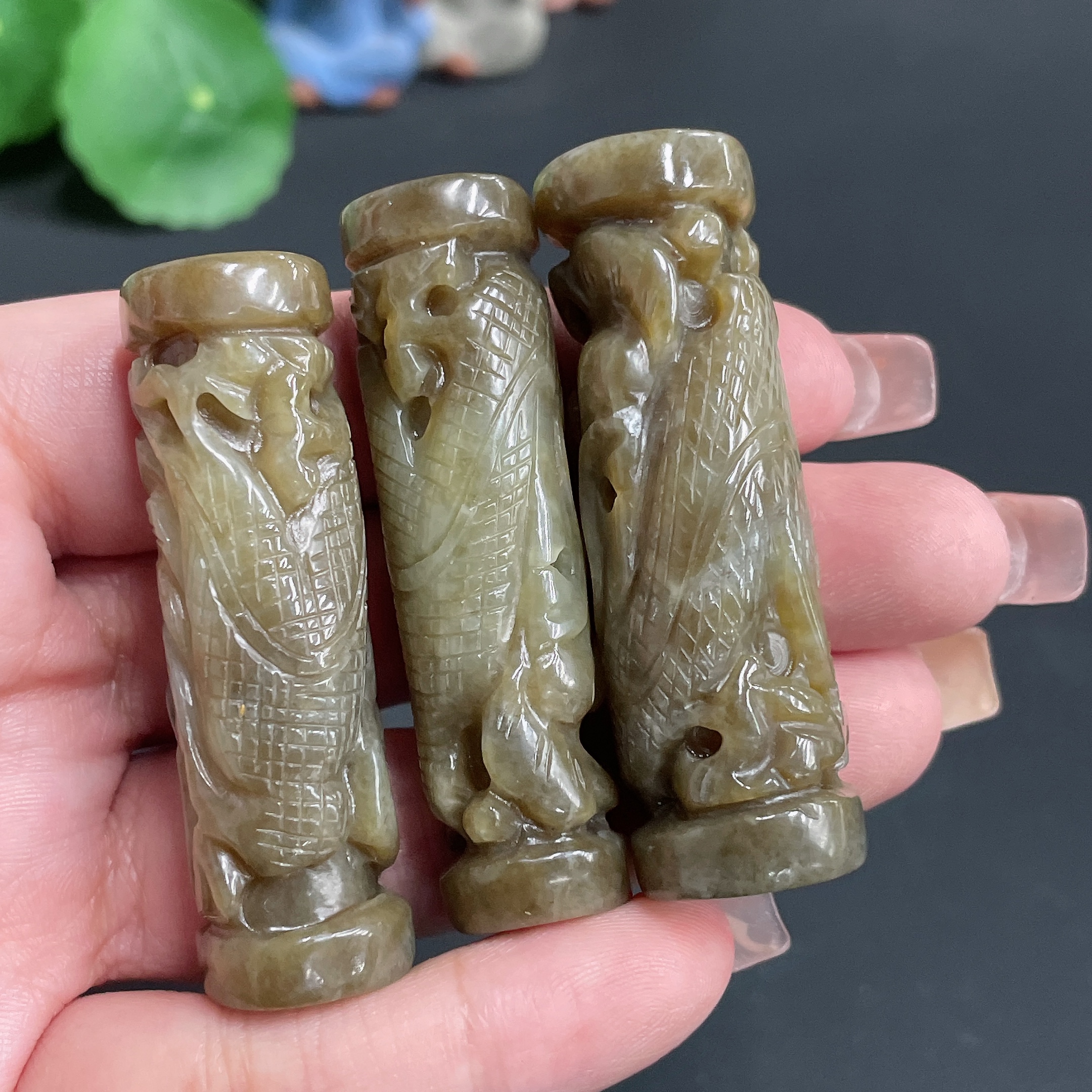 Hetian Jade Pendant Dragon Column Total Weight Approx. 88.6g
