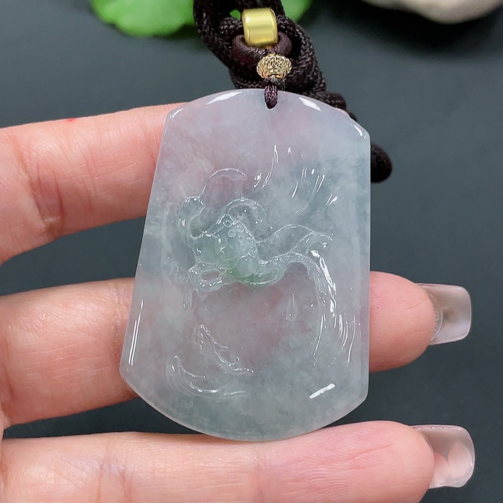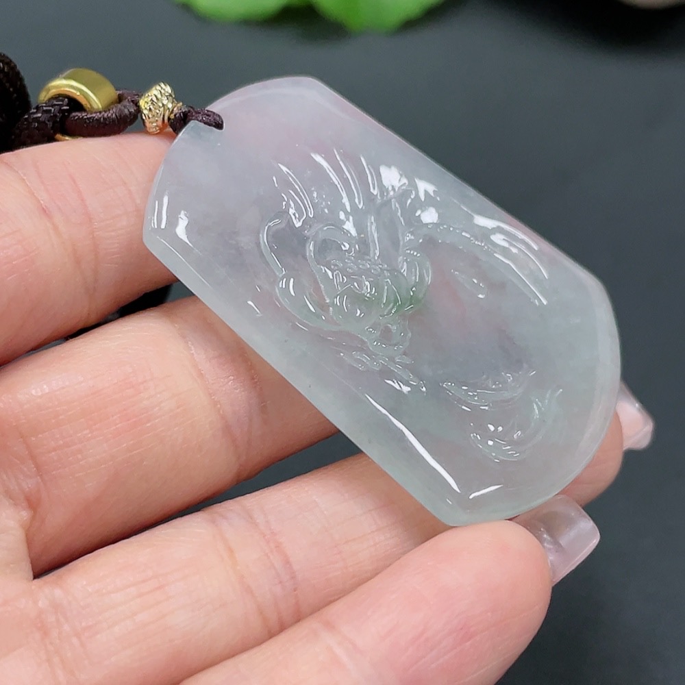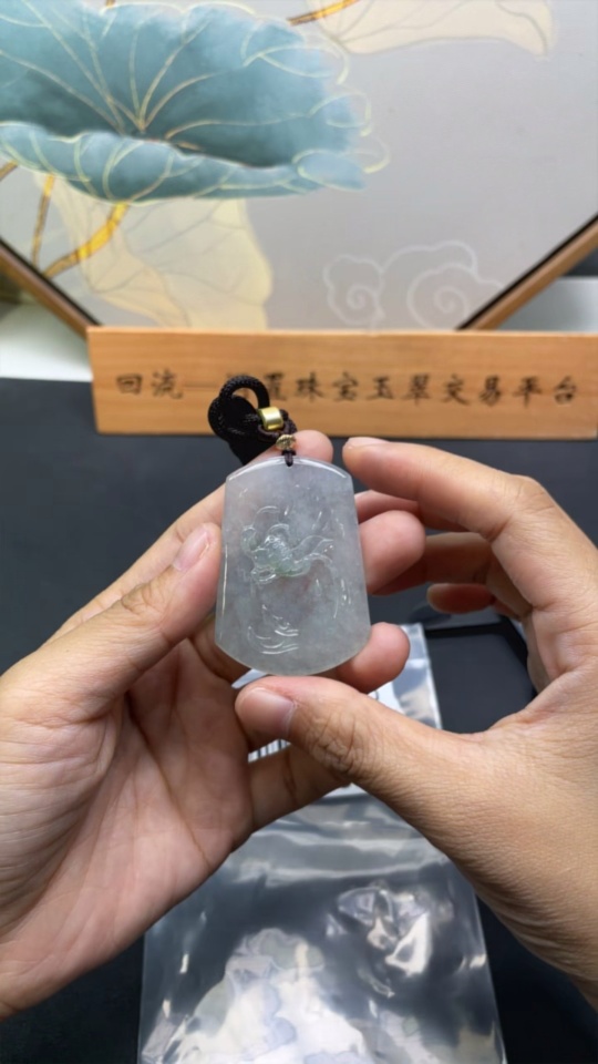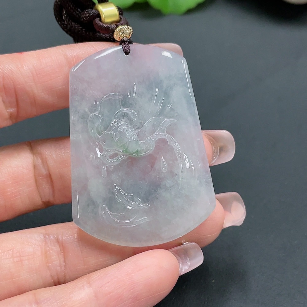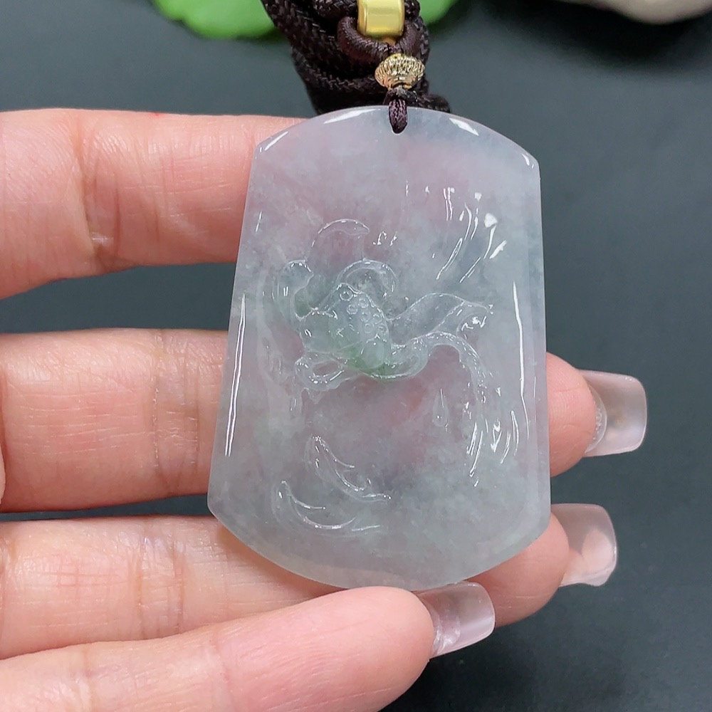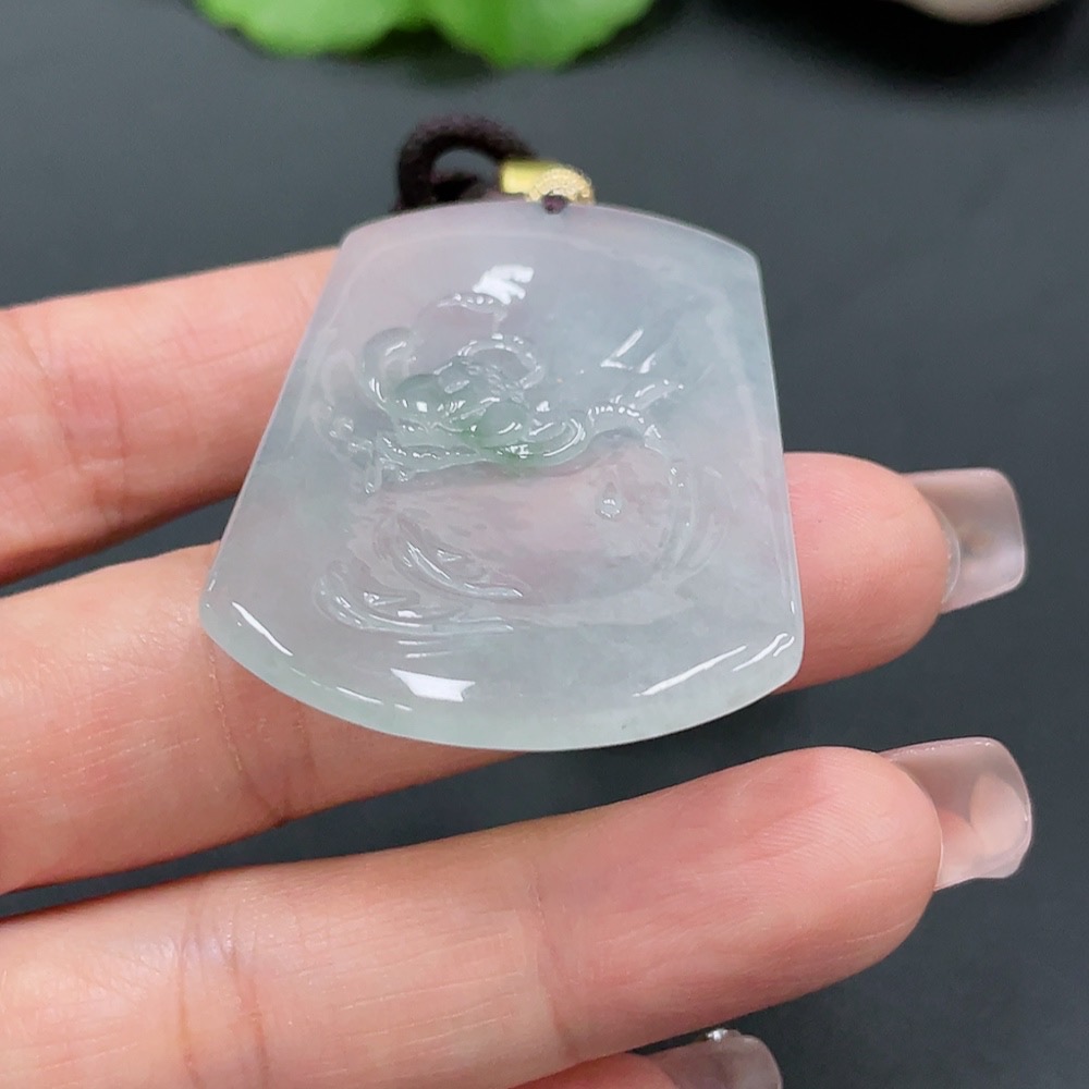 Jadeite Lotus Leaf Fish Pendant Total Weight 19.068g