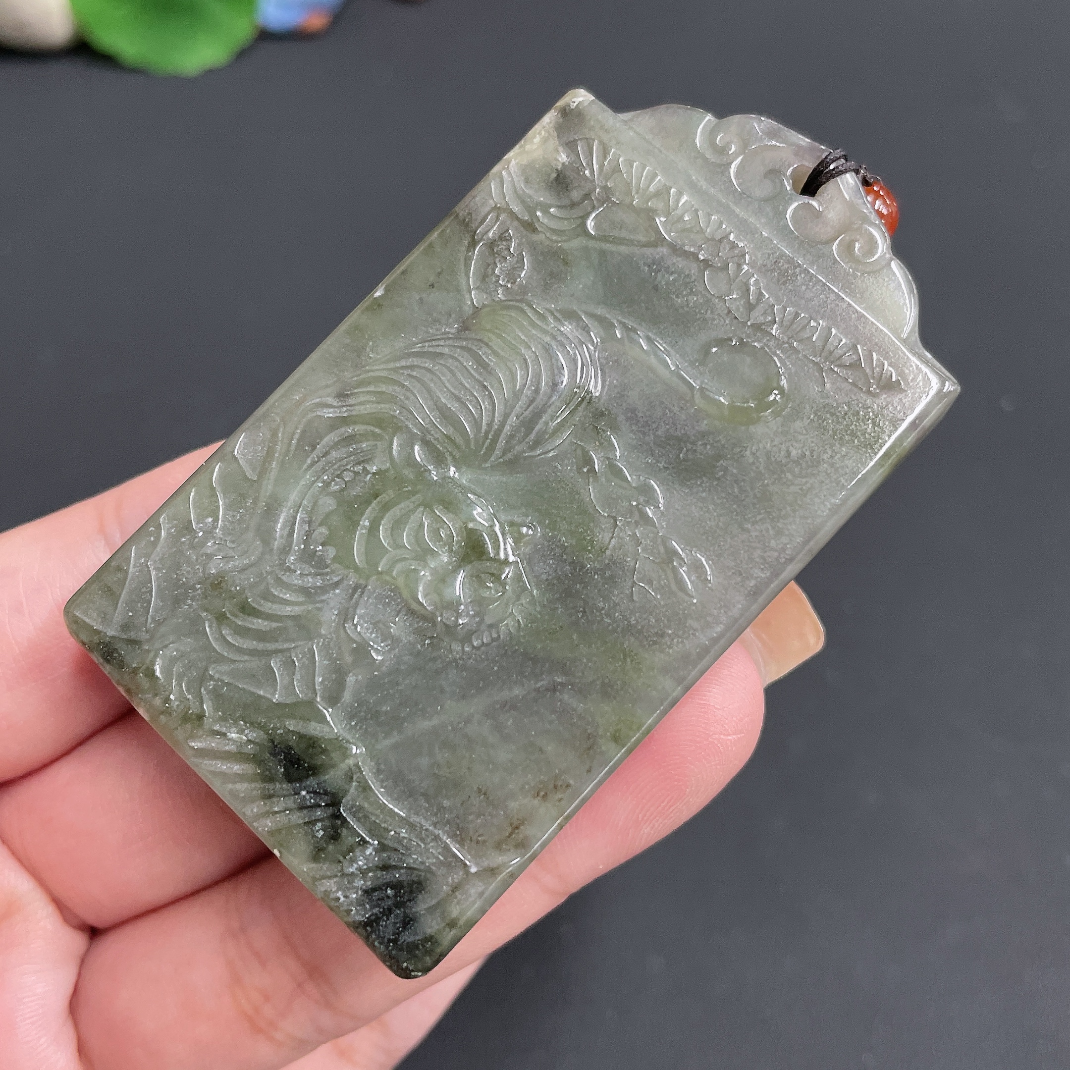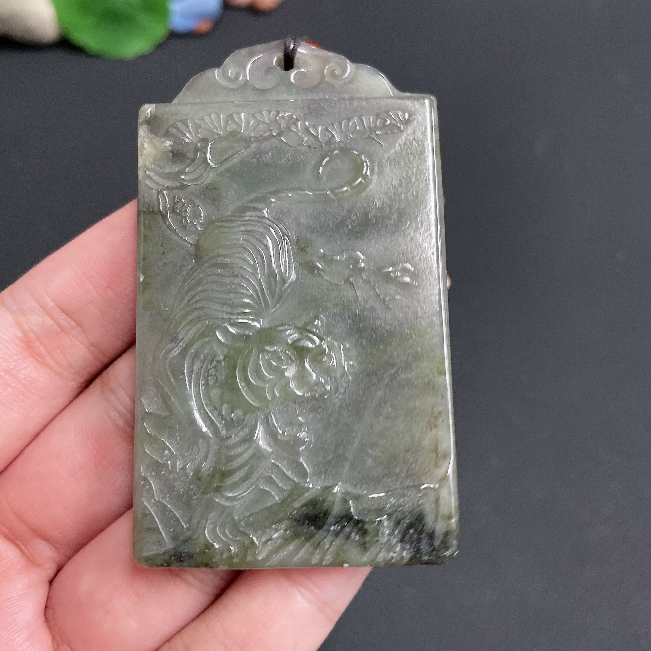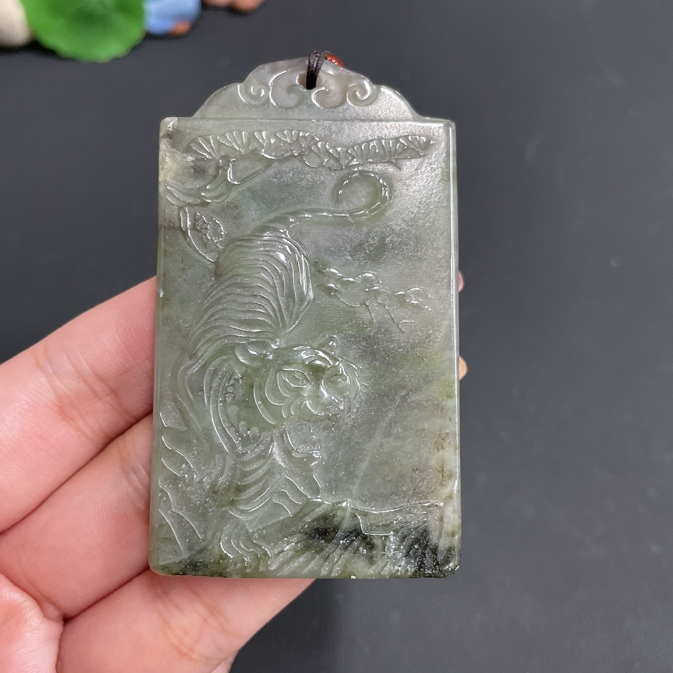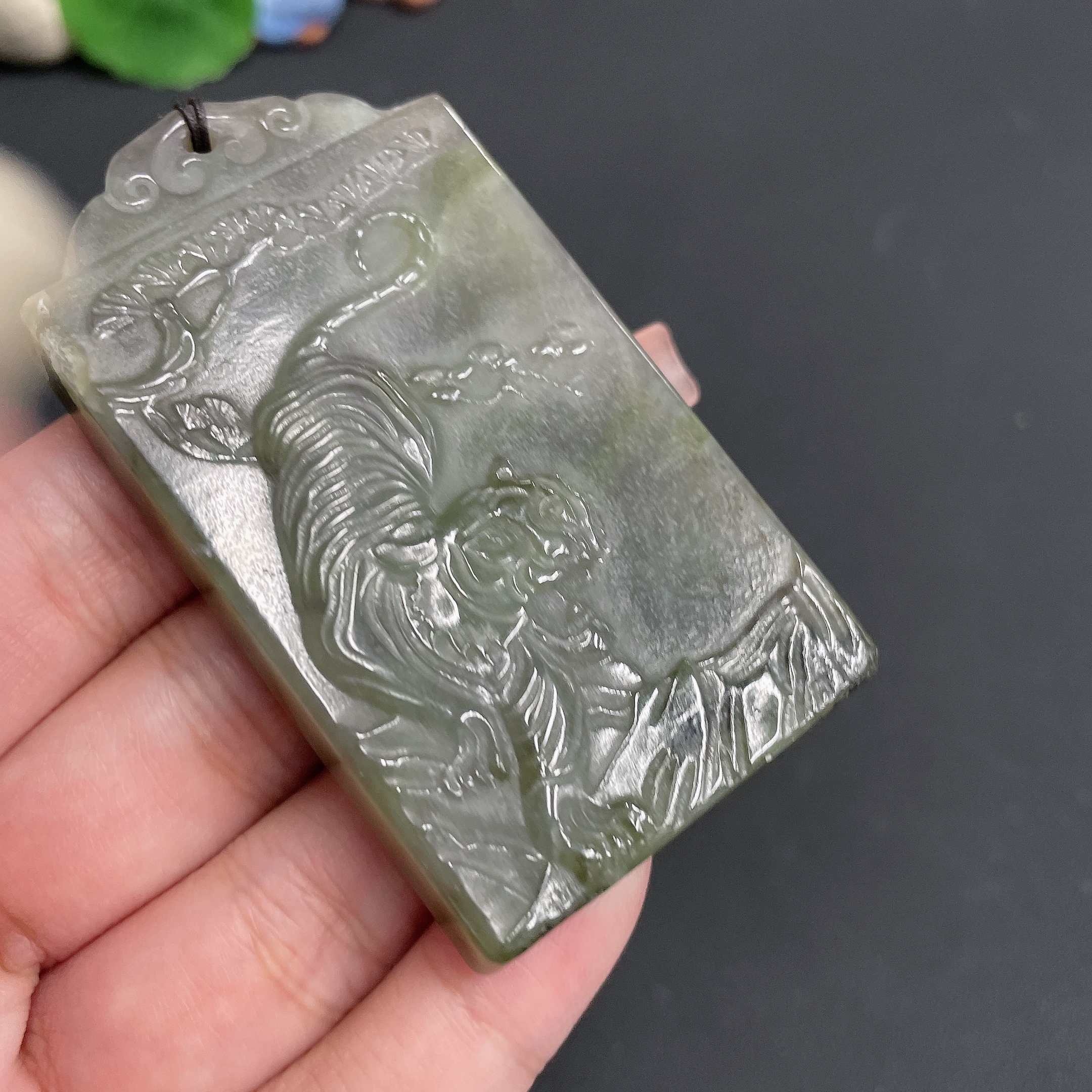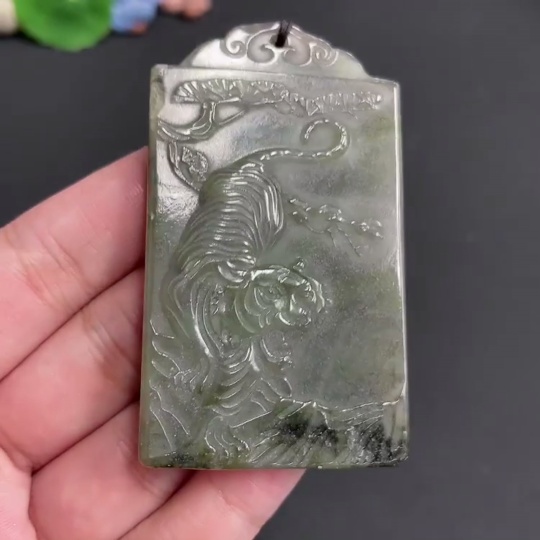 Hetian Jade Pendant Fierce Tiger with rope total weight 64.14g